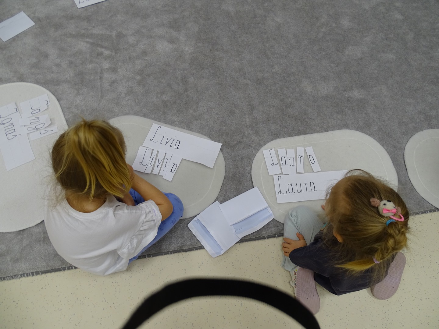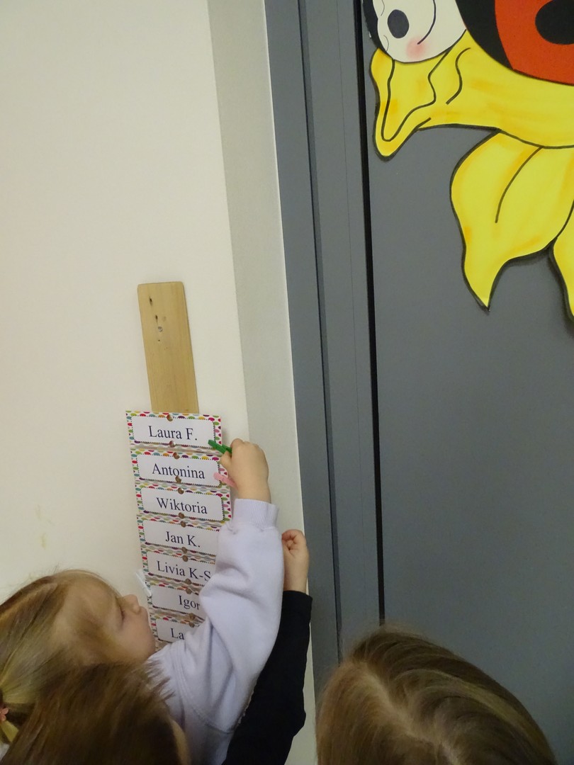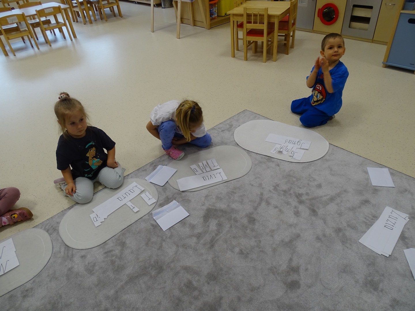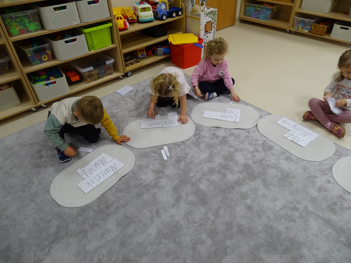 W naszej grupie realizujemy elementy metody nauki czytania Ireny Majchrzak. Metoda ta jest dostosowana do możliwości i potrzeb maluszków. Opiera się ona na naturalnej ciekawości dziecka oraz nauce poprzez zabawę i codzienne doświadczenia. W tym roku dzieci oswajają się z obrazem słowa - najpierw własnego imienia - co buduje ich poczucie sprawczości i radości z odkrywania liter.