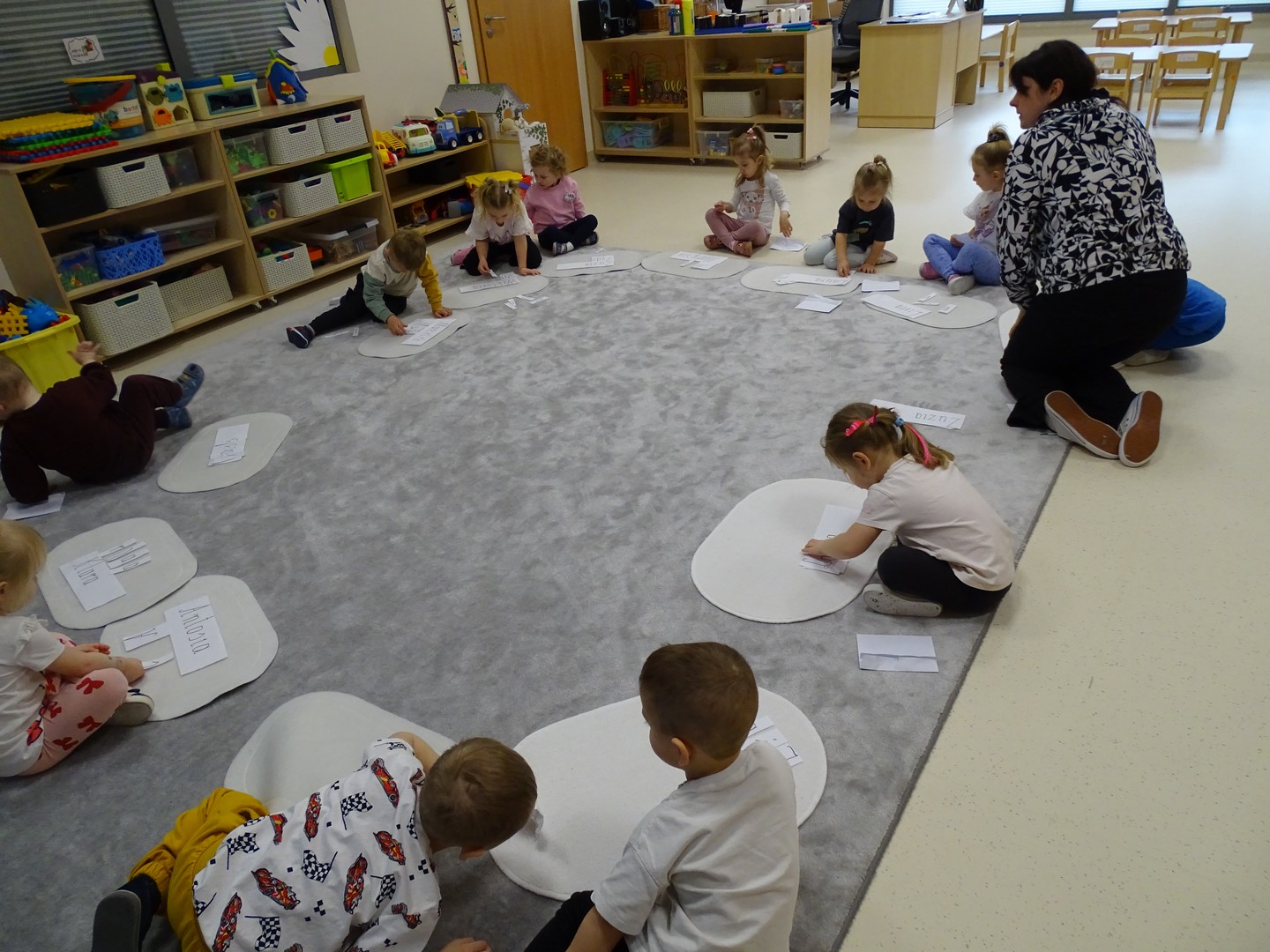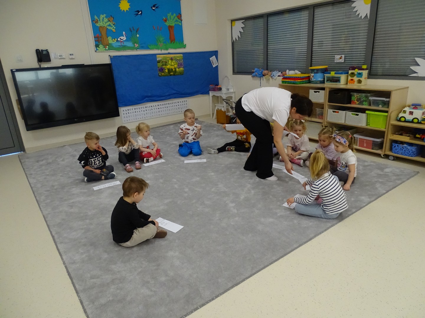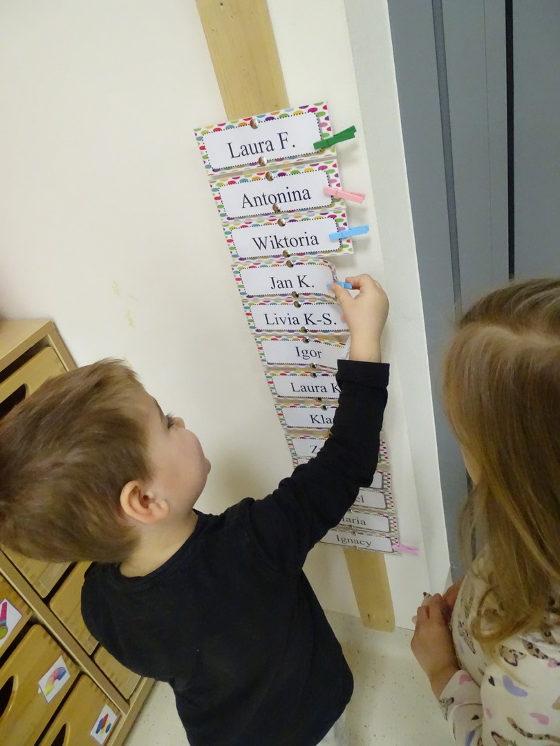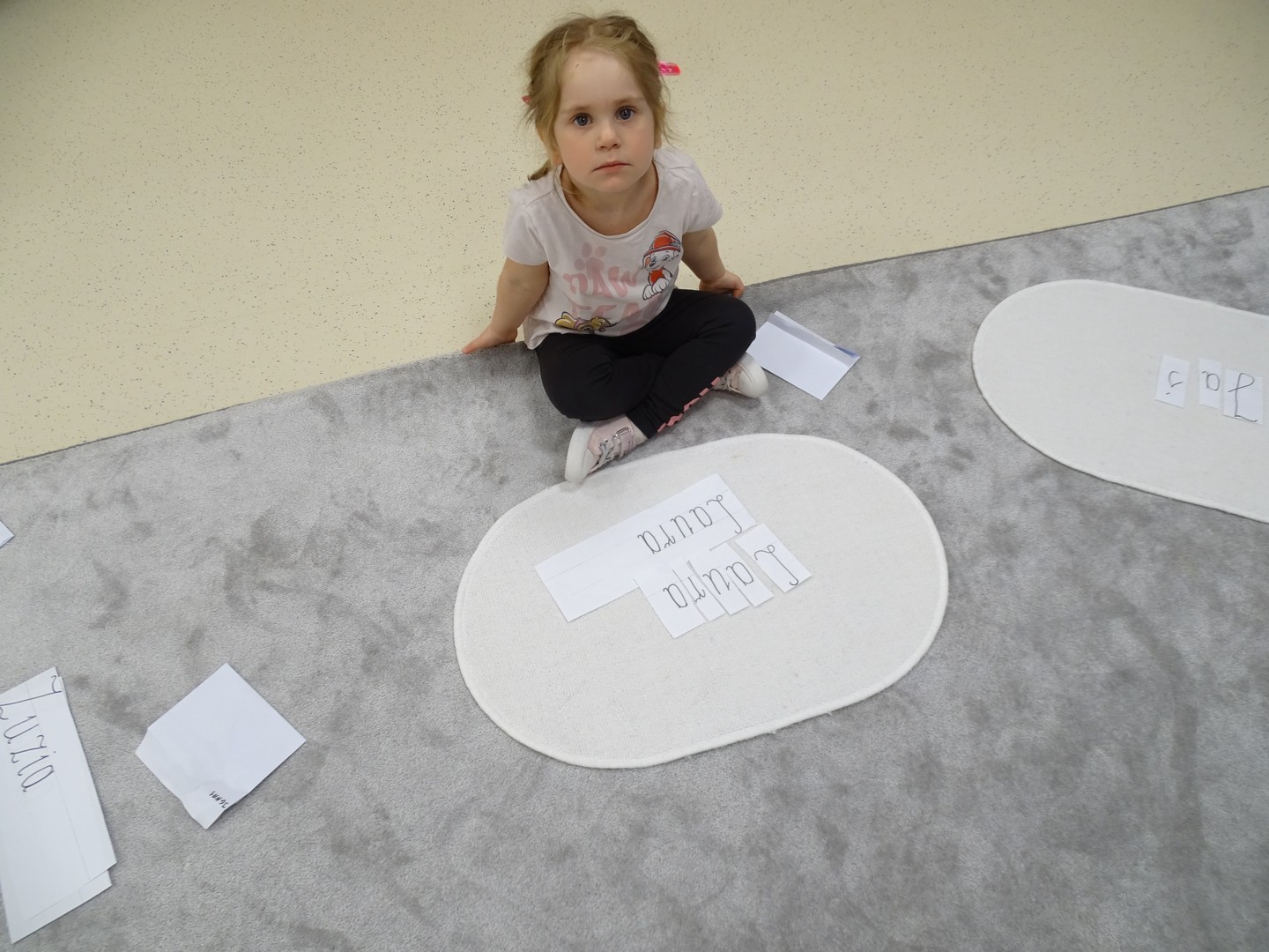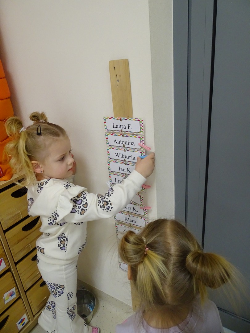 W naszej grupie realizujemy elementy metody nauki czytania Ireny Majchrzak. Metoda ta jest dostosowana do możliwości i potrzeb maluszków. Opiera się ona na naturalnej ciekawości dziecka oraz nauce poprzez zabawę i codzienne doświadczenia. W tym roku dzieci oswajają się z obrazem słowa - najpierw własnego imienia - co buduje ich poczucie sprawczości i radości z odkrywania liter.