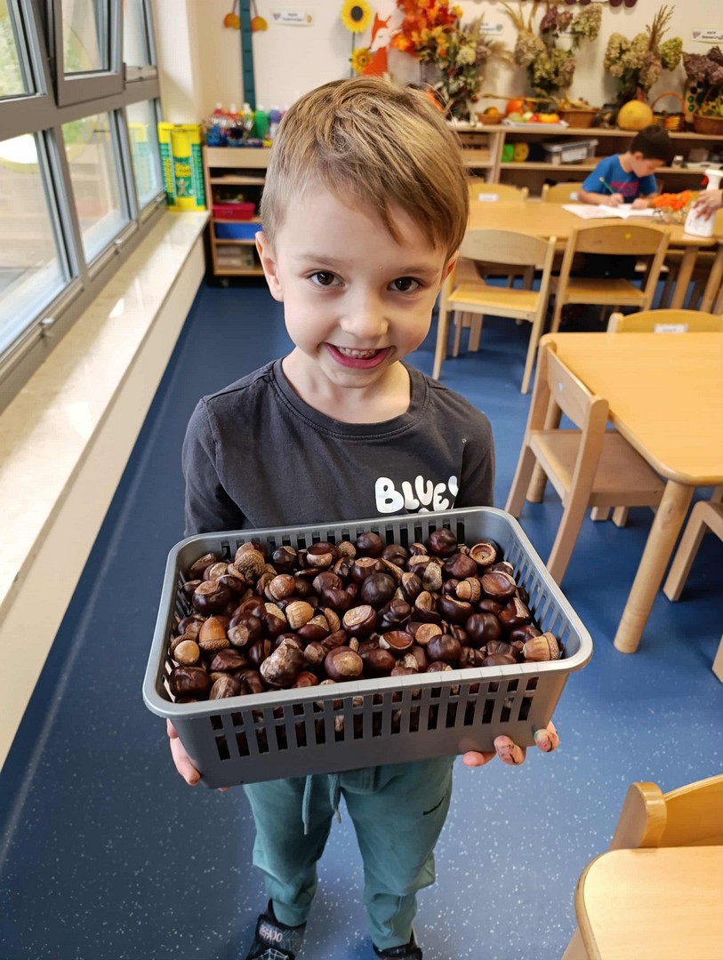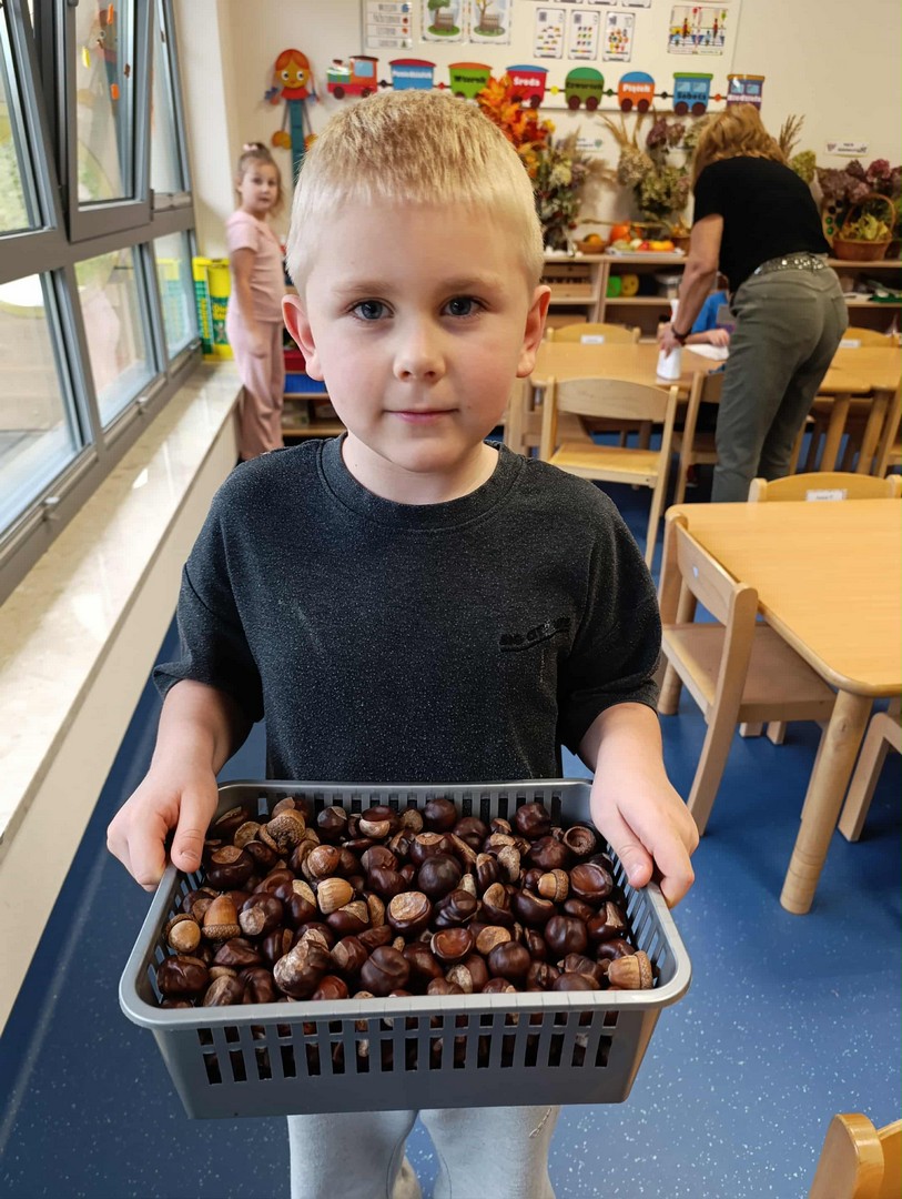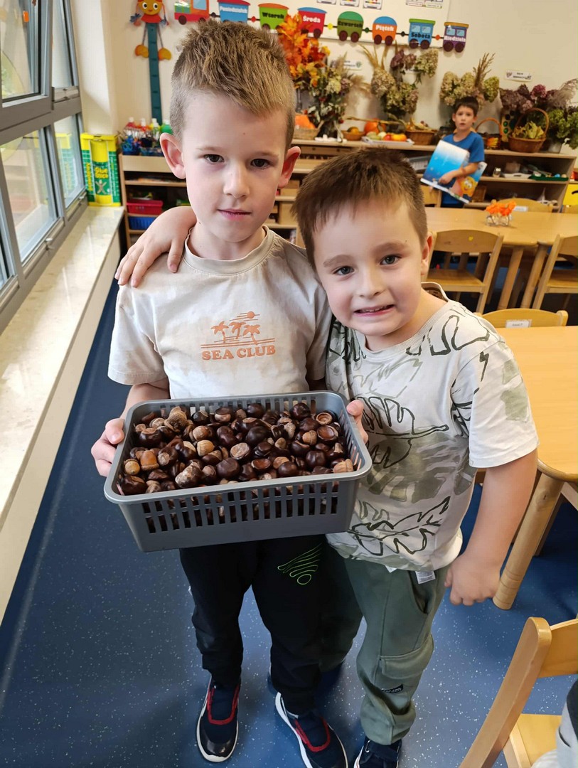 Publiczne Przedszkole Samorządowe w Kleszczowie po raz kolejny uczestniczyło w akcji charytatywnej pt. Kasztanobranie dla Krzysia. Zaangażowały się w nią nie tylko dzieci, ale i rodzice. Bardzo dziękujemy za wsparcie akcji! Kasztany zostały przekazane rodzinie Krzysia Smarzycha i mamy nadzieję, że choć trochę pomożemy chłopcu w trudnej walce z chorobą i rehabilitacji. Pieniądze ze sprzedaży kasztanów firmie farmaceutycznej zasilą konto fundacji Ariadna. Ta z kolei przekaże je na leczenie i rehabilitację Krzysia.