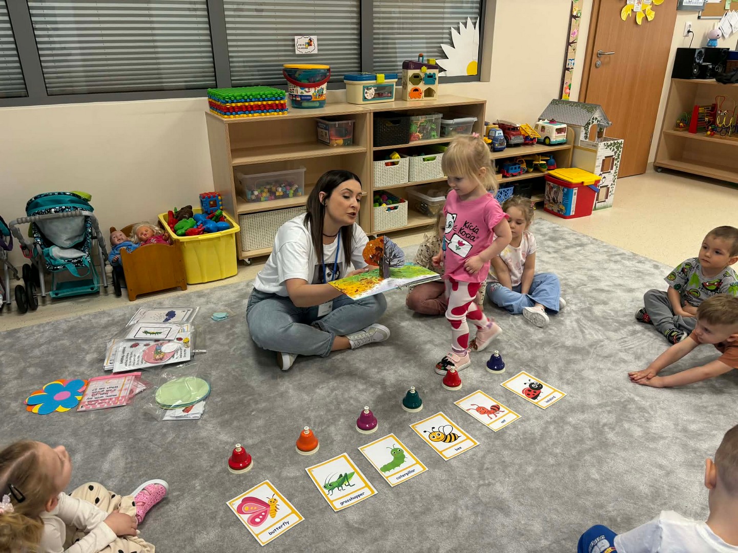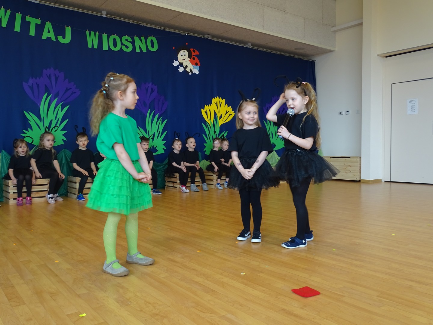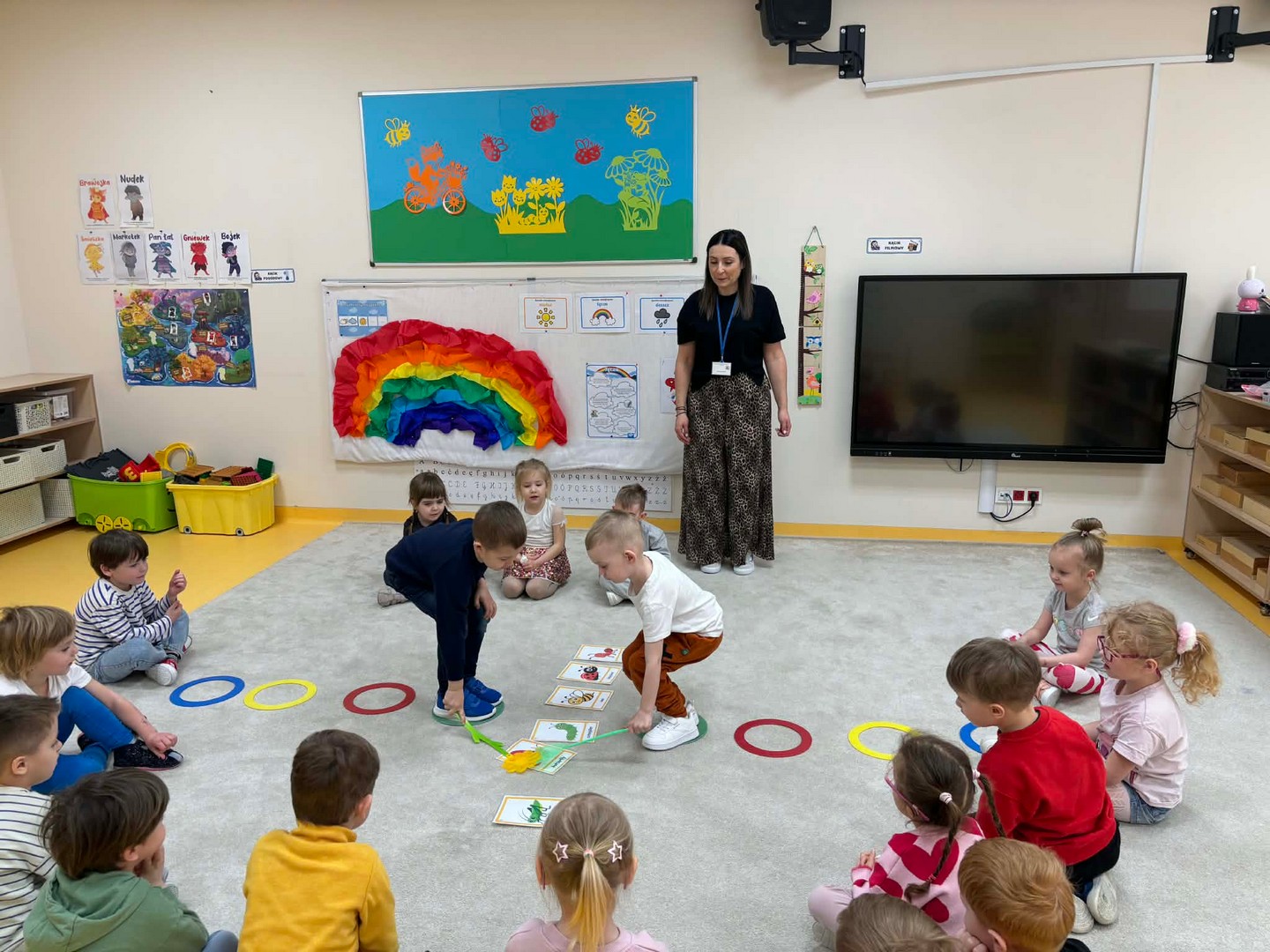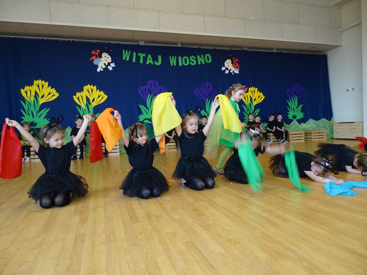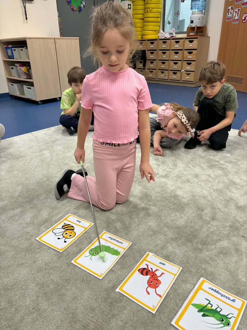 Projekt edukacyjny "Hello spring-wiosna w przedszkolu" został zrealizowany w czterech grupach przedszkolnych. Głównym celem projektu było wzbogacenie słownictwa związanego z wiosną, rozwój słuchania, mówienia oraz budowanie pozytywnej relacji z językiem. Za pomocą kolorowych kart obrazkowych, grach językowych dzieci poznały wiosenne słownictwo oraz wzbogaciły swoją wiedzę na temat przyrody. W ramach projektu przedszkolaki założyły swój ogródek warzywny, utrwaliły kolory poprzez wskazywanie barw na wiosennej łące, poznały figury geometryczne oraz wiosenne słownictwo, stworzyły plakat, wzięły udział w zabawach ruchowych, muzycznych, plastycznych. Wydarzeniem finałowym projektu było krótkie przedstawienie w języku angielskim pt: "Can you be my friend" ? przygotowane przez grupę dzieci pięcioletnich, gdzie dzieci wcieliły się w role owadów.