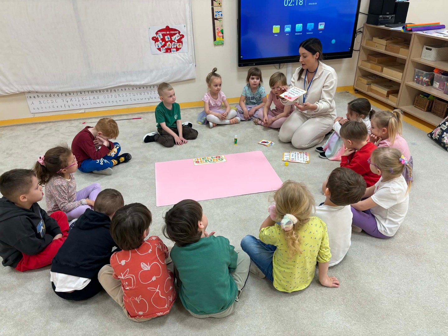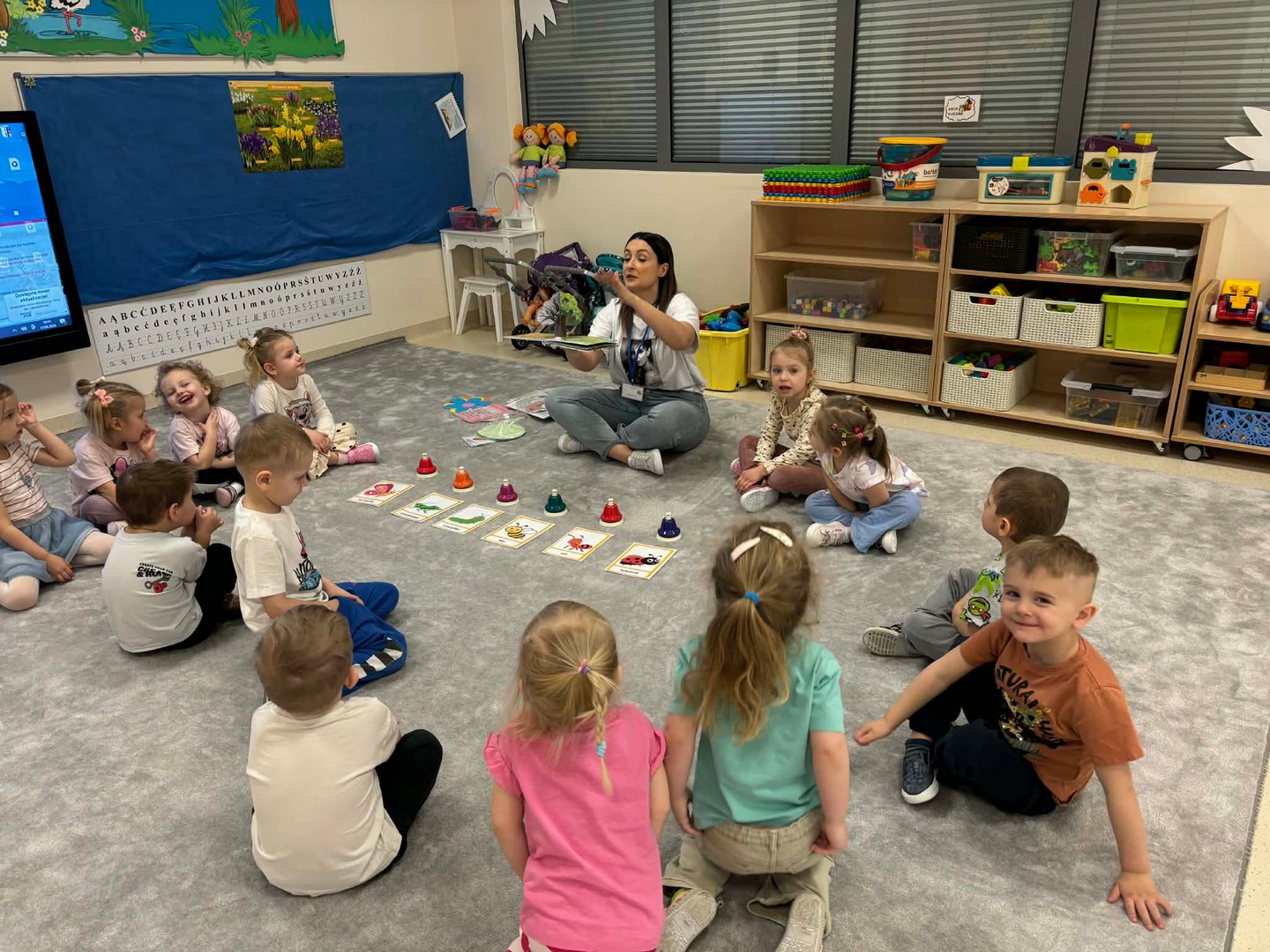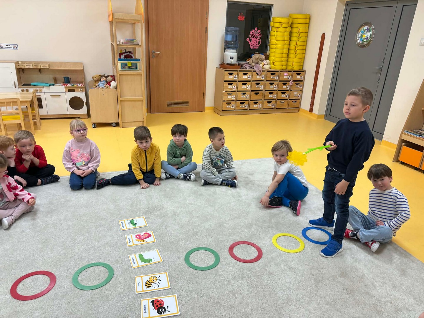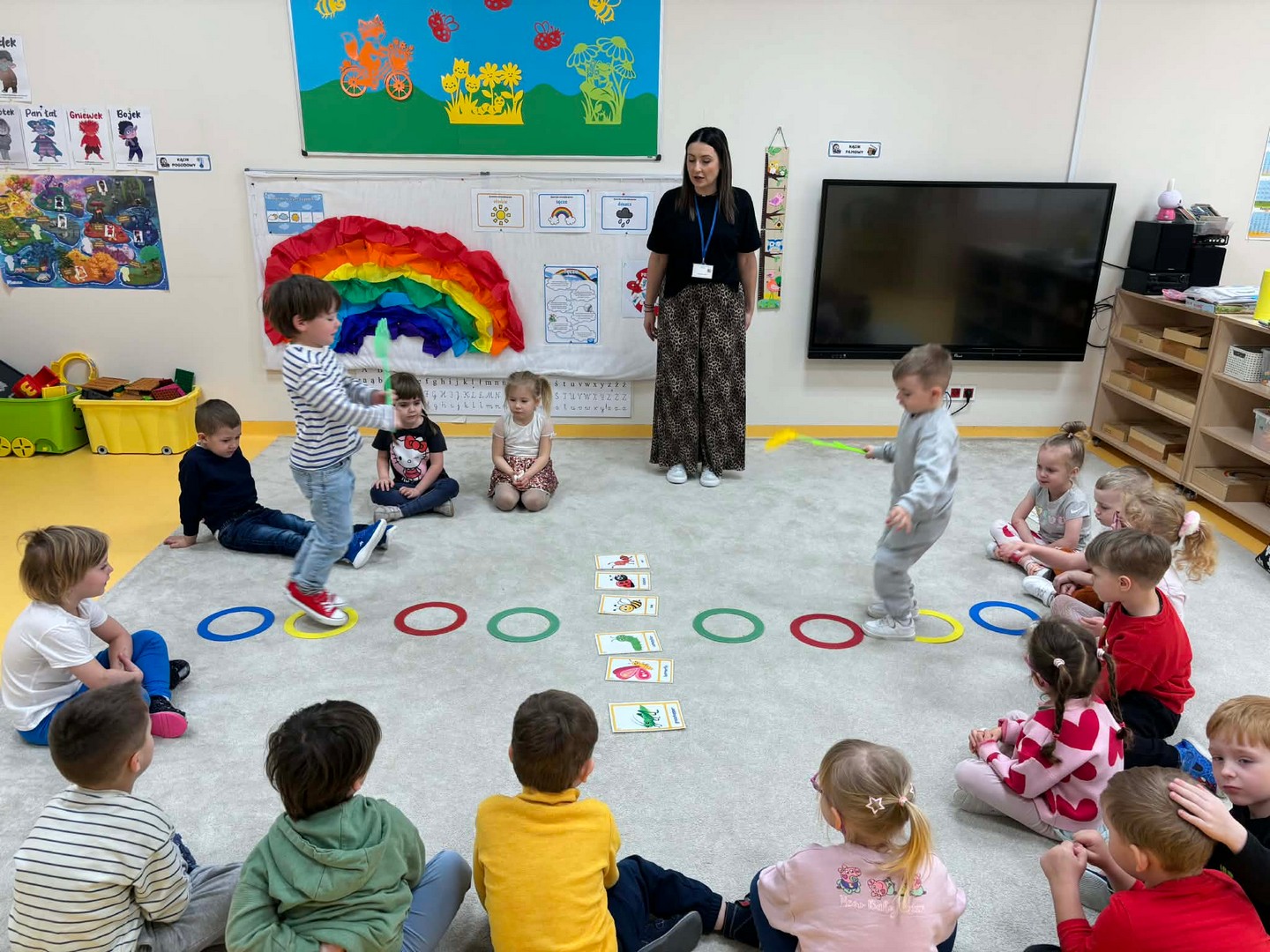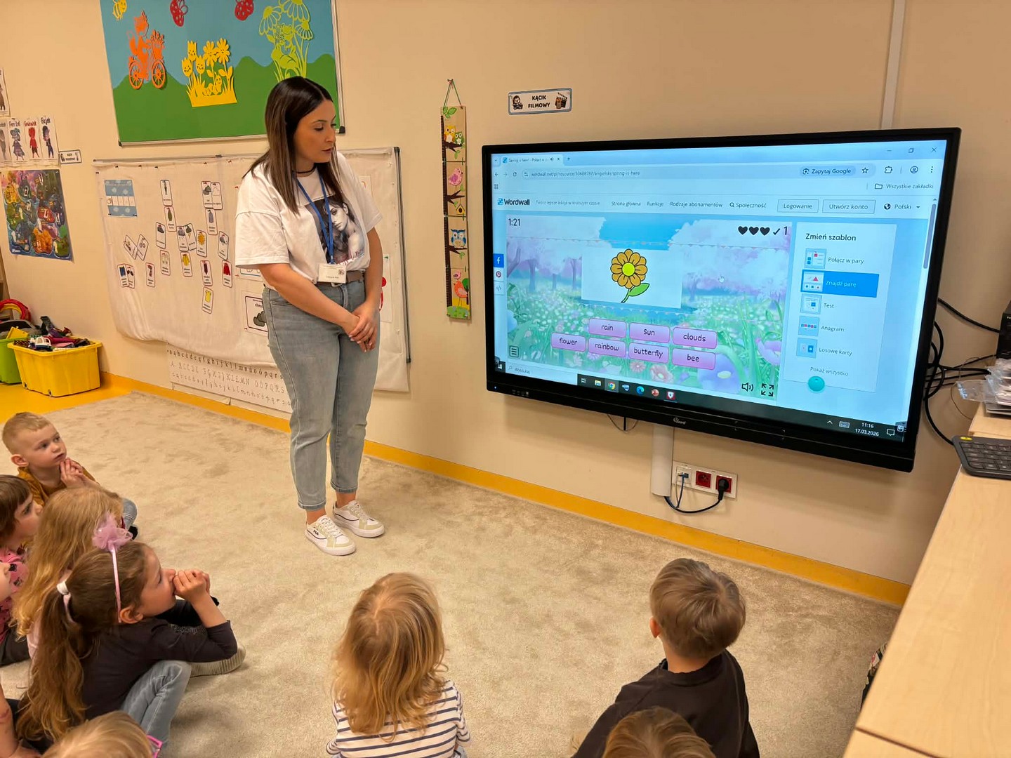 Projekt edukacyjny "Hello spring-wiosna w przedszkolu" został zrealizowany w czterech grupach przedszkolnych. Głównym celem projektu było wzbogacenie słownictwa związanego z wiosną, rozwój słuchania, mówienia oraz budowanie pozytywnej relacji z językiem. Za pomocą kolorowych kart obrazkowych, grach językowych dzieci poznały wiosenne słownictwo oraz wzbogaciły swoją wiedzę na temat przyrody. W ramach projektu przedszkolaki założyły swój ogródek warzywny, utrwaliły kolory poprzez wskazywanie barw na wiosennej łące, poznały figury geometryczne oraz wiosenne słownictwo, stworzyły plakat, wzięły udział w zabawach ruchowych, muzycznych, plastycznych. Wydarzeniem finałowym projektu było krótkie przedstawienie w języku angielskim pt: "Can you be my friend" ? przygotowane przez grupę dzieci pięcioletnich, gdzie dzieci wcieliły się w role owadów.
