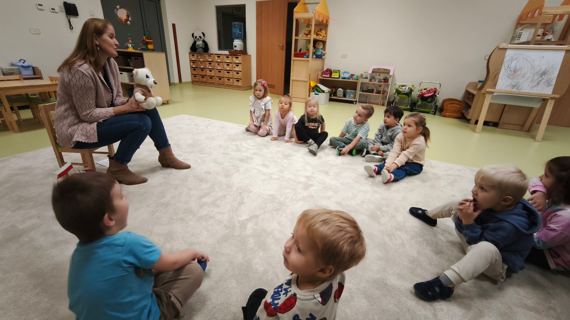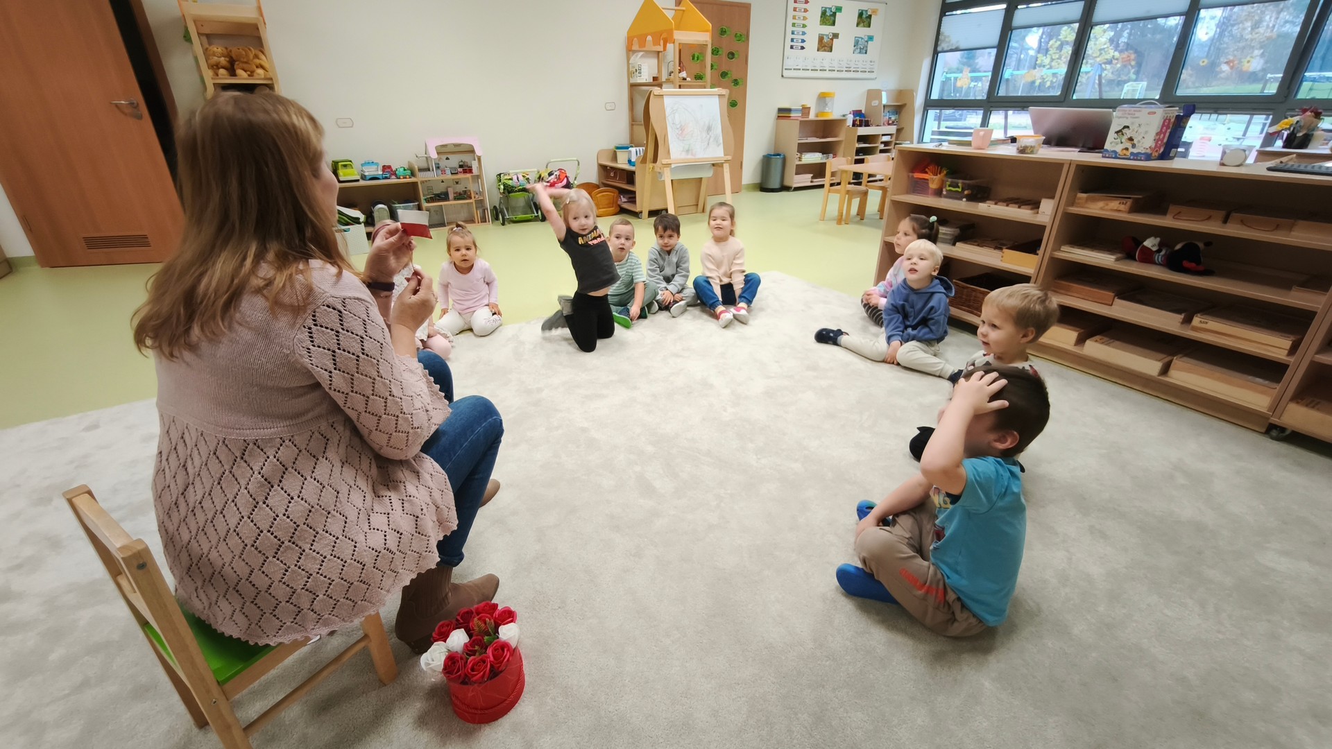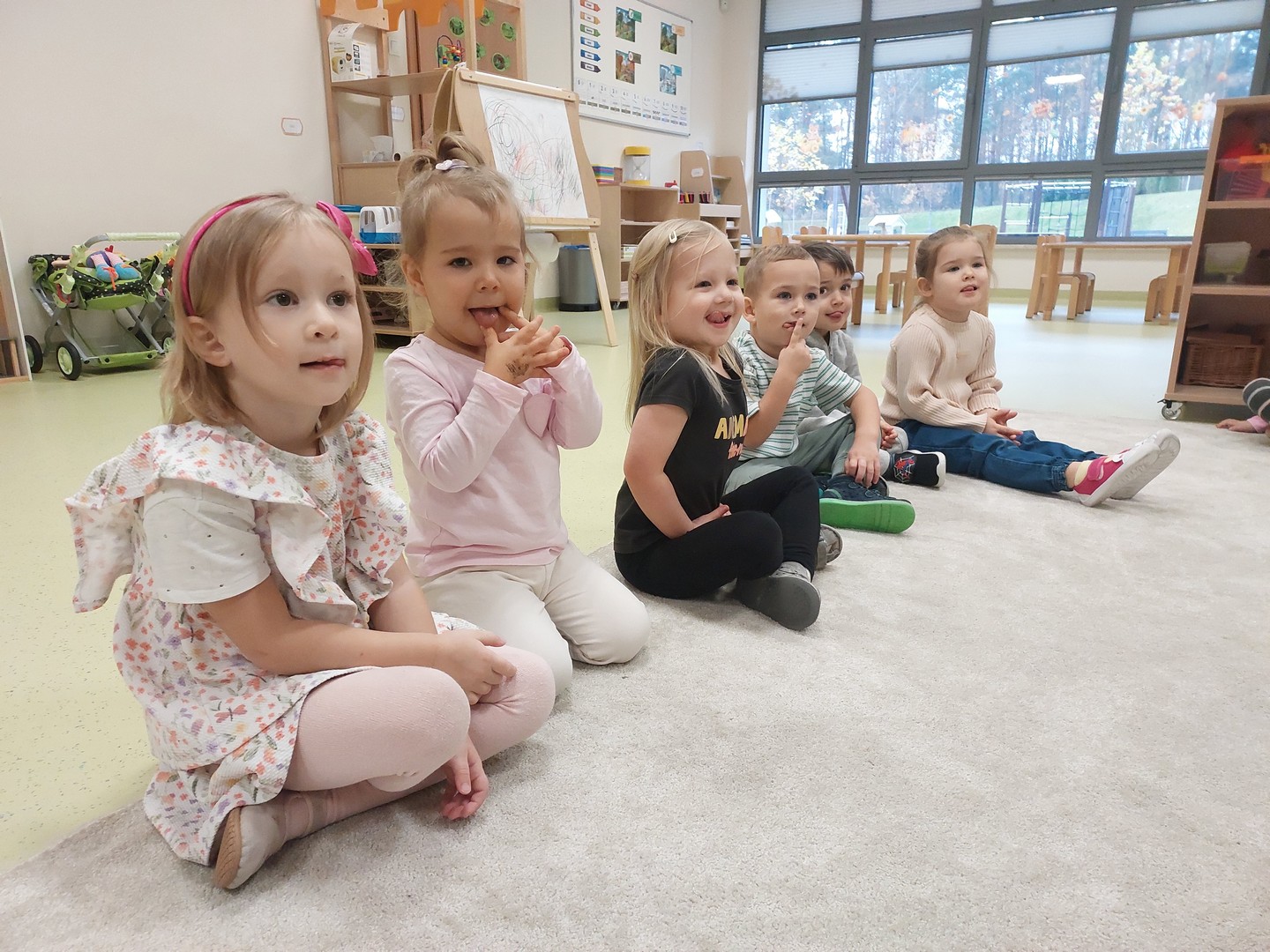 Dziś grupa trzy-czterolatków poznawała i utrwalała nasze symbole narodowe. Żabki ćwiczyły język, wargi i policzki. Bawiliśmy się p. Asią i Misiem Lulusiem w zgadywanki tematyczne, o naszych barwach i godle, fladze i hymnie. Na zakończenie powstały piękne flagi. Luluś przypominał nam jak zbudowany jest język, gdzie jest jego czubek, środek, gdzie mamy podniebienie twarde, miękkie i policzki. Języczek – jako flaga trzepotał na wietrze, malowaliśmy kolor na górze i na dole, unosiliśmy ją wysoko na maszt. Później języczek był orłem z naszego godła. Po zakończonej bajce przypominaliśmy wspólnie wszystkie symbole i przypisane do nich ruchy artykulatorów. Już zaprosiliśmy Lulusia na następny tydzień.