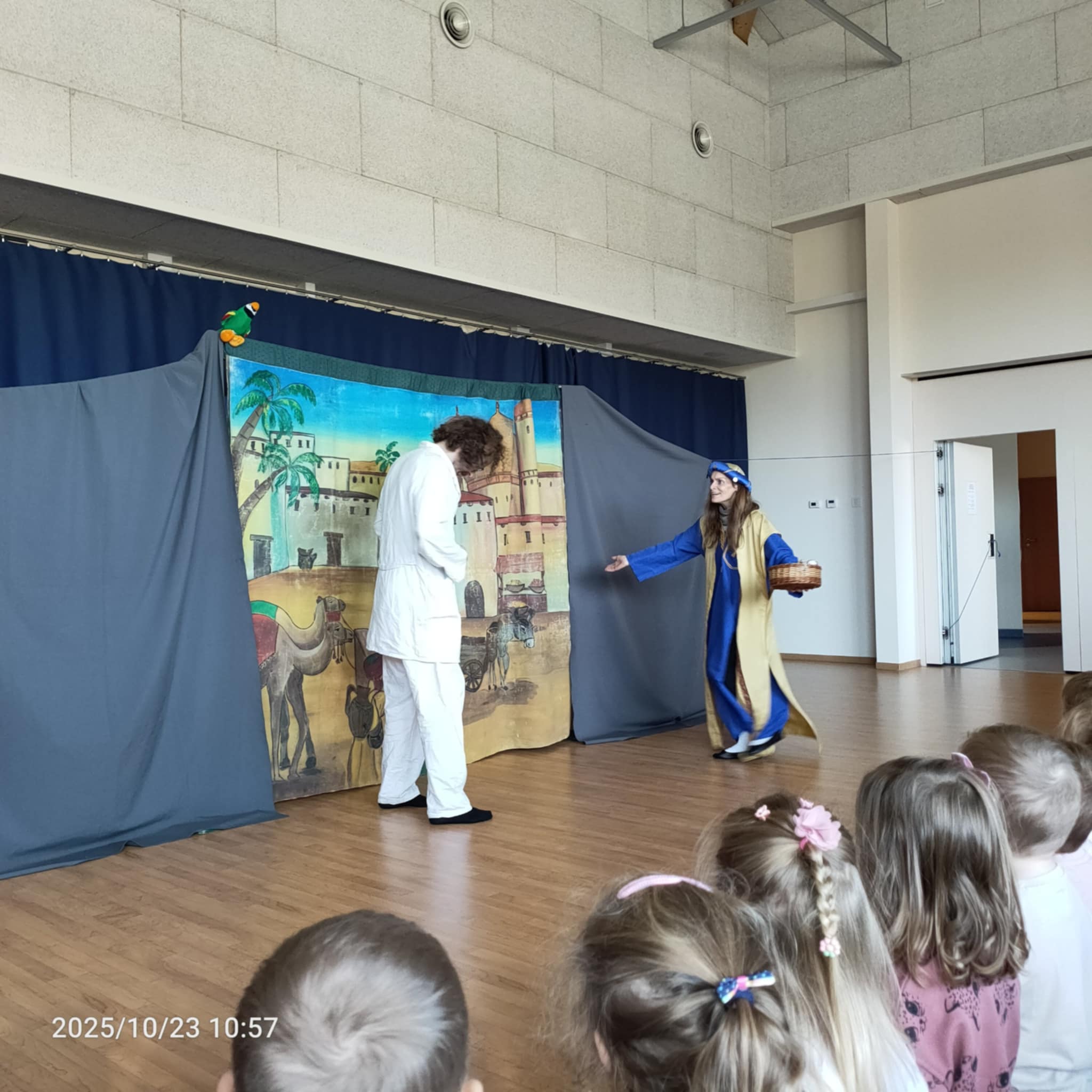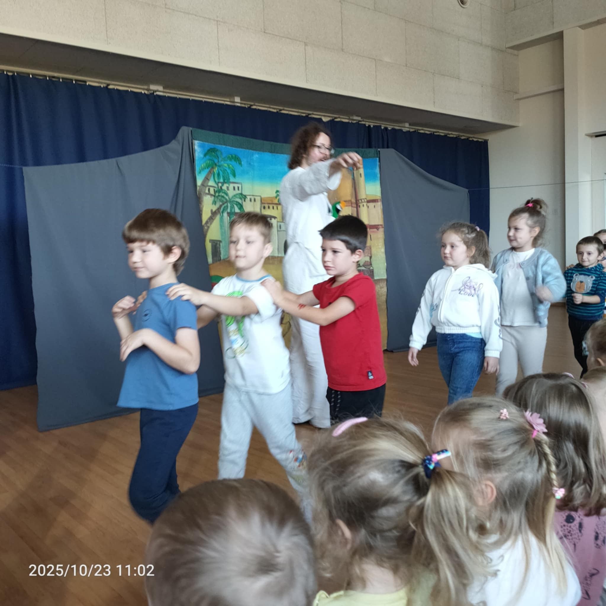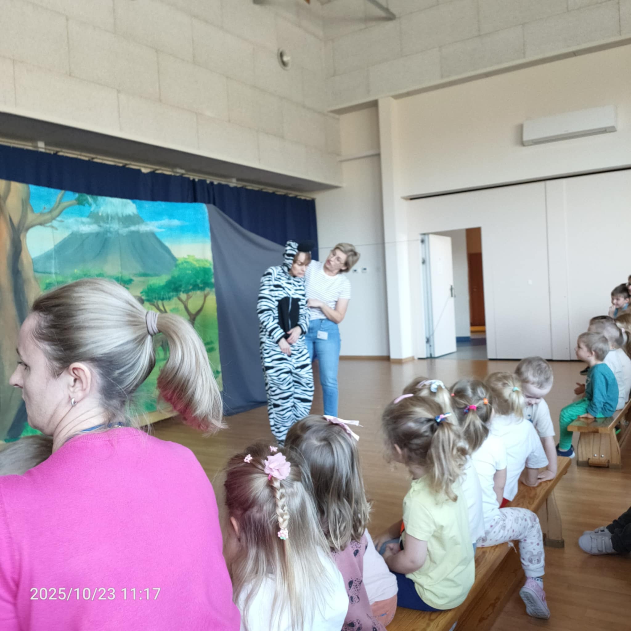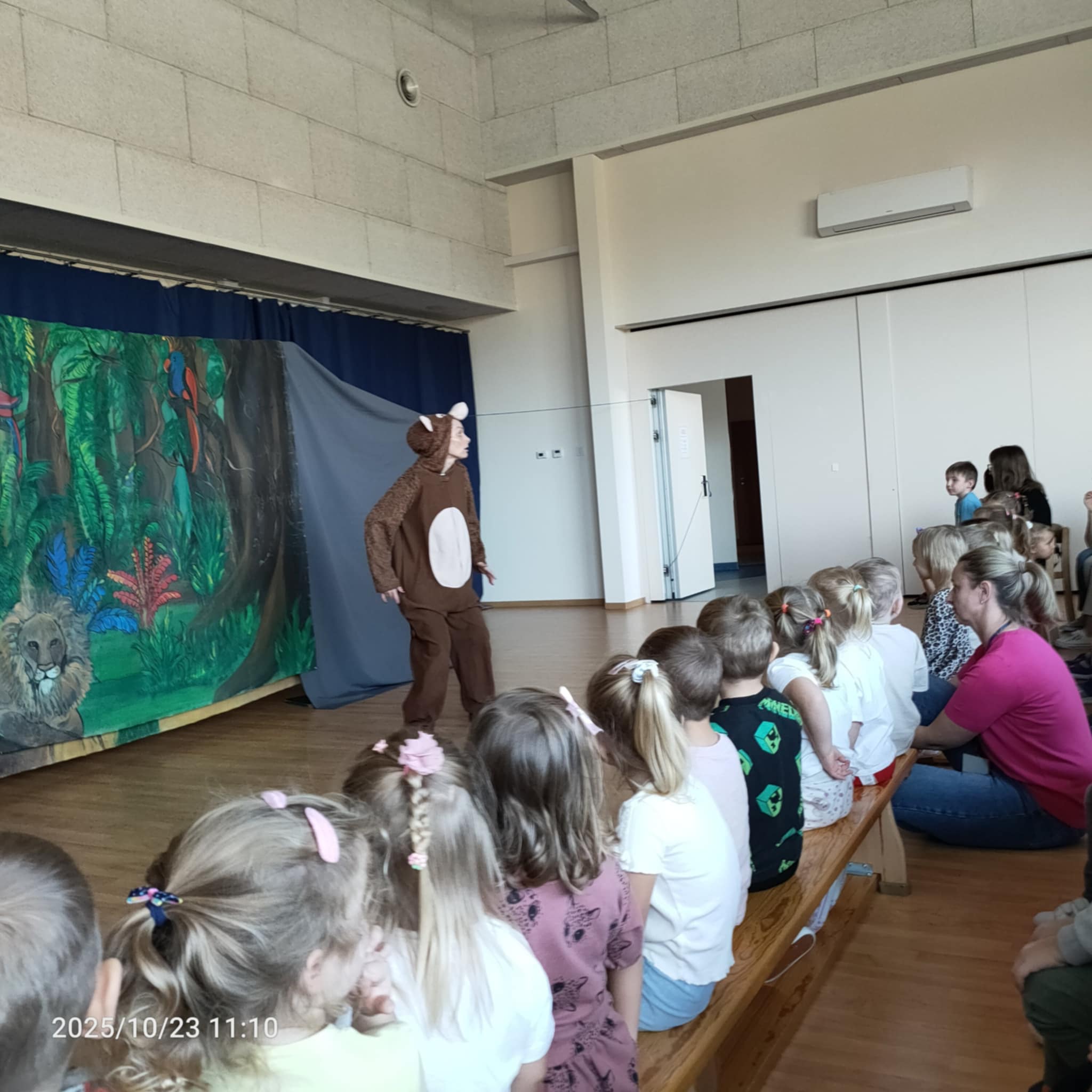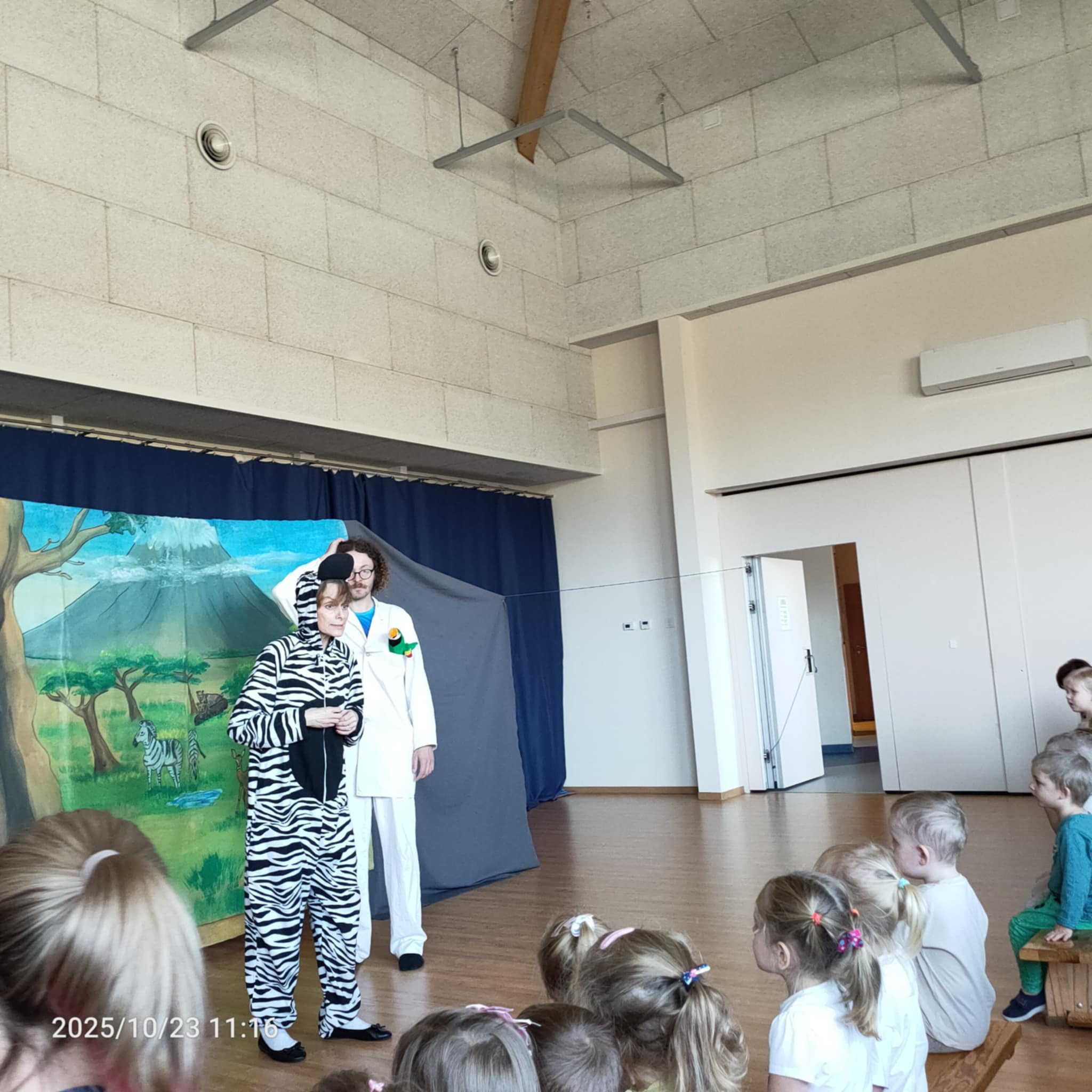 Dnia 23 października br. w naszym przedszkolu odbyło się wyjątkowe przedstawienie pt. "Doktor Dolittle i jego zwierzęta". Aktorzy zaangażowali dzieci w różnorodne zabawy ruchowe, dzięki czemu mali uczestnicy mogli aktywnie uczestniczyć w wydarzeniu. Podczas przedstawienia dzieci miały okazję poznać bliżej sympatyczne zwierzęta, takie jak zebra, małpa, hipopotam, żyrafa oraz pirat. Cała impreza była świetną zabawą i dostarczyła dzieciom mnóstwo radości oraz niezapomnianych wrażeń.