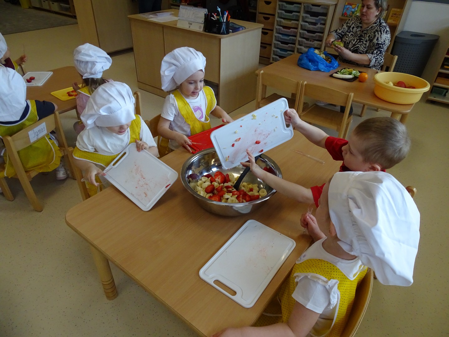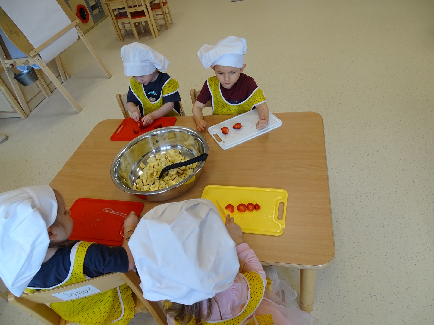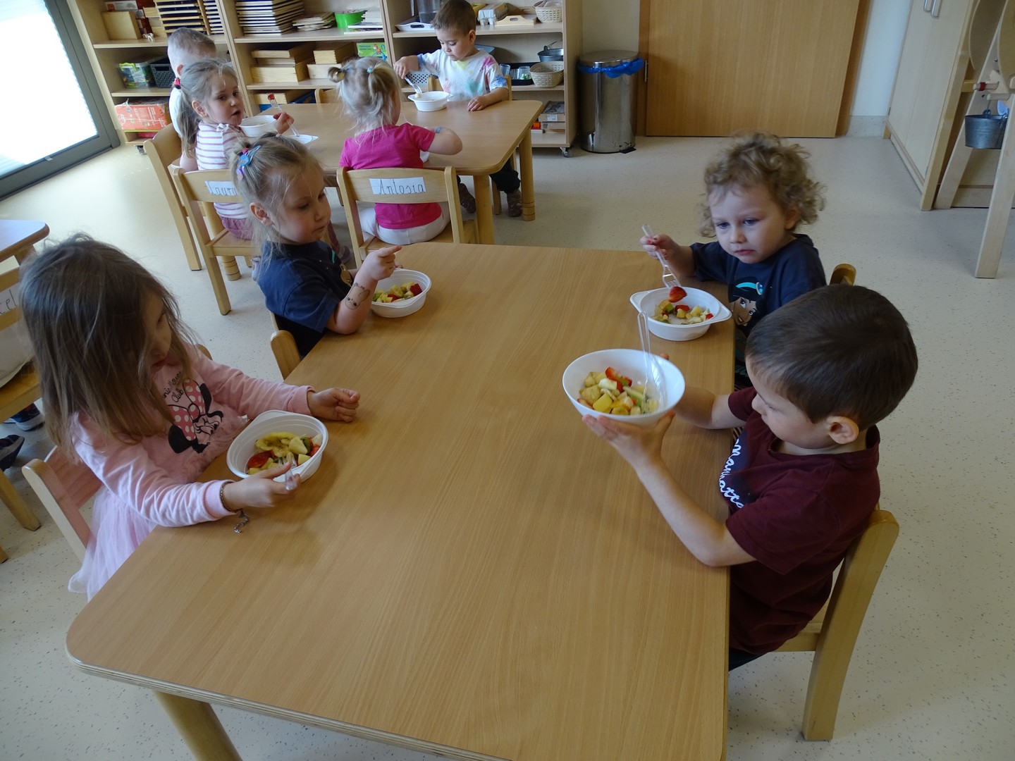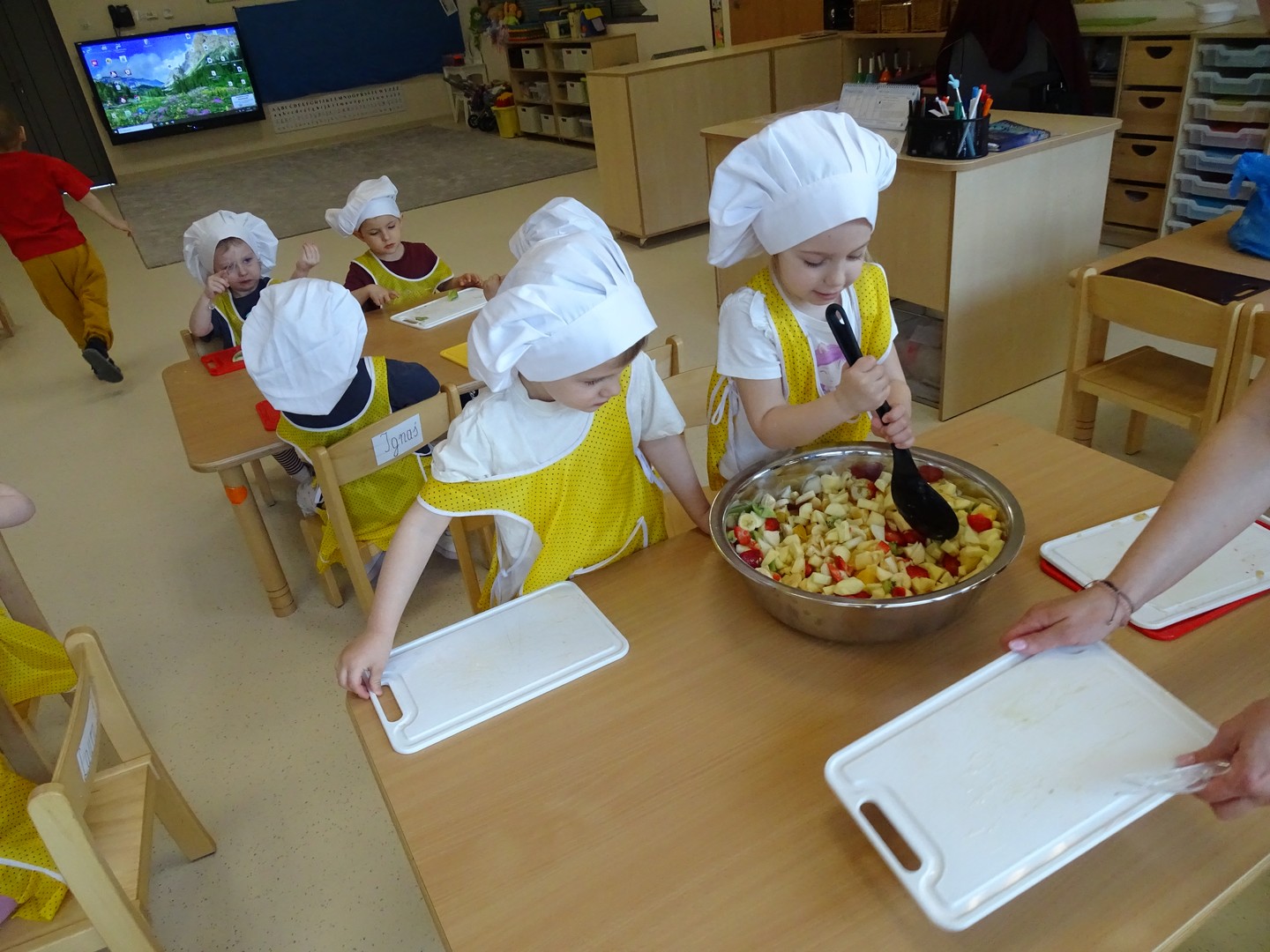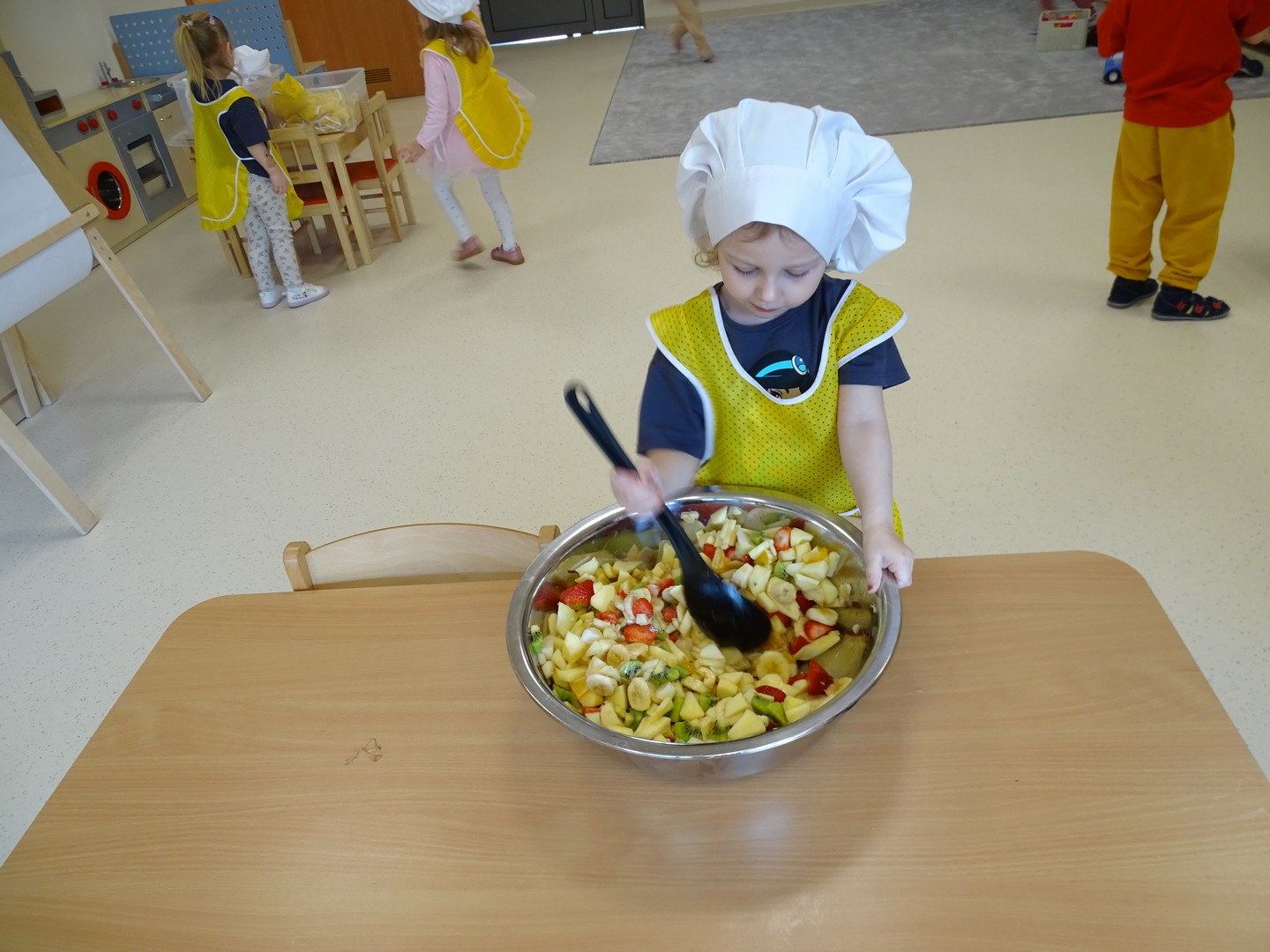 W ramach tygodnia o zdrowiu dzieci z grupy Nutki zrobiły sałatkę owocową.