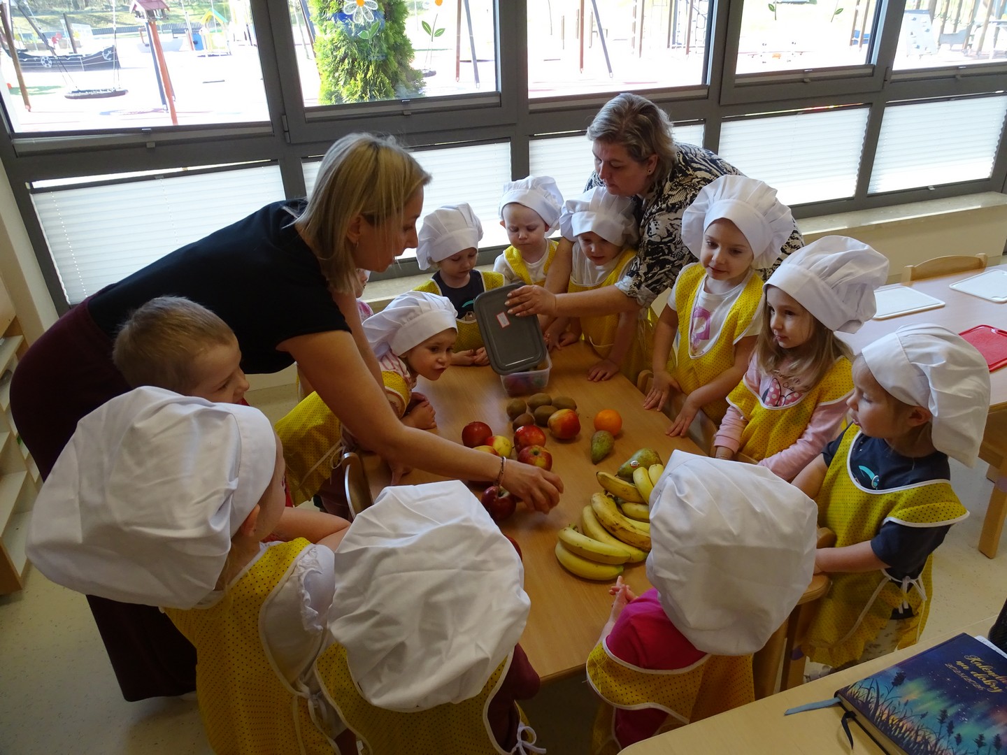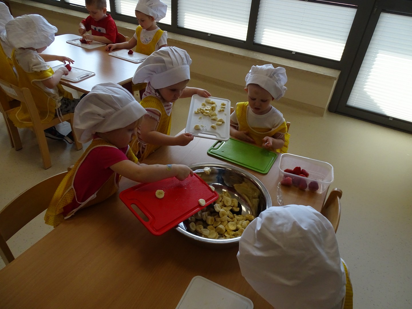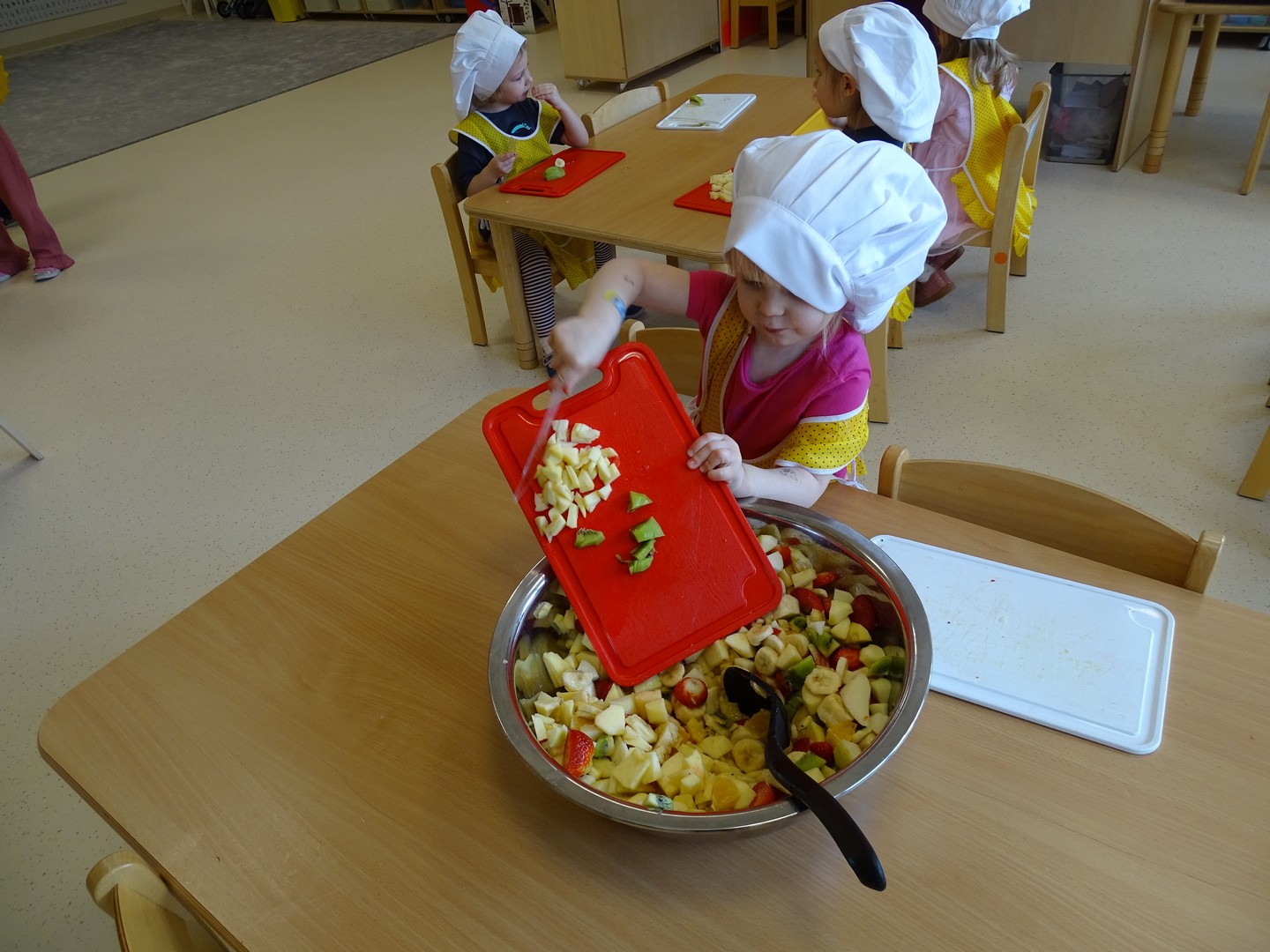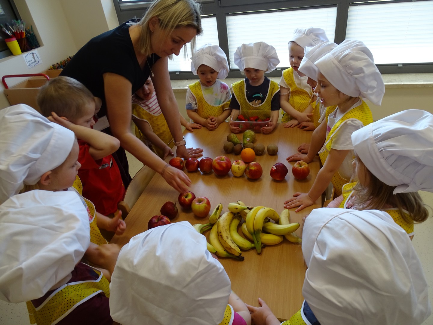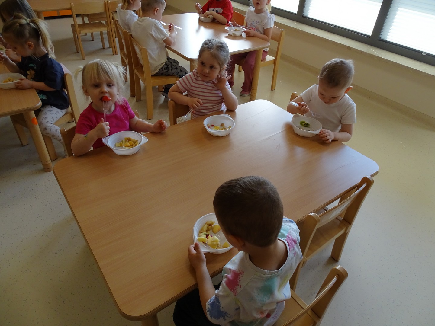 W ramach tygodnia o zdrowiu dzieci z grupy Nutki zrobiły sałatkę owocową.