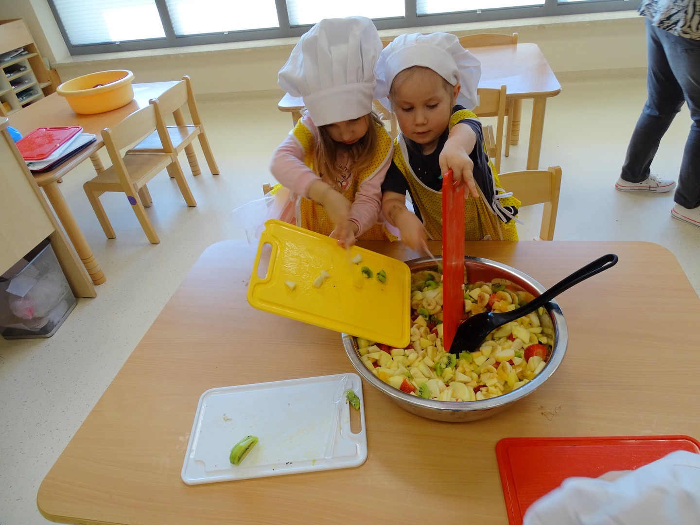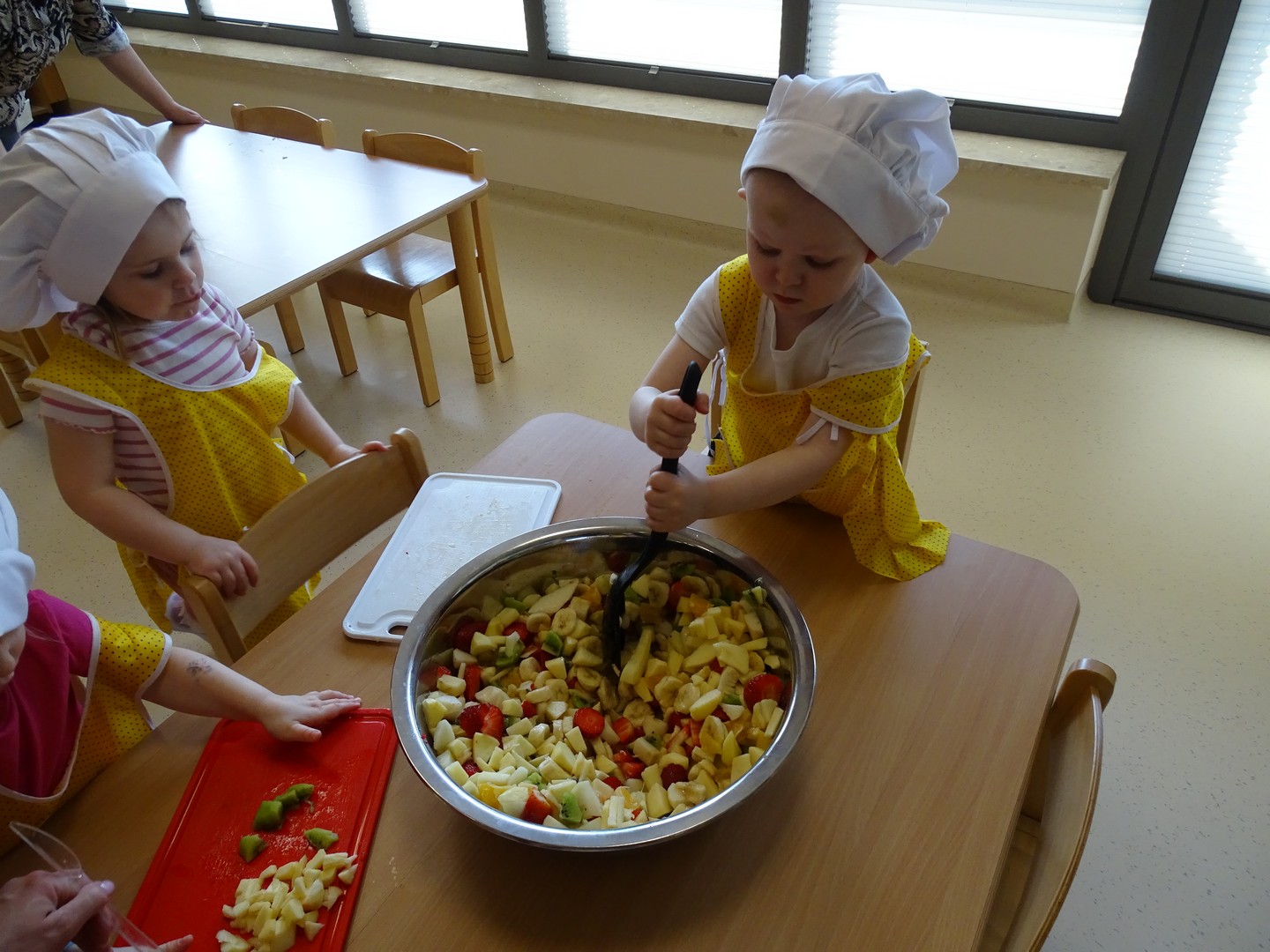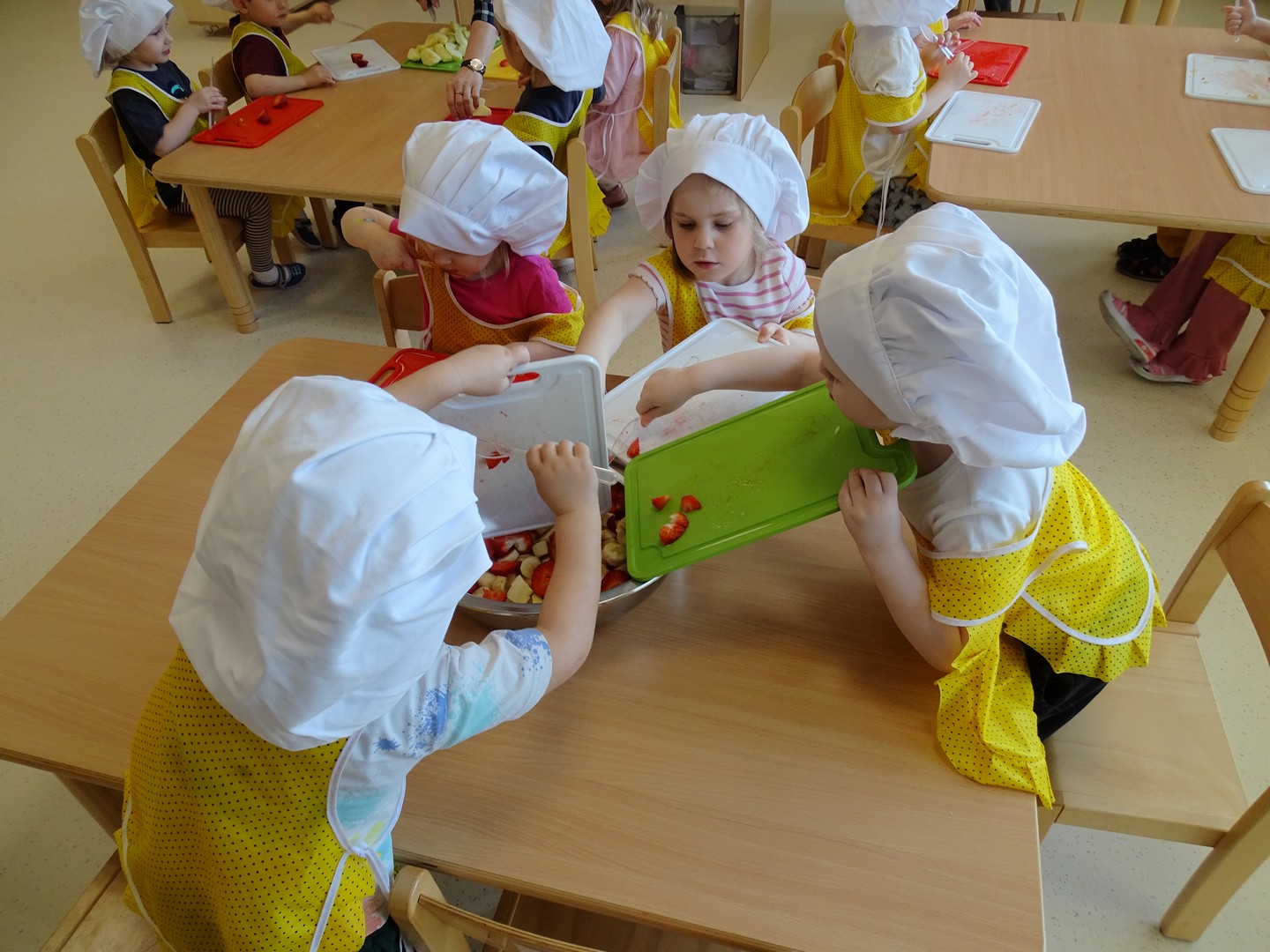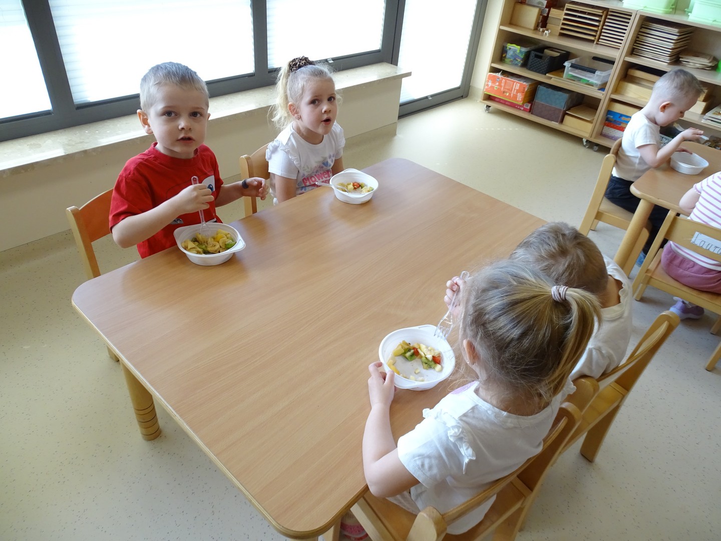 W ramach tygodnia o zdrowiu dzieci z grupy Nutki zrobiły sałatkę owocową.