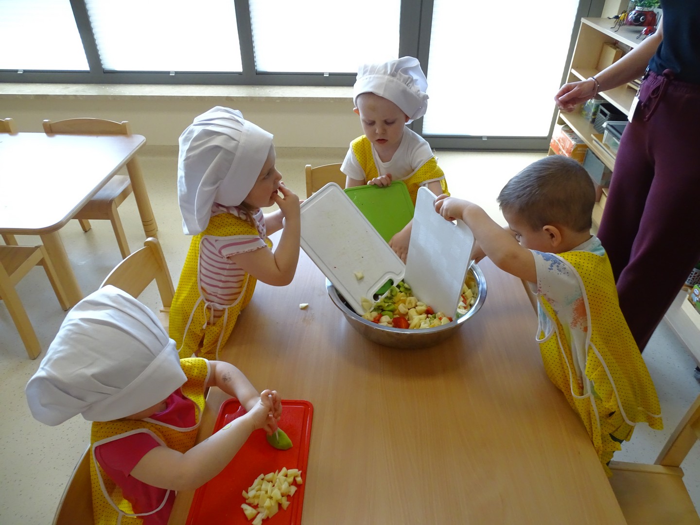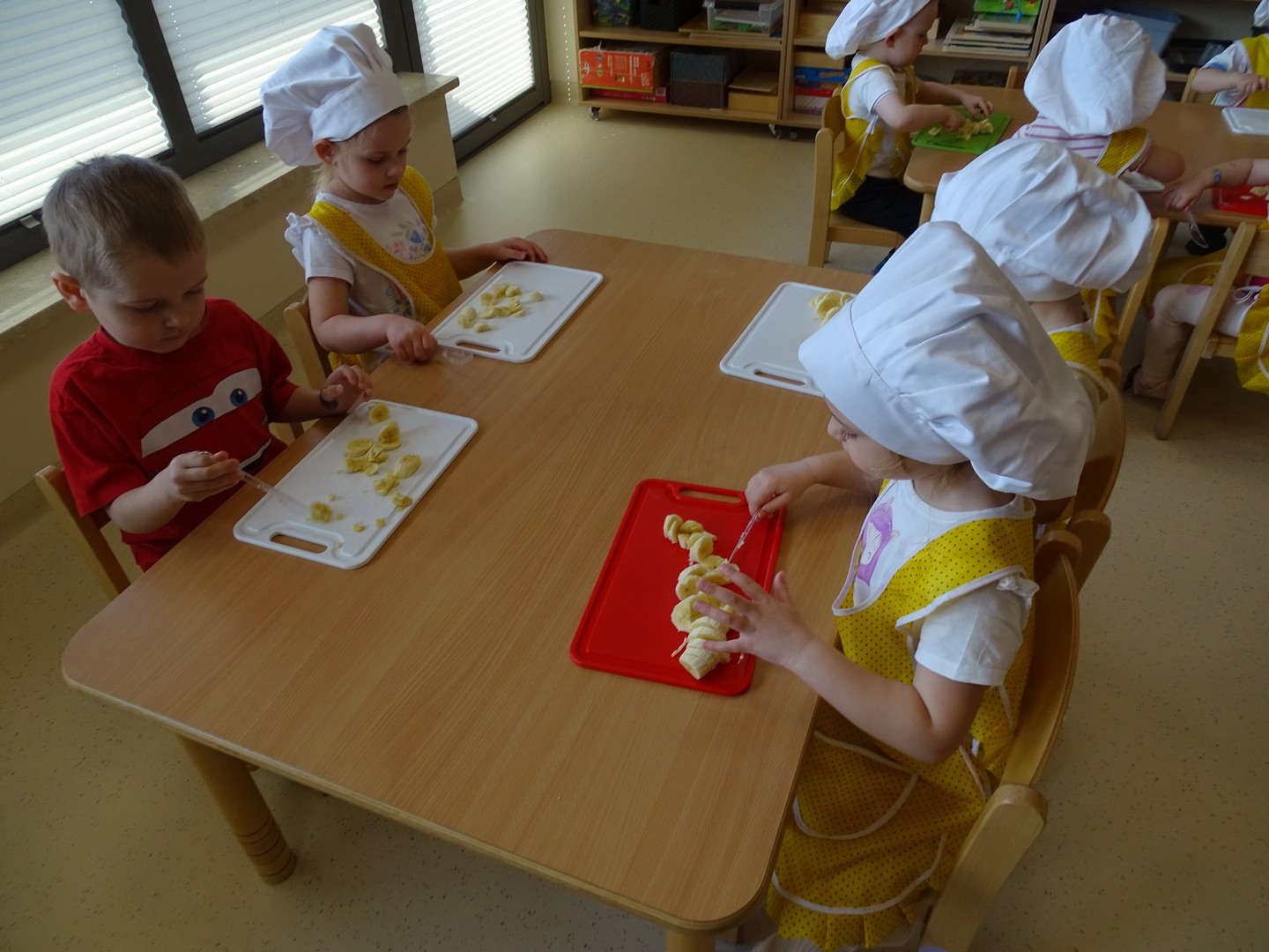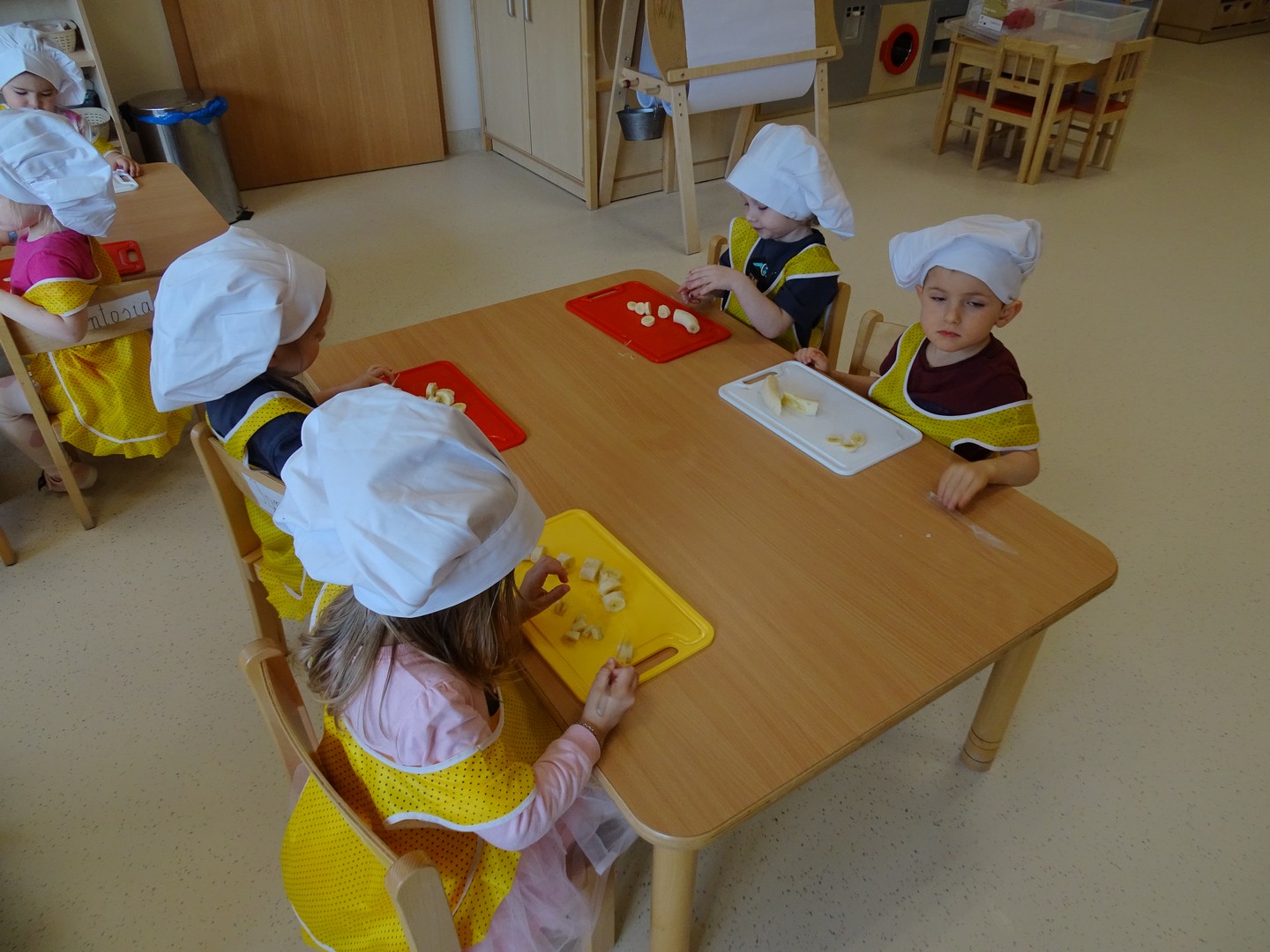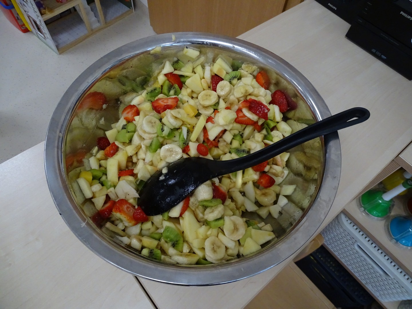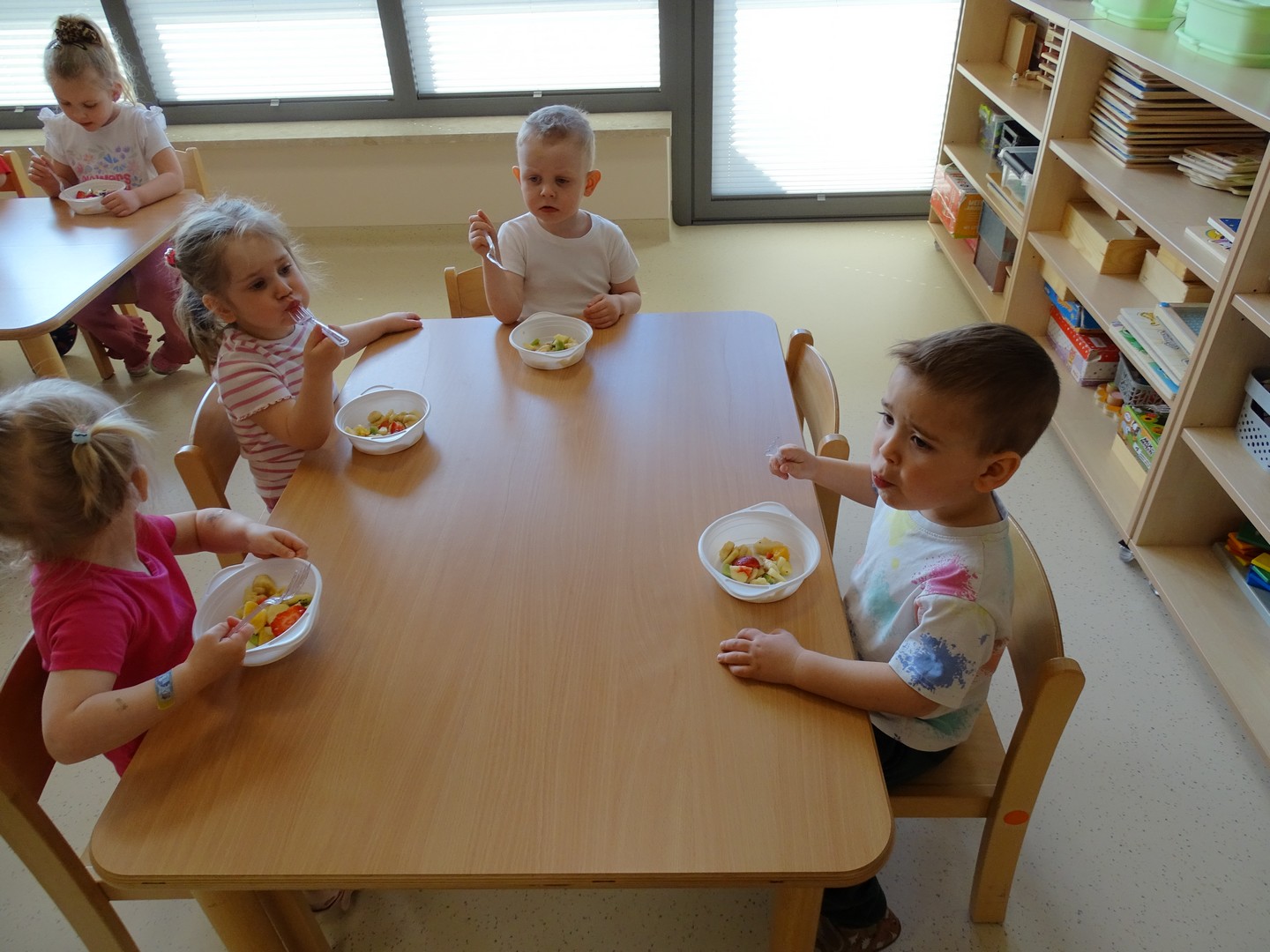 W ramach tygodnia o zdrowiu dzieci z grupy Nutki zrobiły sałatkę owocową.