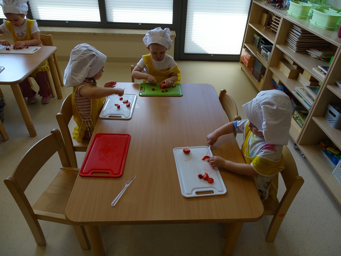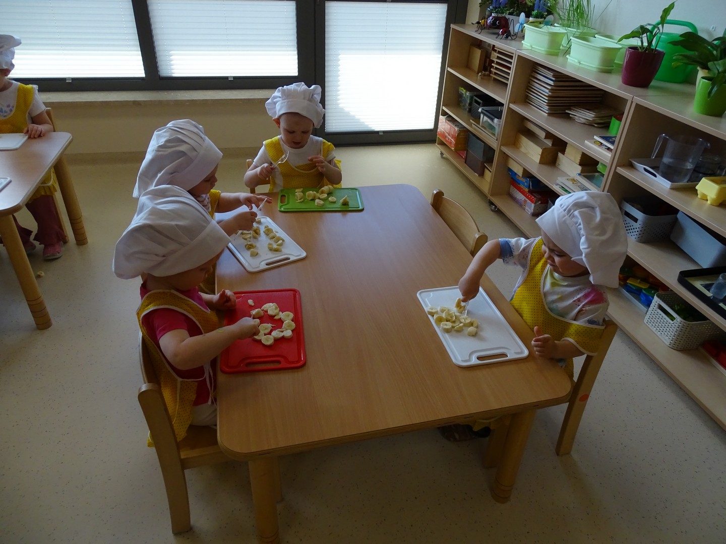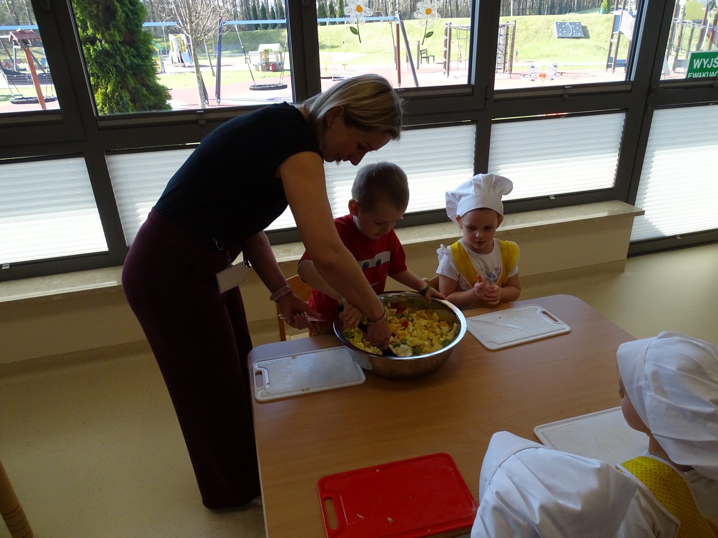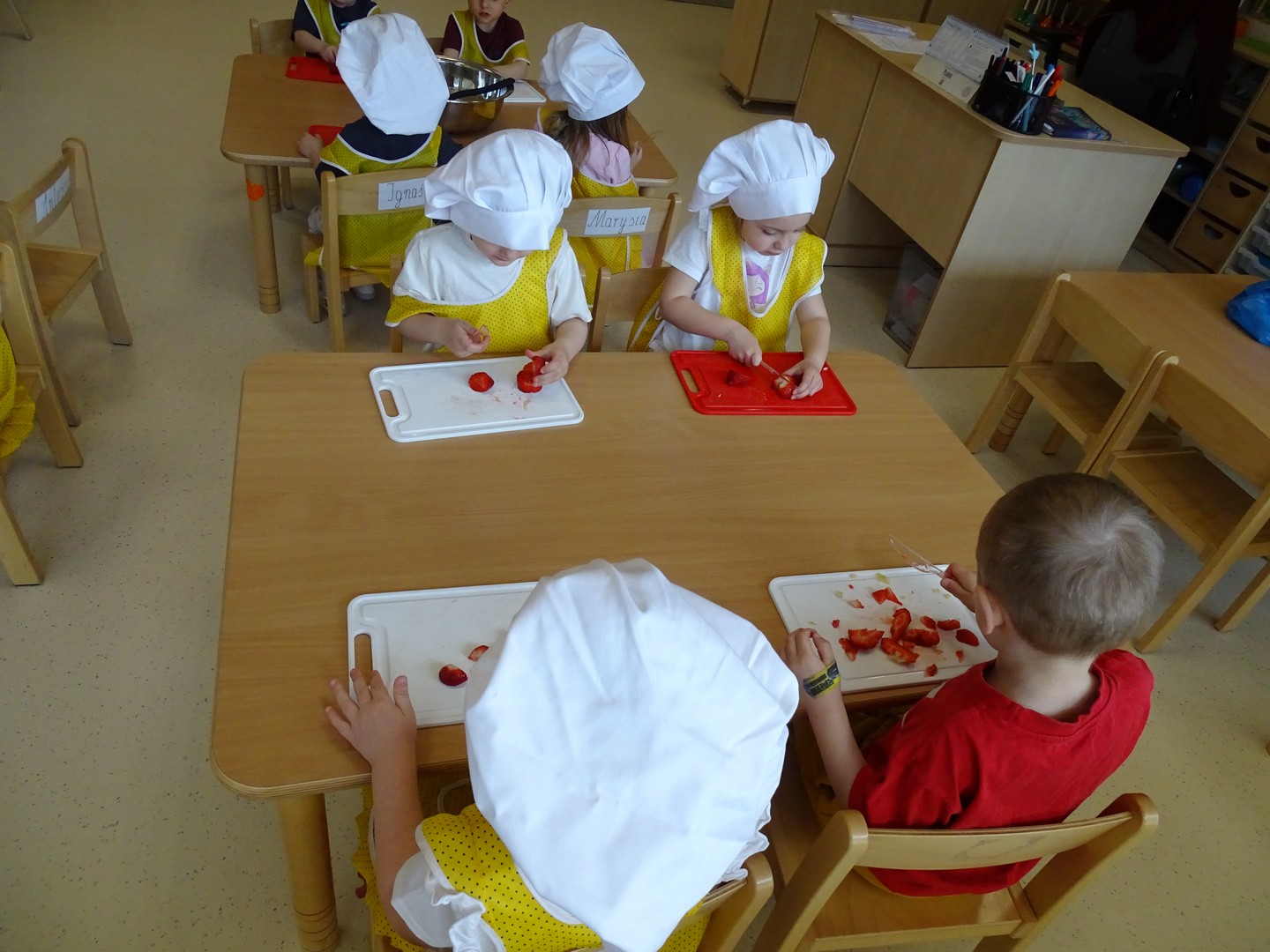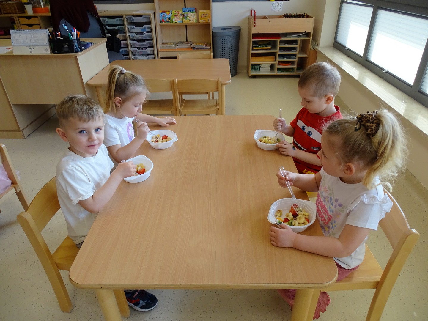 W ramach tygodnia o zdrowiu dzieci z grupy Nutki zrobiły sałatkę owocową.
