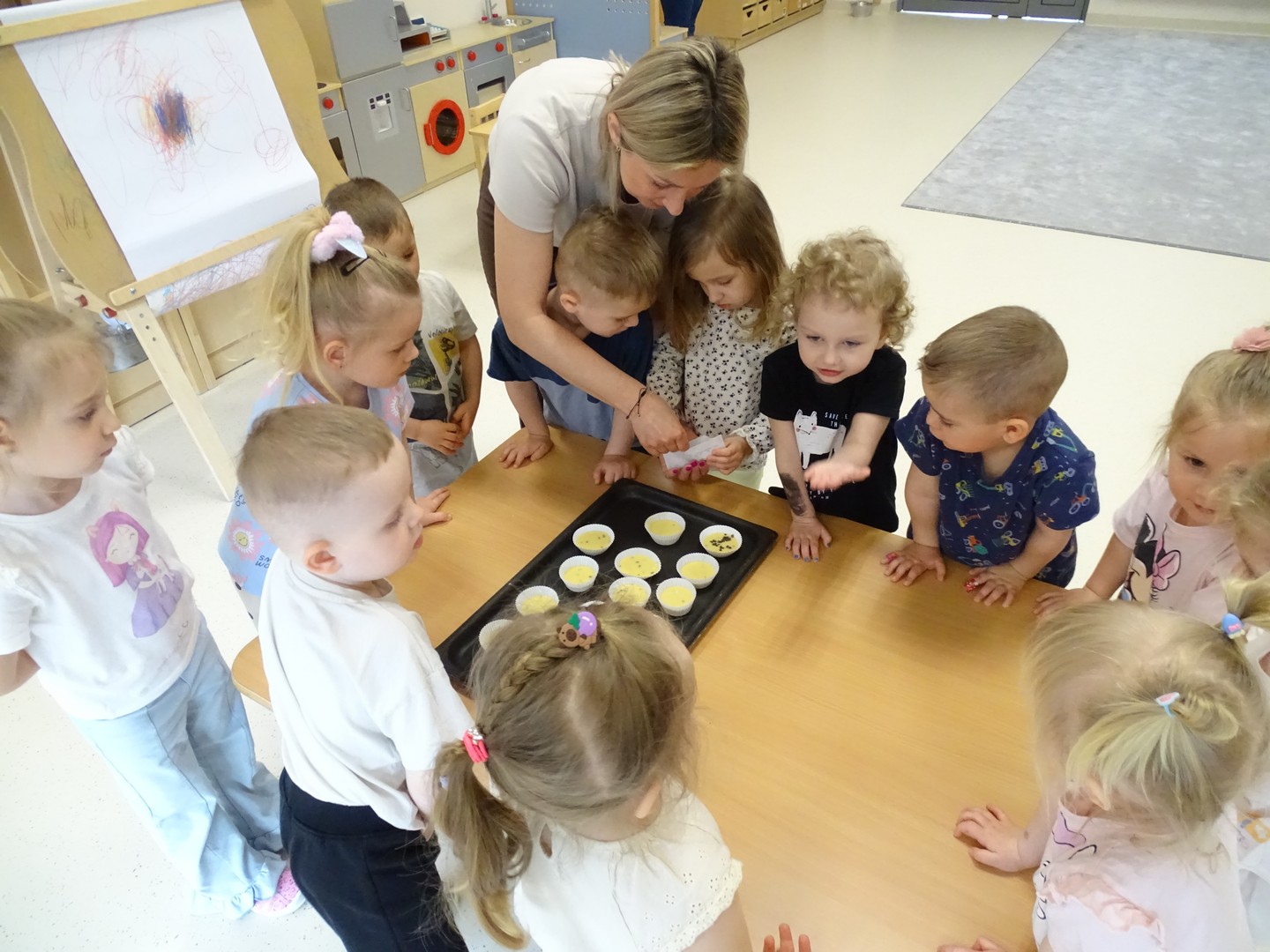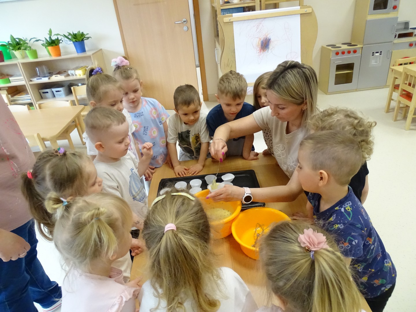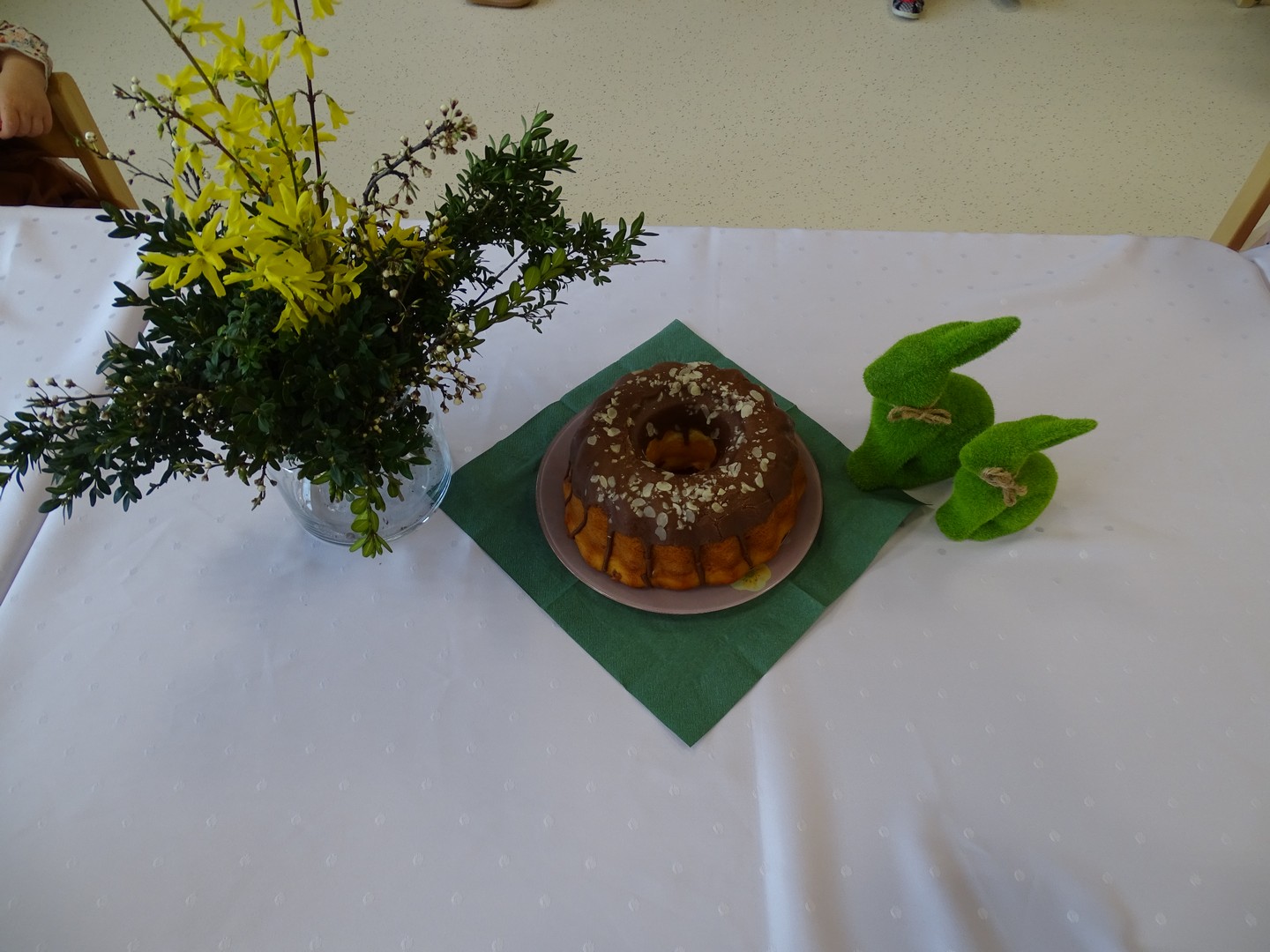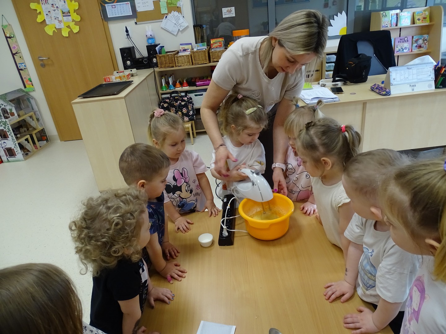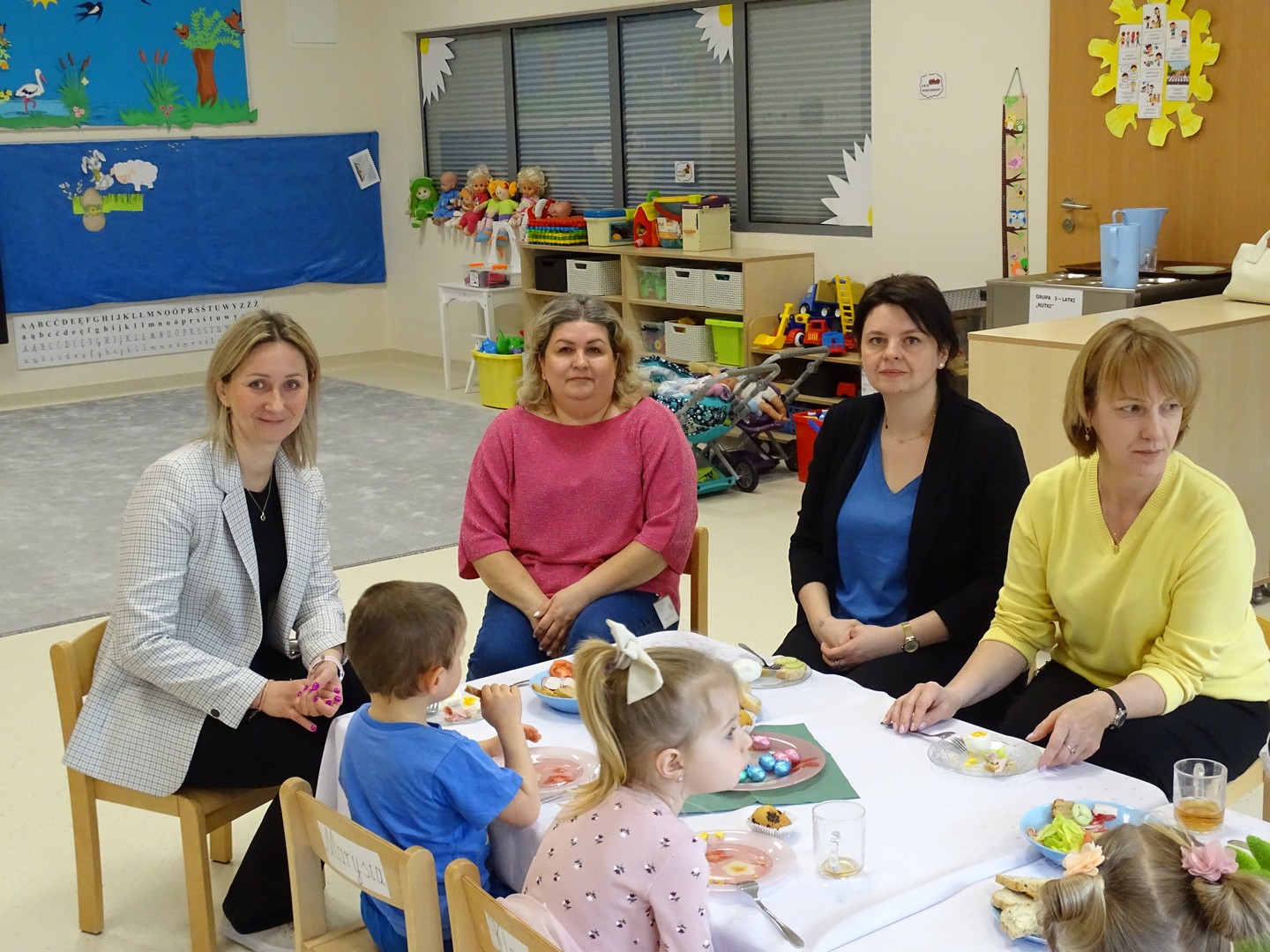 W Wielki Czwartek dzieci wraz z paniami zasiadły do śniadania wielkanocnego. Przedszkolaki aktywnie włączyły się w przygotowanie świątecznego stołu. Na stole pojawiły się tradycyjne wielkanocne przysmaki – jajka, szynka, babka wielkanocna, babeczki, które samodzielnie upiekły. Nie zabrakło także symboli wielkanocnych oraz stroików. Spotkanie przy wspólnym świątecznym stole sprawiło dzieciom wiele radości.