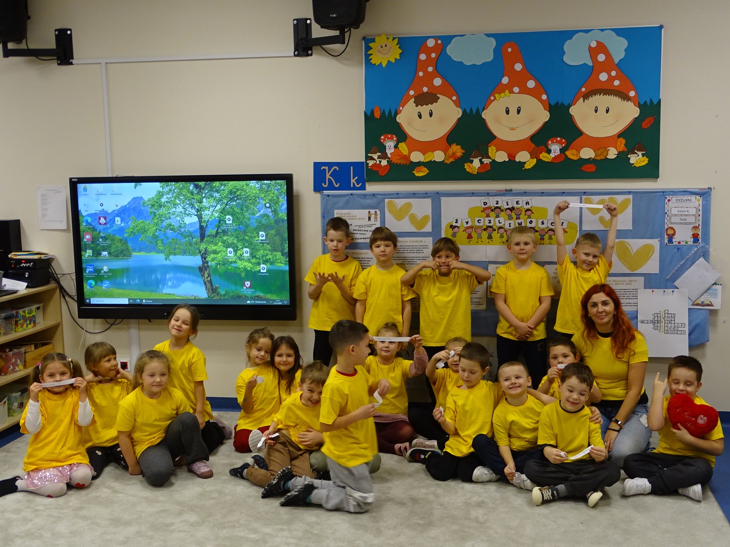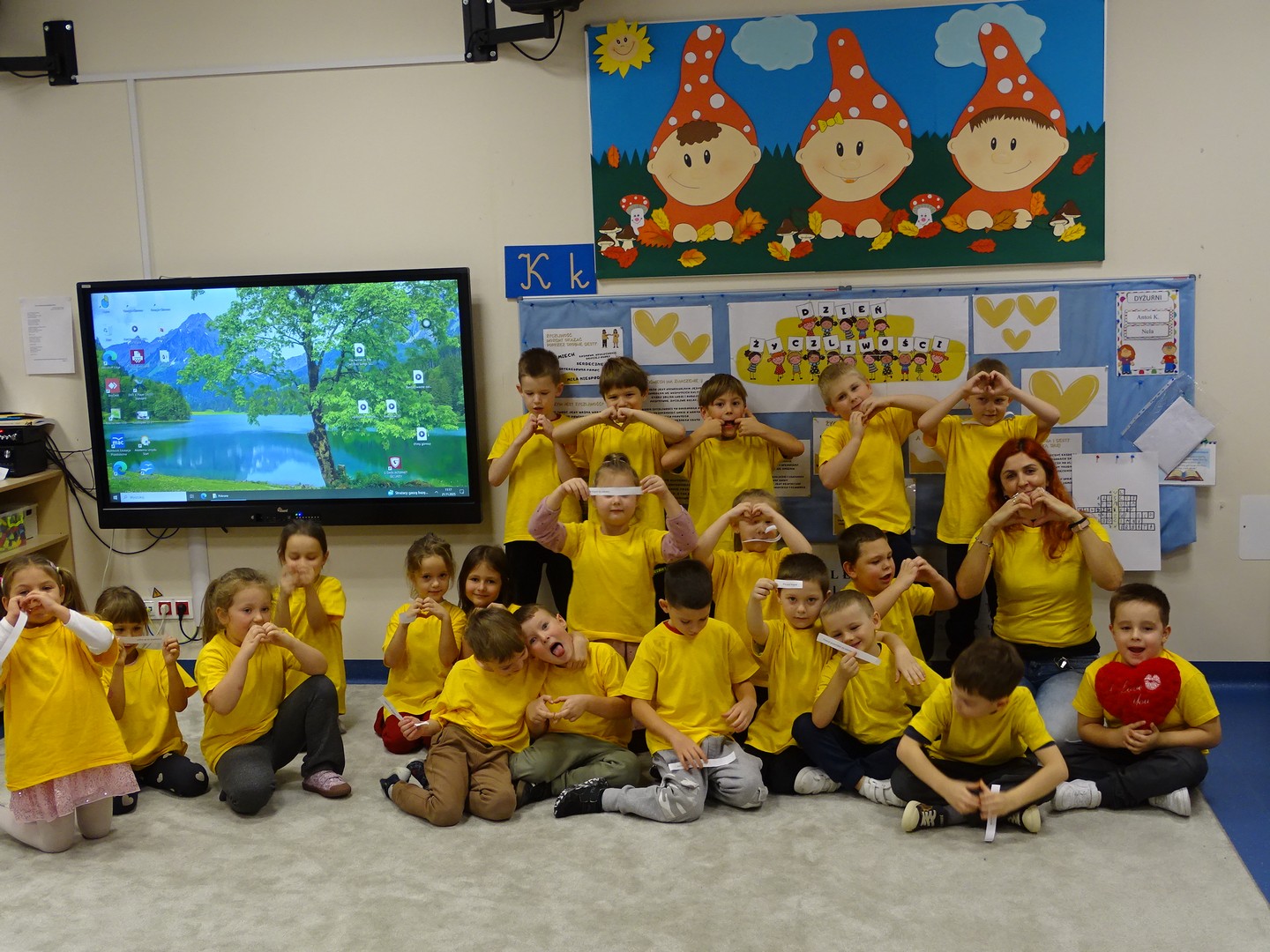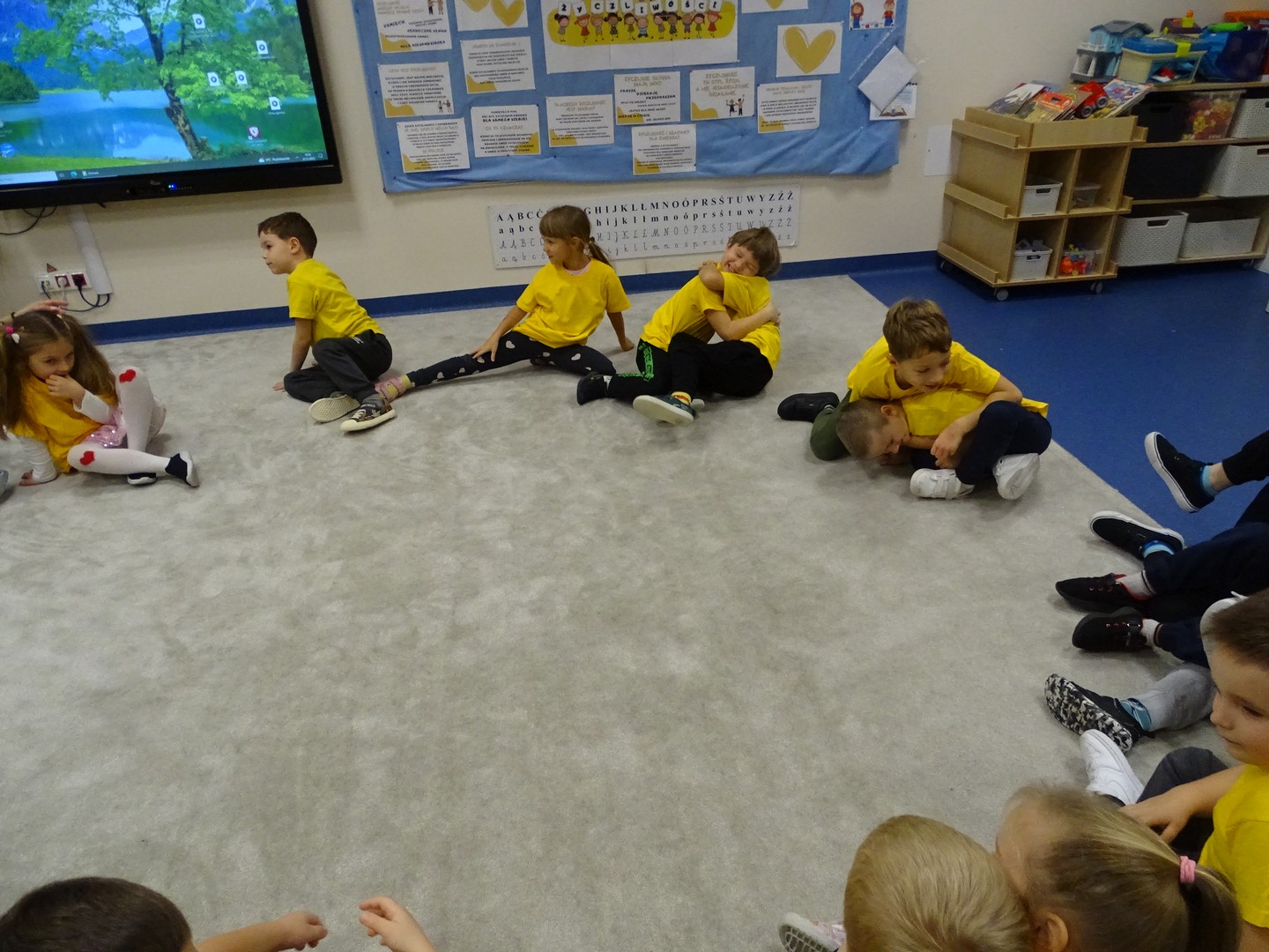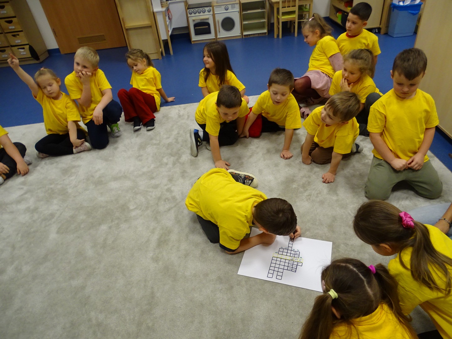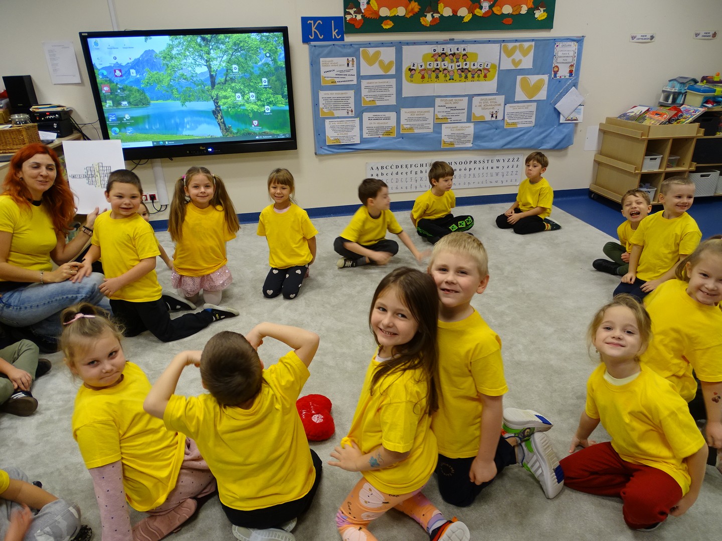 21 listopada w naszej grupie obchodziliśmy Dzień Życzliwości i Pozdrowień. Był to wyjątkowy czas, pełen uśmiechów, dobrej energii i serdecznych gestów. Na początku dzieci usiadły w kręgu i przekazując sobie serduszko, mówiły kolegom i koleżankom miłe słowa. Wspólnie tańczyliśmy do „Piosenki bardzo kulturalnej”, a następnie przedszkolaki rozwiązywały zagadki i krzyżówki związane z tematem życzliwości. Nie zabrakło także uścisków i wzajemnych przytuleń. Dużo radości sprawiło dzieciom losowanie ze „Słoika Życzliwości”. W środku znajdowały się zadania do wykonania, np.: narysuj komuś laurkę, zaproś kolegę lub koleżankę do wspólnej zabawy, powiedz komuś coś miłego. Rozmawialiśmy także o tym, że życzliwość jest ważna każdego dnia, nie tylko podczas wyjątkowych okazji. Na zakończenie dzieci odrysowywały swoje dłonie, wycinały je i tworzyły z nich Girlandę Przyjaźni i Życzliwości. Przy wejściu do sali przygotowaliśmy również karteczki z dobrymi słowami do oderwania — każdy mógł zabrać ze sobą drobny, życzliwy gest i podzielić się nim z kimś bliskim. To był naprawdę miły, radosny dzień, pełen ciepła, dobroci i wzajemnej życzliwości.