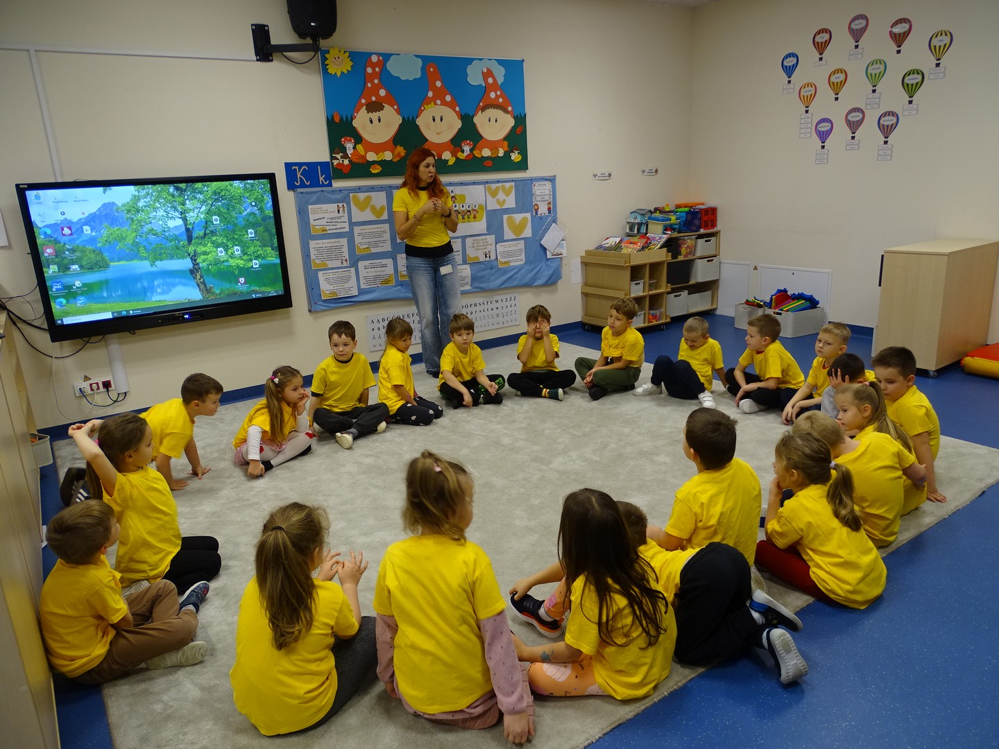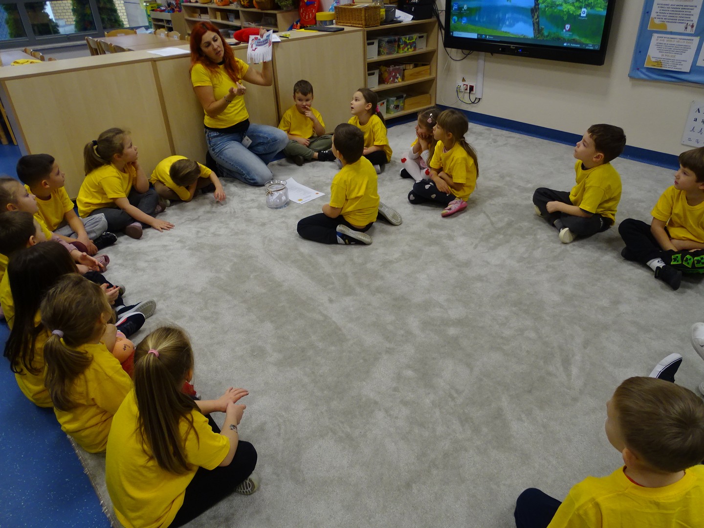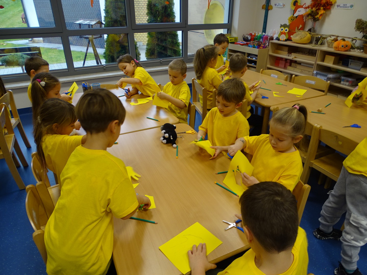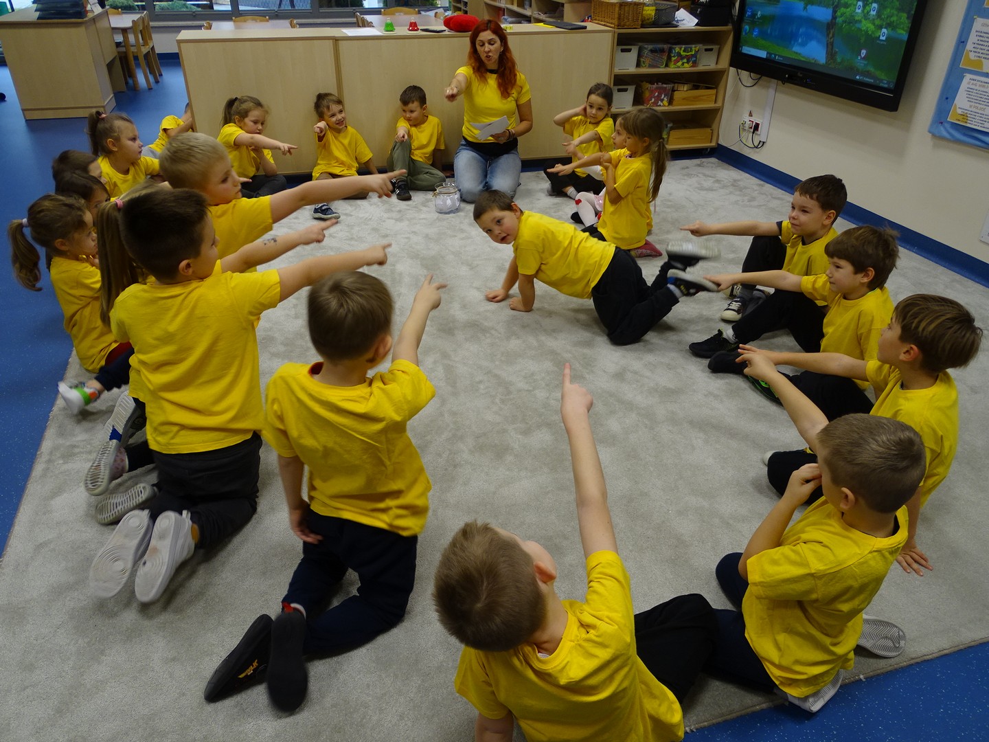 21 listopada w naszej grupie obchodziliśmy Dzień Życzliwości i Pozdrowień. Był to wyjątkowy czas, pełen uśmiechów, dobrej energii i serdecznych gestów. Na początku dzieci usiadły w kręgu i przekazując sobie serduszko, mówiły kolegom i koleżankom miłe słowa. Wspólnie tańczyliśmy do „Piosenki bardzo kulturalnej”, a następnie przedszkolaki rozwiązywały zagadki i krzyżówki związane z tematem życzliwości. Nie zabrakło także uścisków i wzajemnych przytuleń. Dużo radości sprawiło dzieciom losowanie ze „Słoika Życzliwości”. W środku znajdowały się zadania do wykonania, np.: narysuj komuś laurkę, zaproś kolegę lub koleżankę do wspólnej zabawy, powiedz komuś coś miłego. Rozmawialiśmy także o tym, że życzliwość jest ważna każdego dnia, nie tylko podczas wyjątkowych okazji. Na zakończenie dzieci odrysowywały swoje dłonie, wycinały je i tworzyły z nich Girlandę Przyjaźni i Życzliwości. Przy wejściu do sali przygotowaliśmy również karteczki z dobrymi słowami do oderwania — każdy mógł zabrać ze sobą drobny, życzliwy gest i podzielić się nim z kimś bliskim. To był naprawdę miły, radosny dzień, pełen ciepła, dobroci i wzajemnej życzliwości.