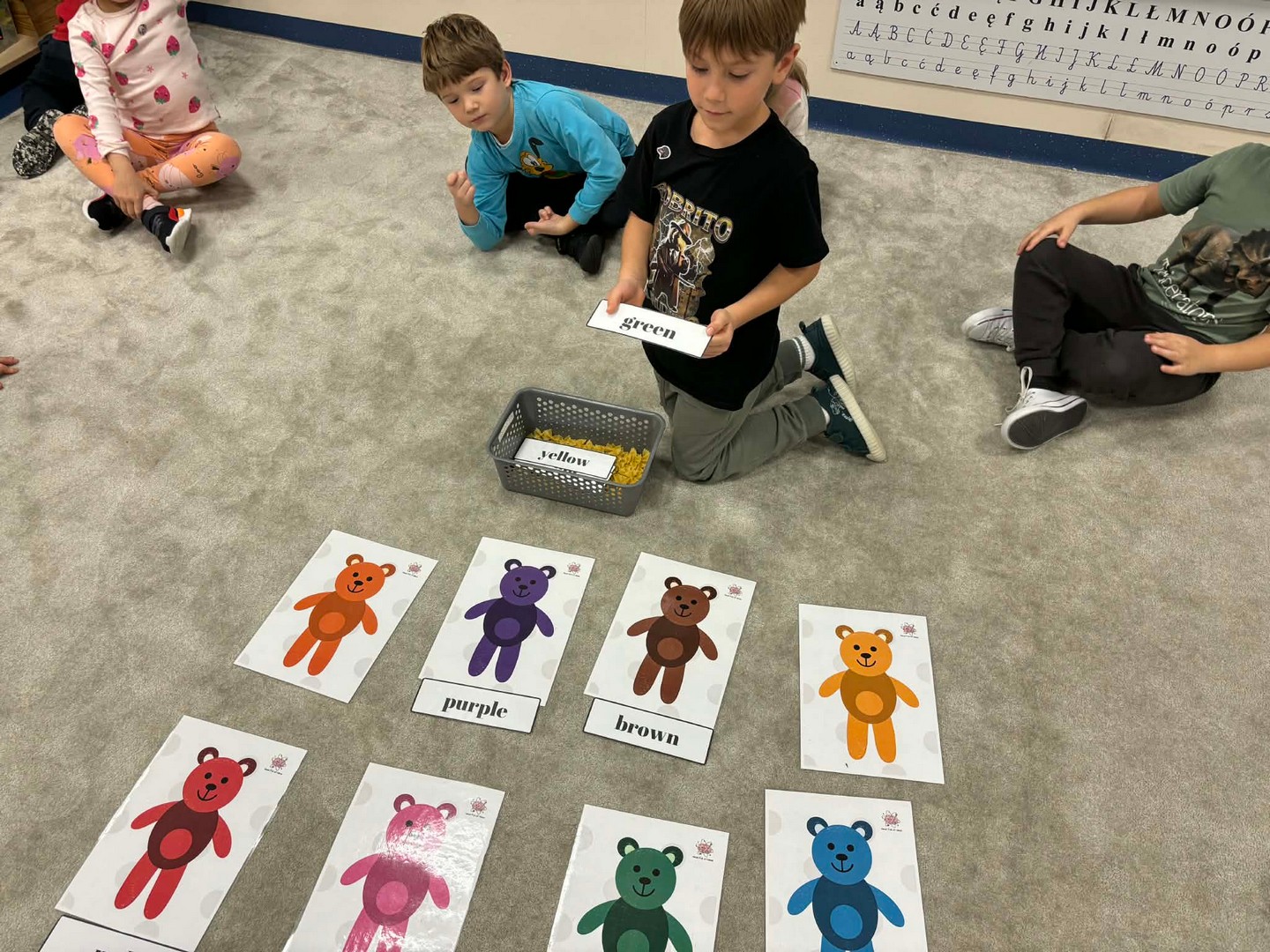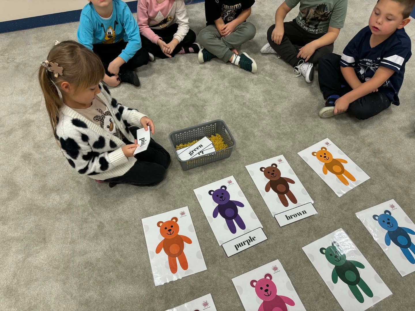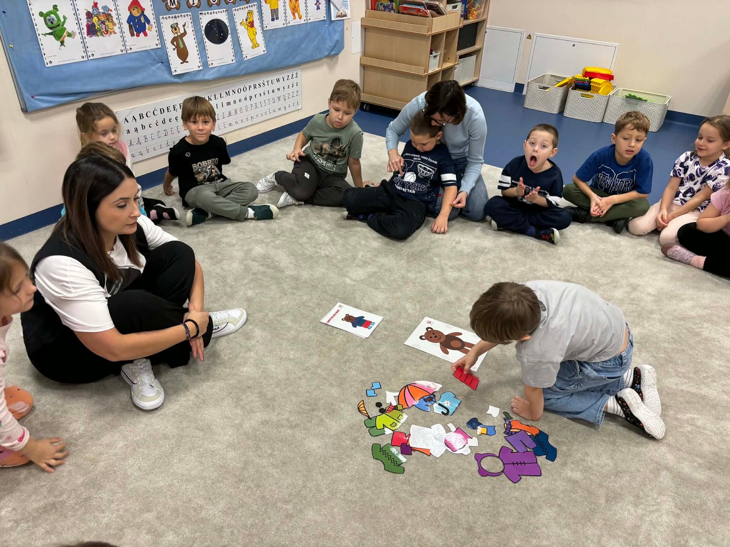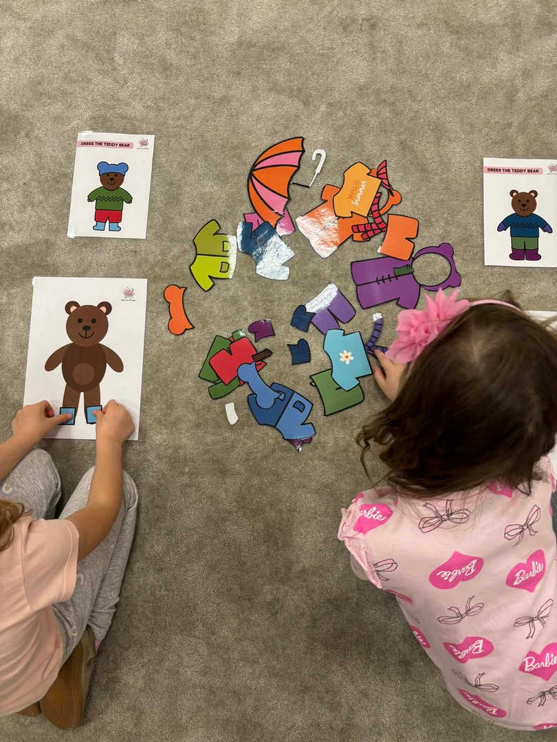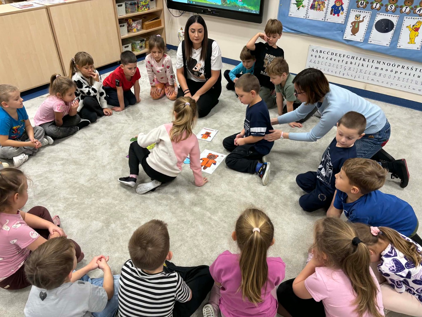 Wraz z przedszkolakami obchodziliśmy Dzień Pluszowego Misia. Dzieci utrwaliły nazwy kolorów oraz dopasowały je do obrazków z misiami. Następna zabawą było dopasowywanie kolorowych mat do misiów. Kolejnym zadaniem dzieci było wybranie odpowiednich ubrań dla pluszowego misia, według wzoru. Dzieci określały również na jaka pogodę pasuje wybrany komplet ubrań. Zadaniem ruchowym, które sprawiło dzieciom wiele radości była zabawa Teddy bear says..... gdzie dzieci miały wykonać określone zadanie. Liczenie baloników w ręku misia uprawniło umiejętności przeliczania w języku angielskim. Na koniec dzieci pokolorowały obrazek z pluszowym misiem według własnego pomysłu.