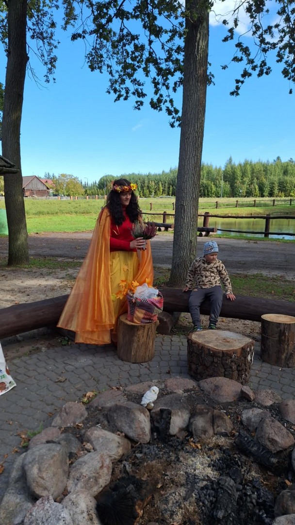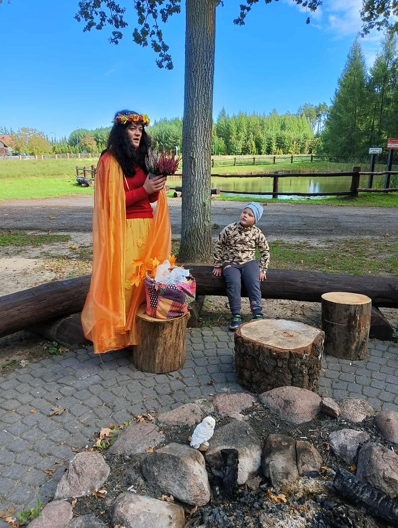 Następnie dzieci wysłuchały pięknej opowieści Pani Jesieni o tym, jak spotkała się ze swoją siostrą Lato, która podarowała jej kolorowe farby do malowania świata barwami jesieni. Siostry zobaczą się dopiero za rok, ponieważ Lato musi teraz odpocząć.