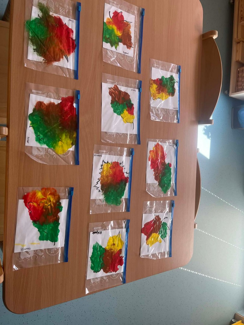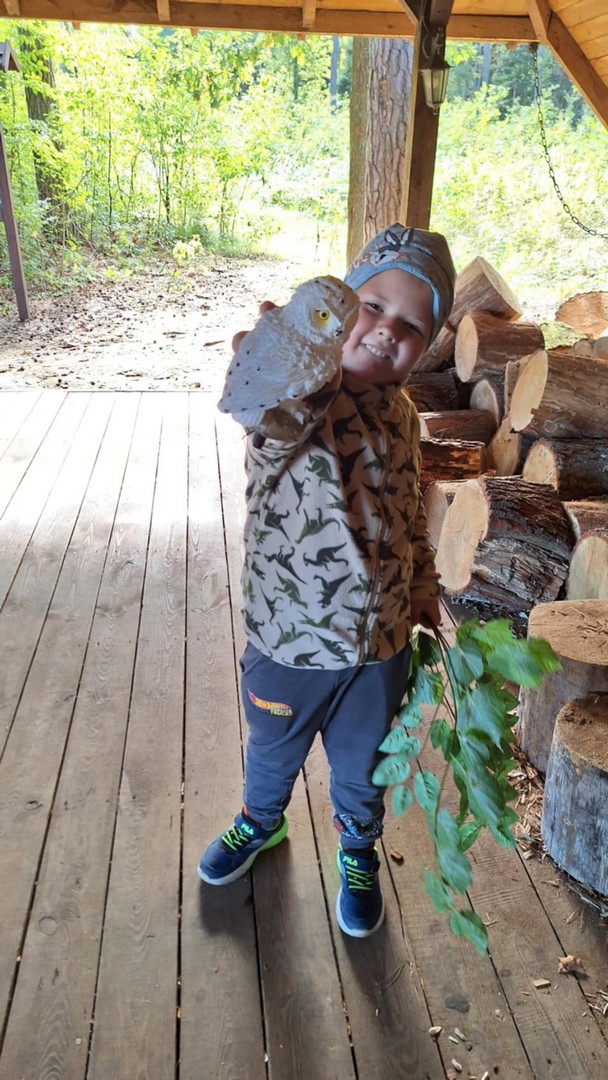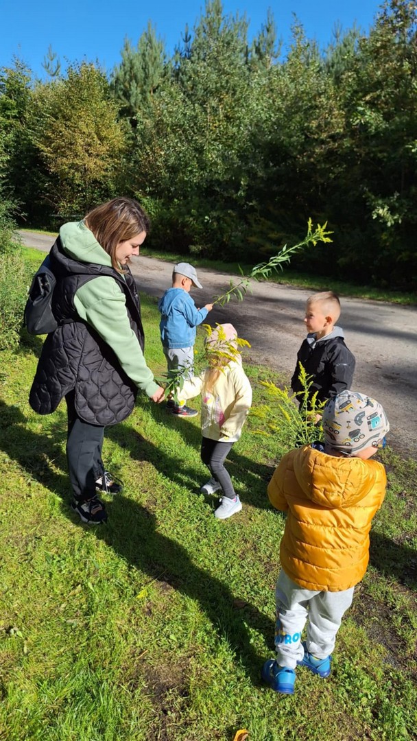 Po wysłuchaniu bajki Smerfy wykonały sensoryczną pracę plastyczną – kolorowe liście pełne faktur, kształtów i jesiennych barw. Gdy zbierało się na powrót, dzieci znalazły niespodziankę: list od Pani Jesieni z propozycjami jesiennych aktywności do wykonania z rodzicami. To był wyjątkowy, pełen wrażeń dzień, który połączył zabawę, ruch, przyrodę i bajkową magię.