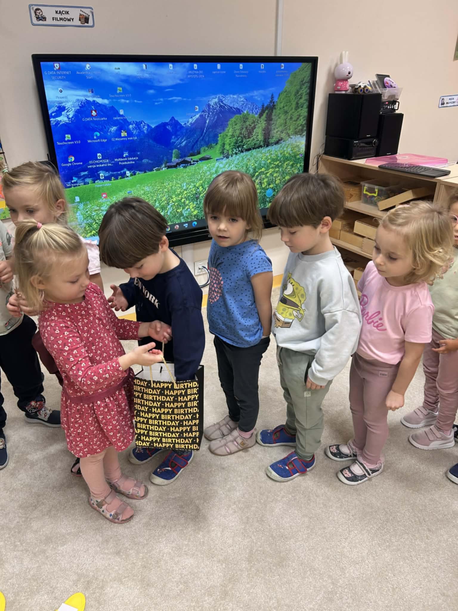 Gdy Hania zakończyła nawlekanie koralików, wszyscy w radosnej atmosferze zaśpiewali Sto lat, co dodało magii temu momentowi. A na koniec, aby uczcić tę wyjątkową okazję, Hania poczęstowała wszystkich cukierkami, co z pewnością sprawiło wszystkim wiele radości. Tego rodzaju obchody nie tylko umacniają więzi przyjaźni między dziećmi, ale także wprowadzają je w wartości tradycji i wspólnego świętowania.