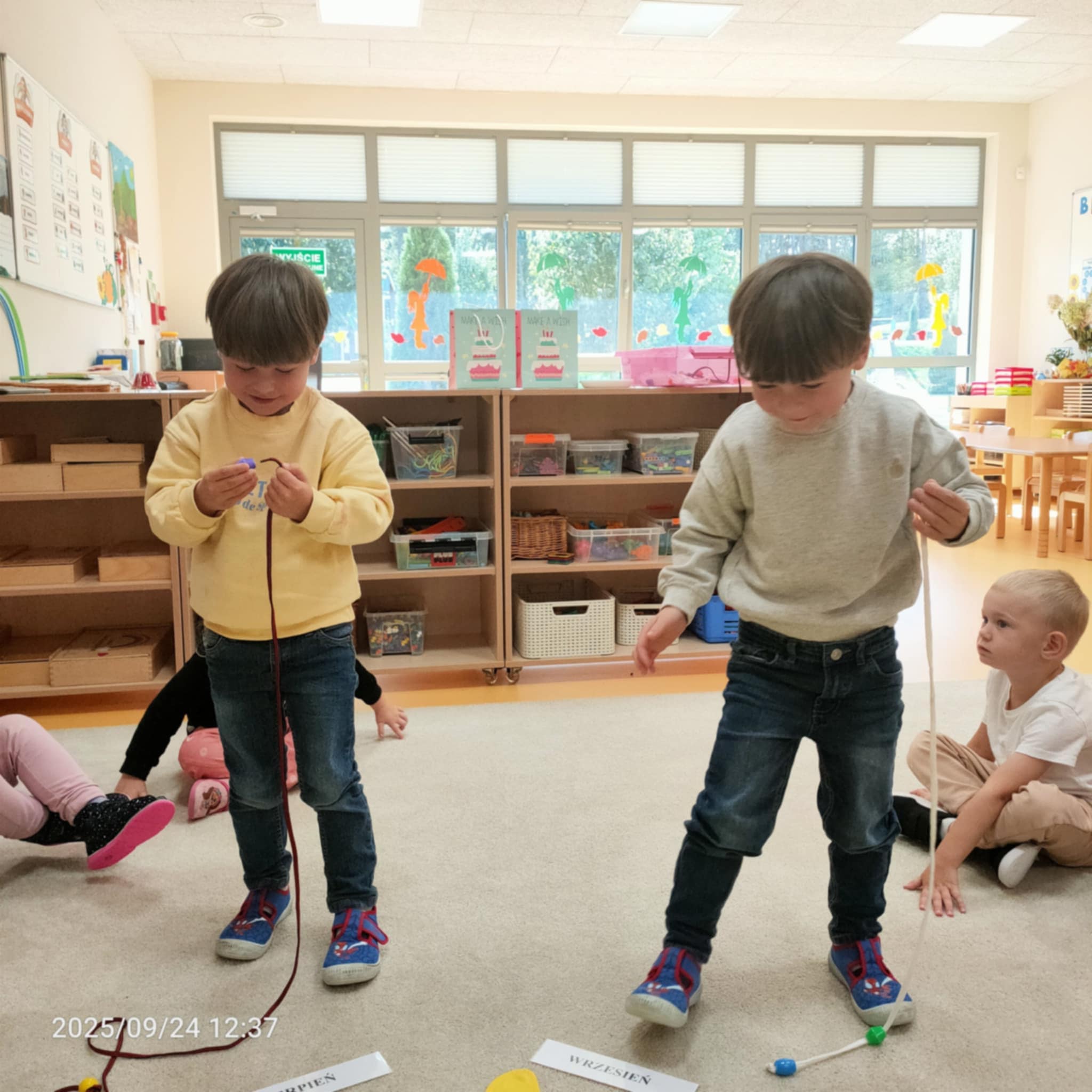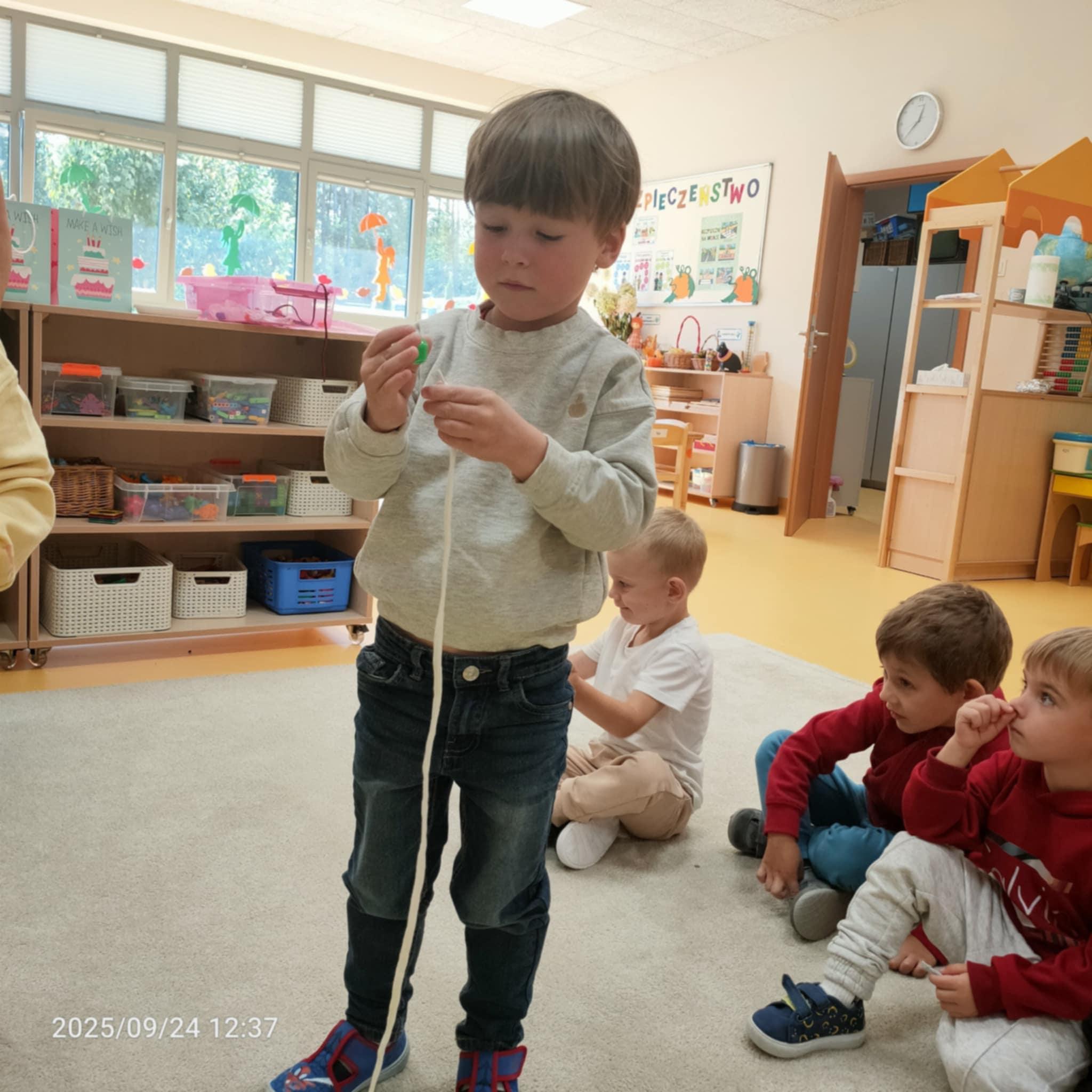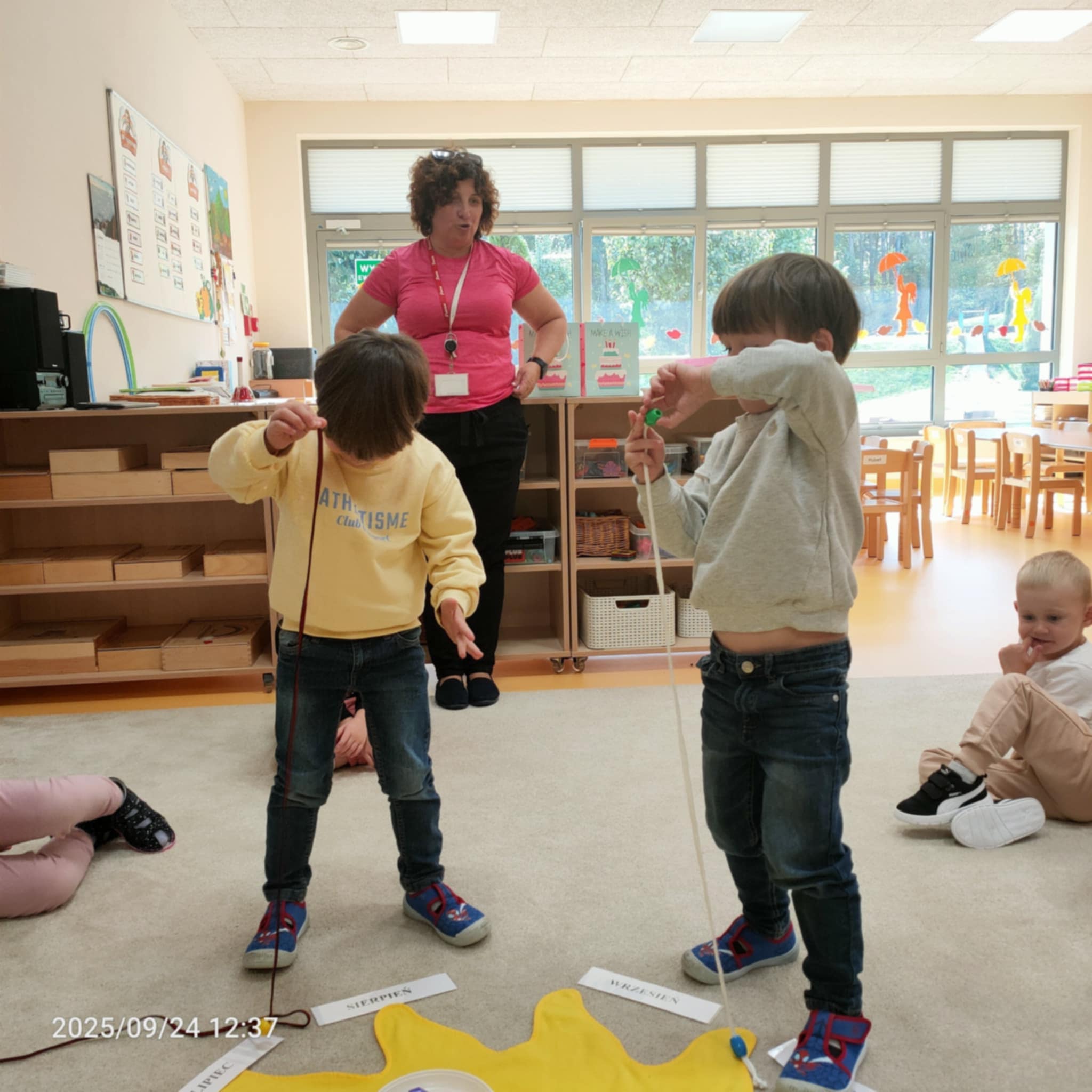 Organizacja urodzin Julka i Ignacego w przedszkolu metodą Montessori to wspaniała okazja do nauki i zabawy. W tym wyjątkowym dniu dzieci miały szansę nie tylko świętować, ale także nauczyć się, jak upływa czas, poprzez symboliczne nawlekanie koralików. Każdy koralik reprezentował jeden rok życia Julka i Ignacego, co wprowadziło maluchy w tematykę dorastania i upływu czasu.