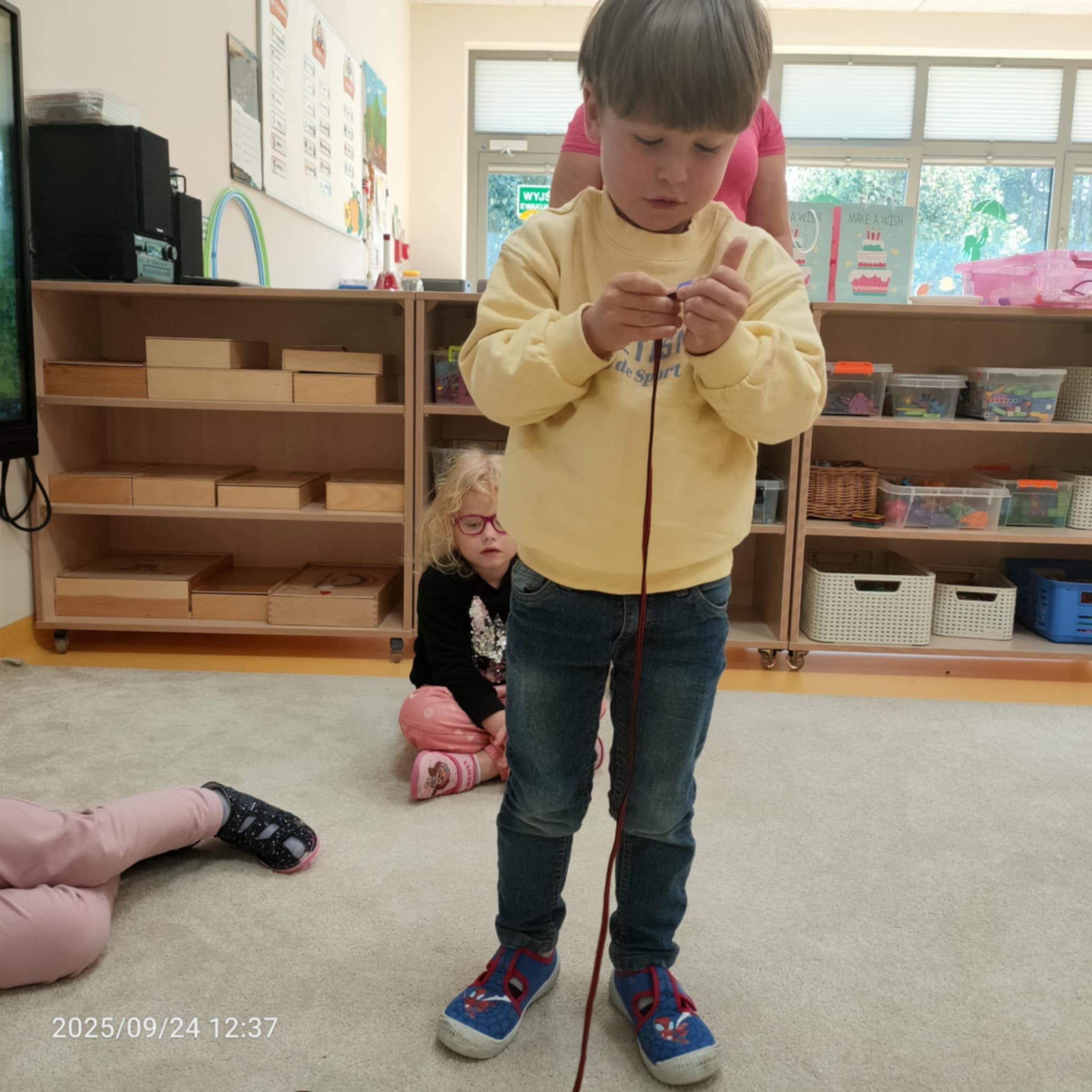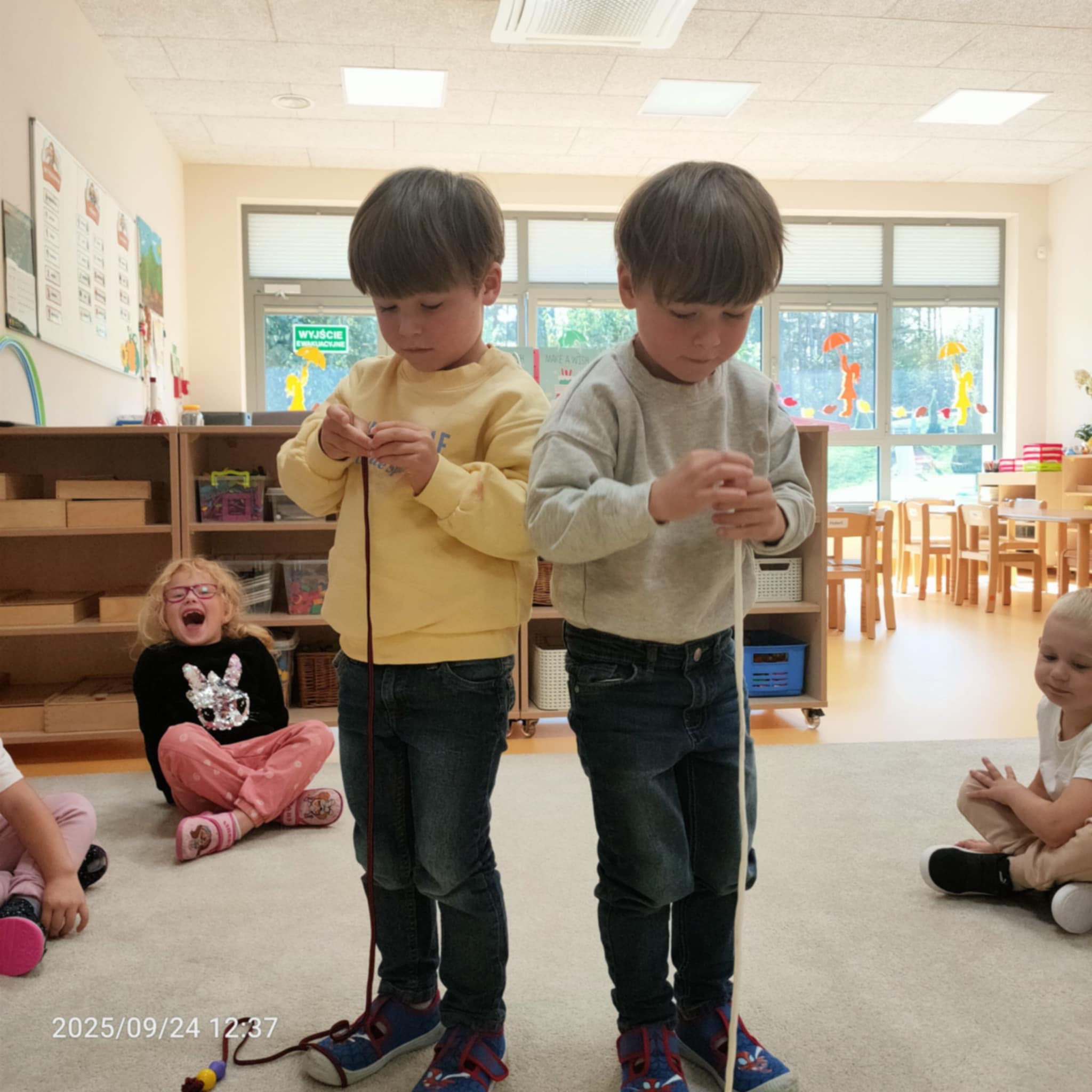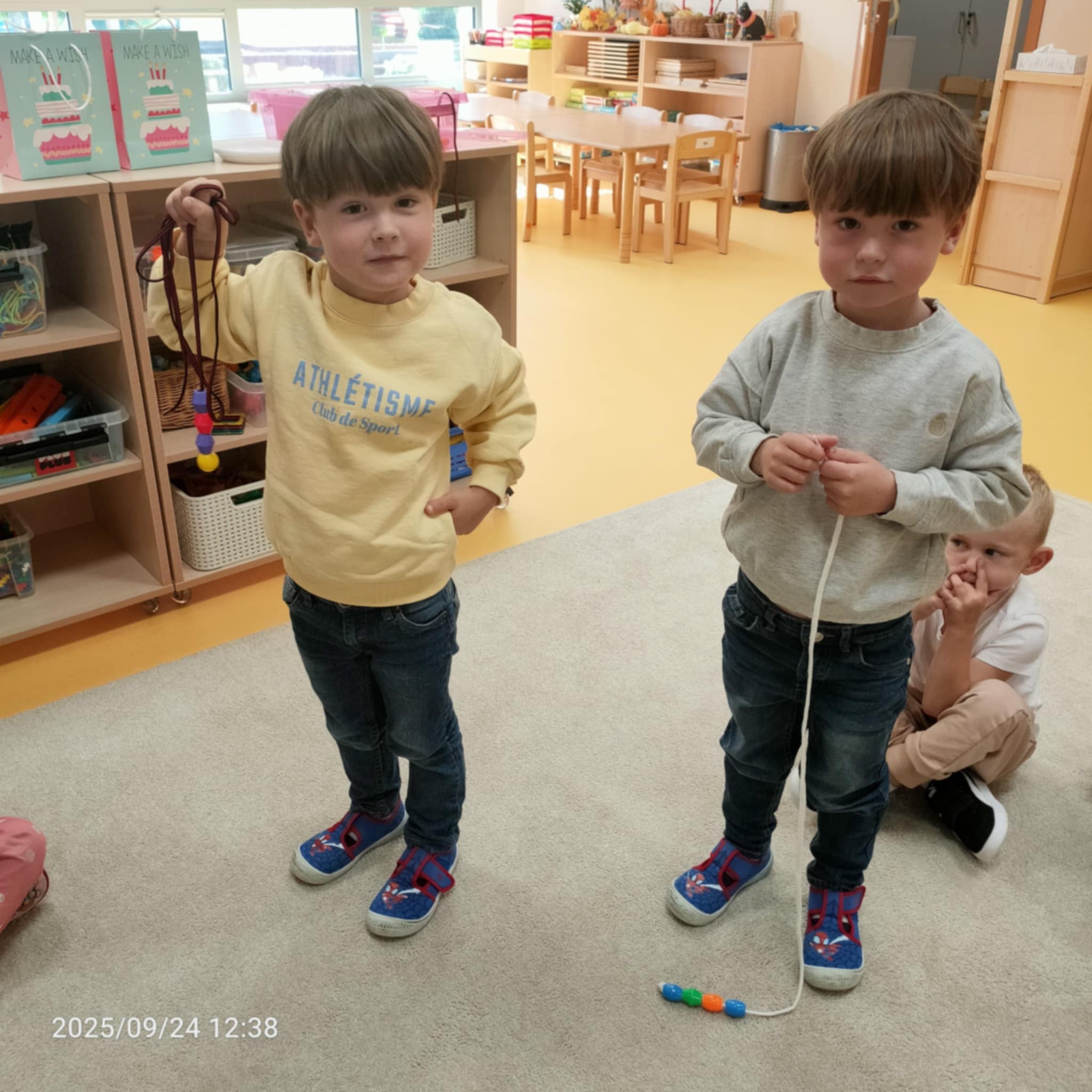 Gdy Ignacy i Julek nawlekali koraliki rozwijali jednocześnie swoje zdolności manualne, uczyli się koncentracji oraz doskonalili koordynację wzrokowo-ruchową.