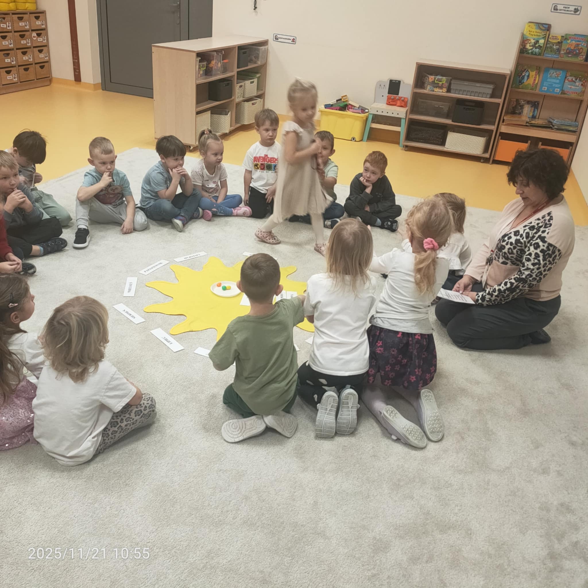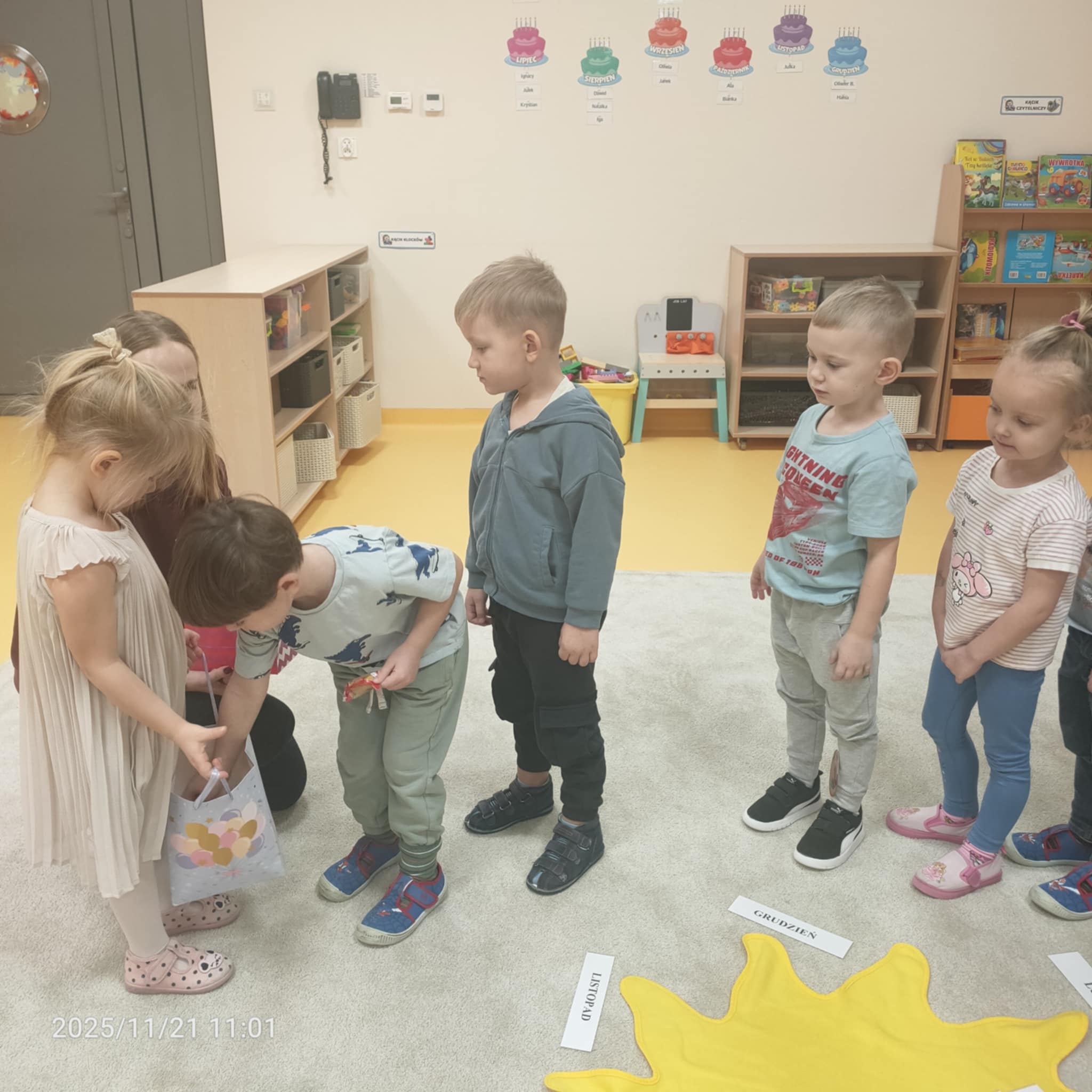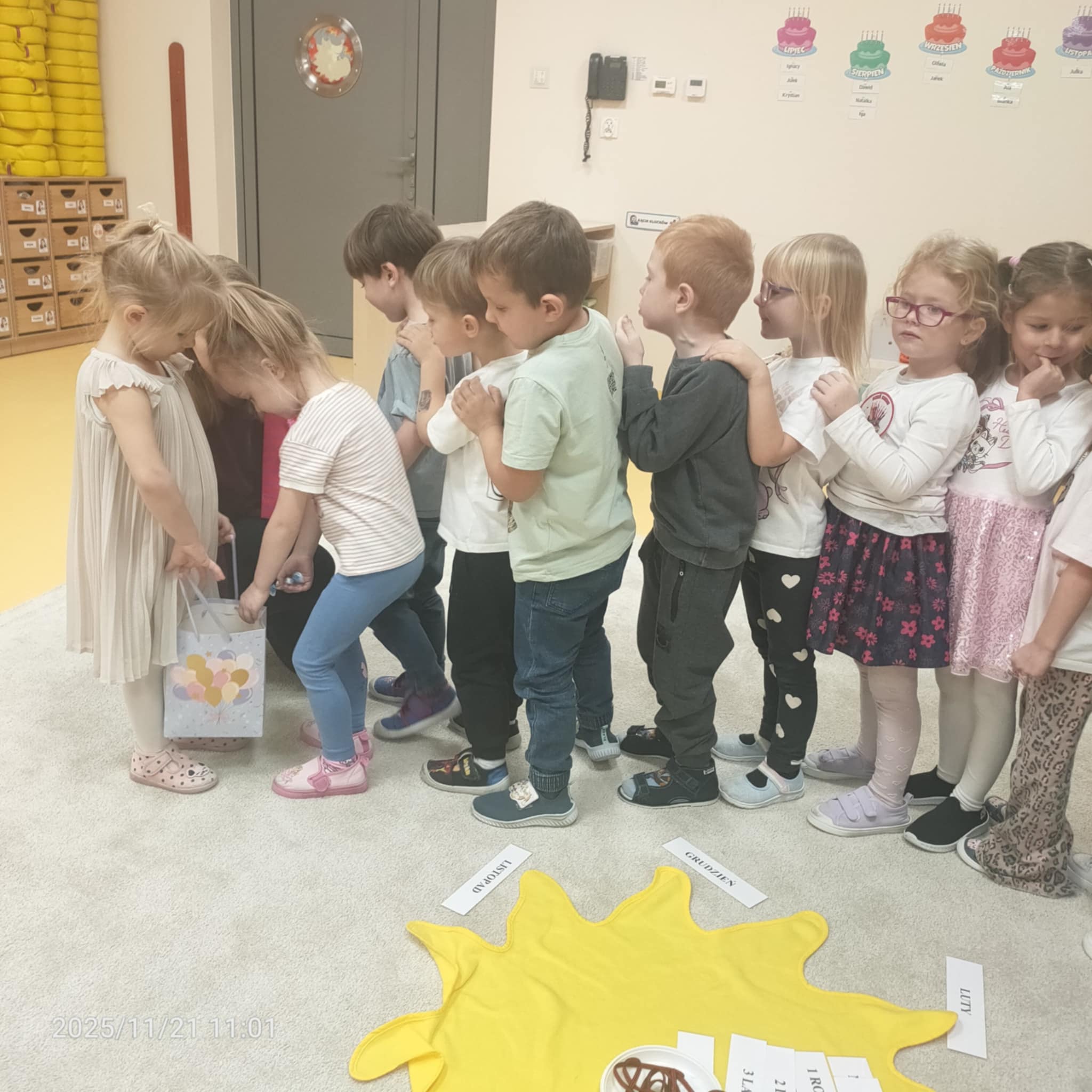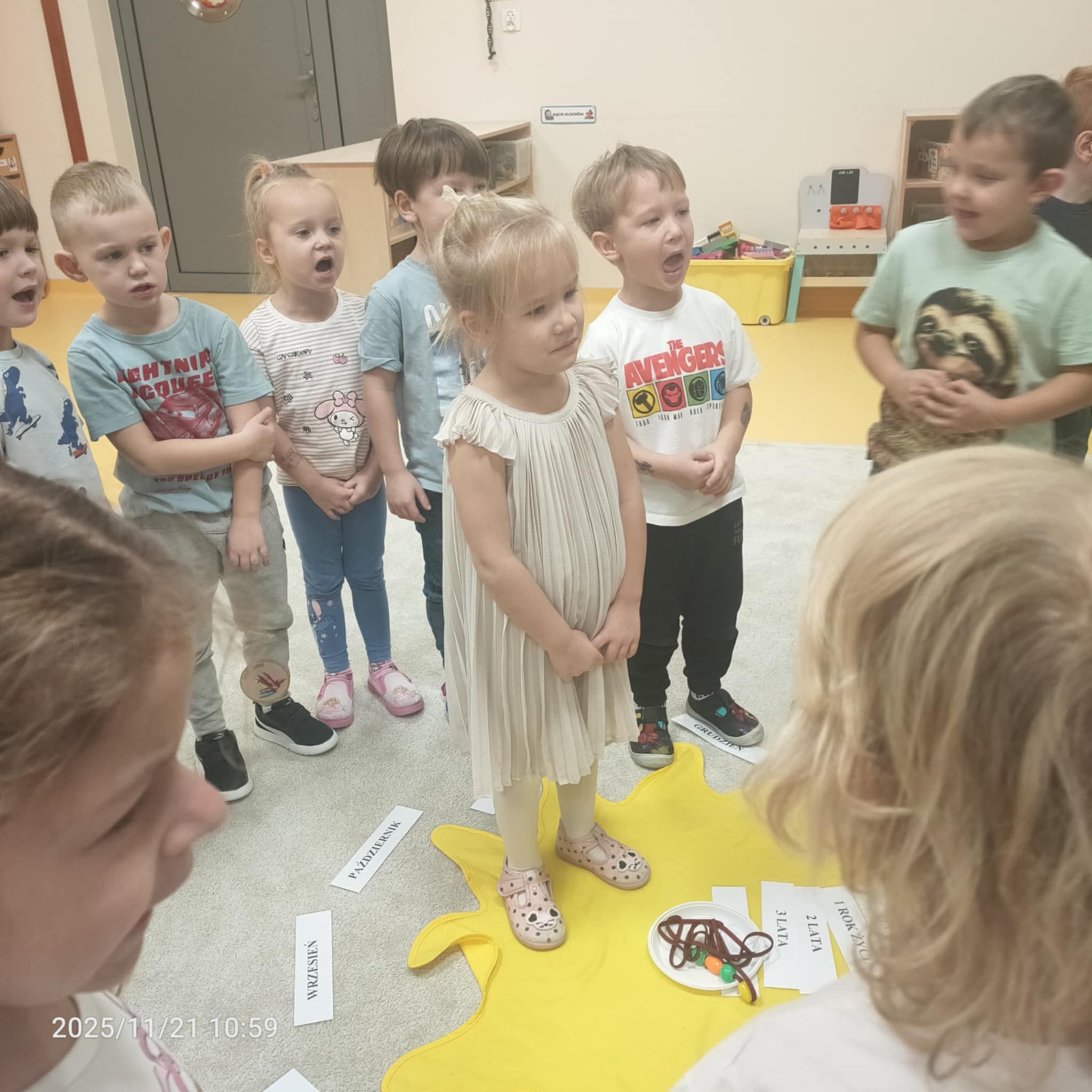 Gdy Julka zakończyła nawlekanie koralików, wszyscy w radosnej atmosferze zaśpiewali Sto lat, co dodało magii temu momentowi. A na koniec, aby uczcić tę wyjątkową okazję, JUlka poczęstowała wszystkich cukierkami, co z pewnością sprawiło wszystkim wiele radości. Tego rodzaju obchody nie tylko umacniają więzi przyjaźni między dziećmi, ale także wprowadzają je w wartości tradycji i wspólnego świętowania.