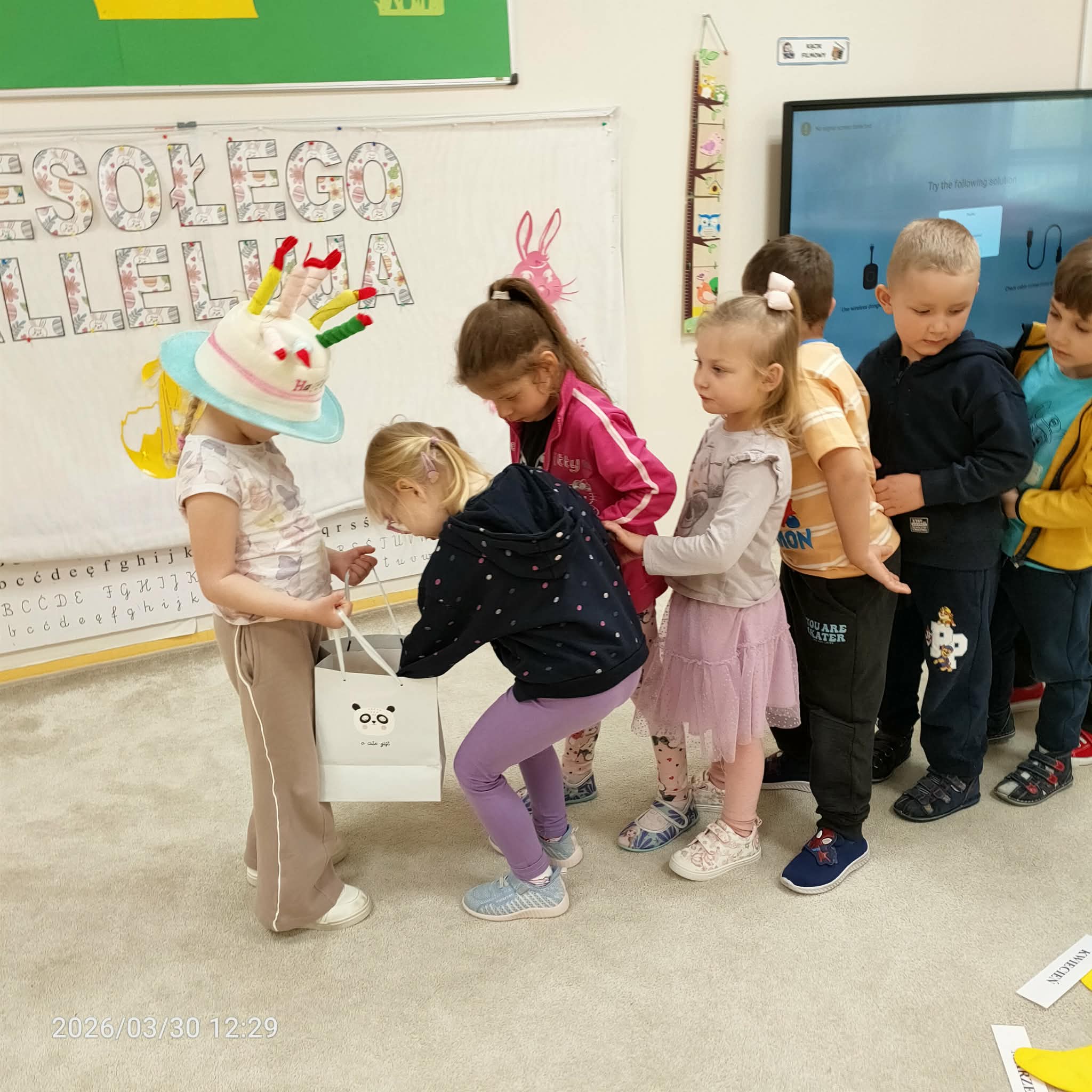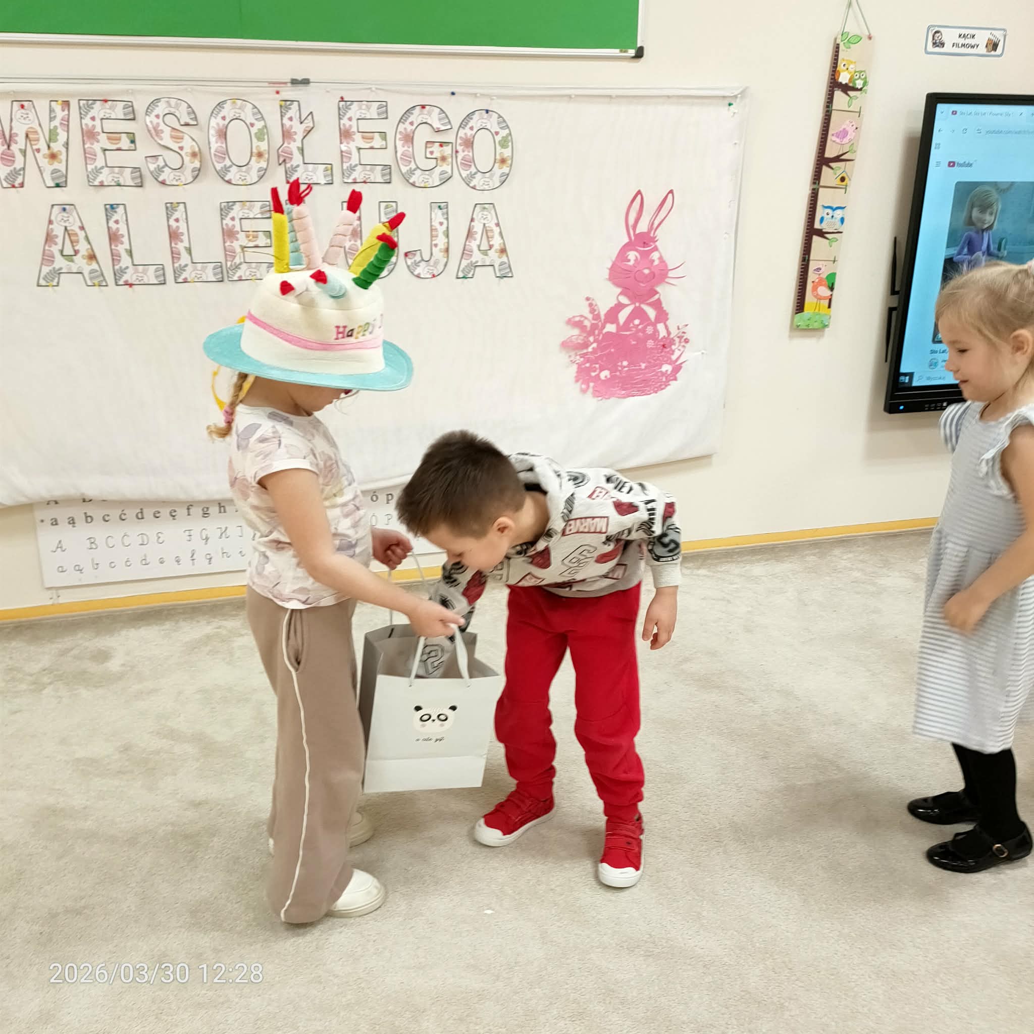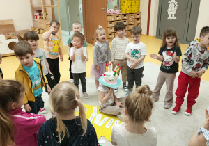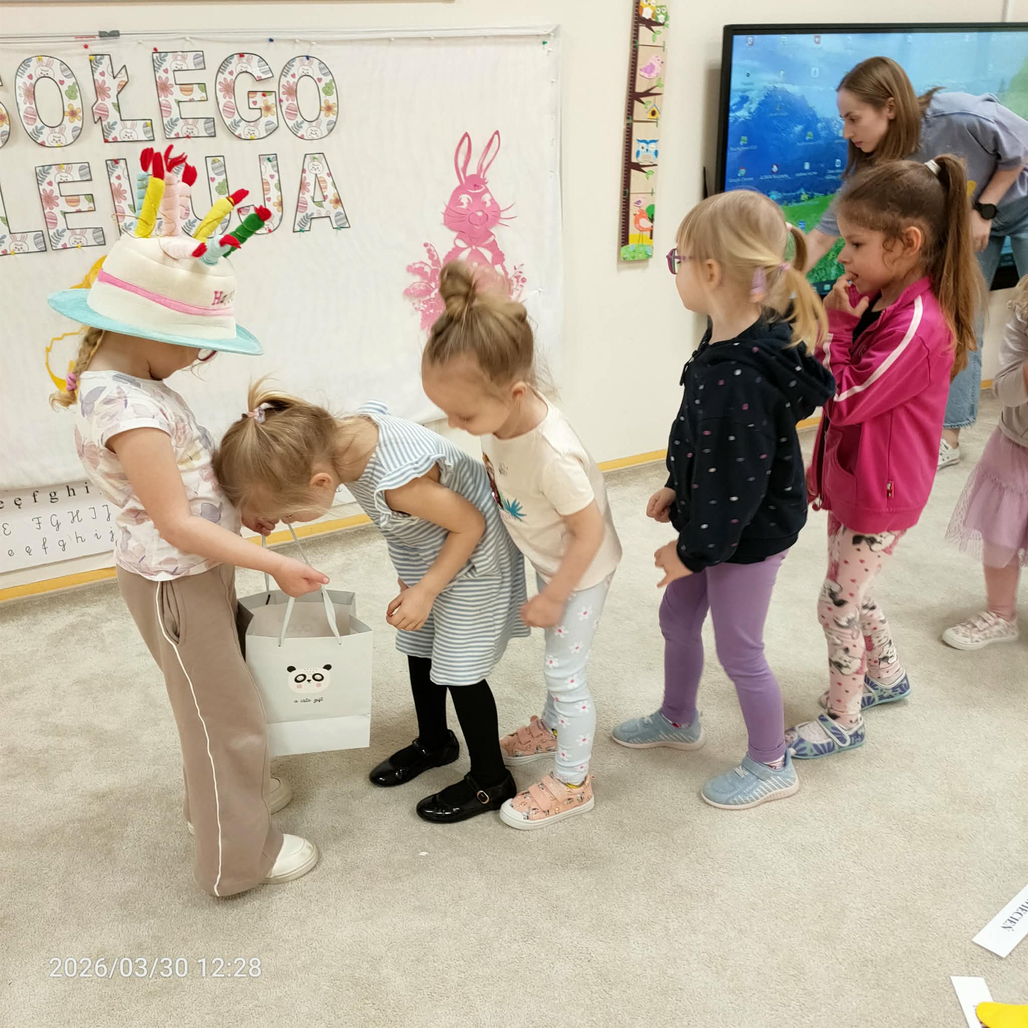 Gdy Lenka zakończyła nawlekanie koralików, wszyscy w radosnej atmosferze zaśpiewali Sto lat, co dodało magii temu momentowi. A na koniec, aby uczcić tę wyjątkową okazję, Lena poczęstowała wszystkich cukierkami, co z pewnością sprawiło wszystkim wiele radości. Tego rodzaju obchody nie tylko umacniają więzi przyjaźni między dziećmi, ale także wprowadzają je w wartości tradycji i wspólnego świętowania.