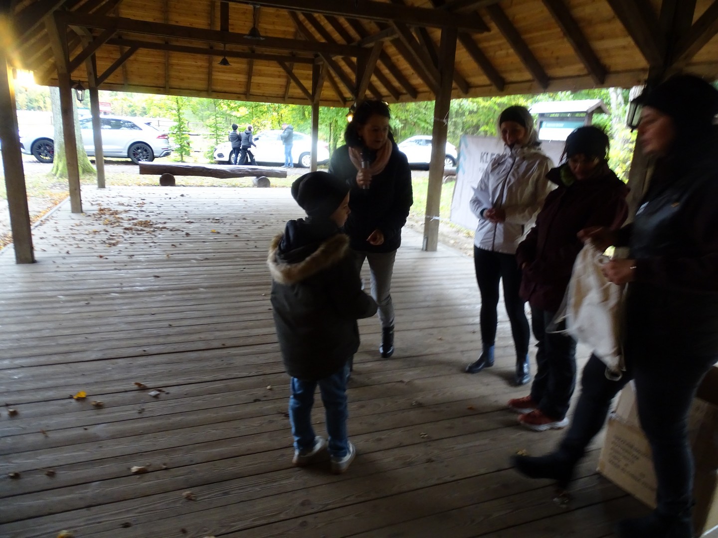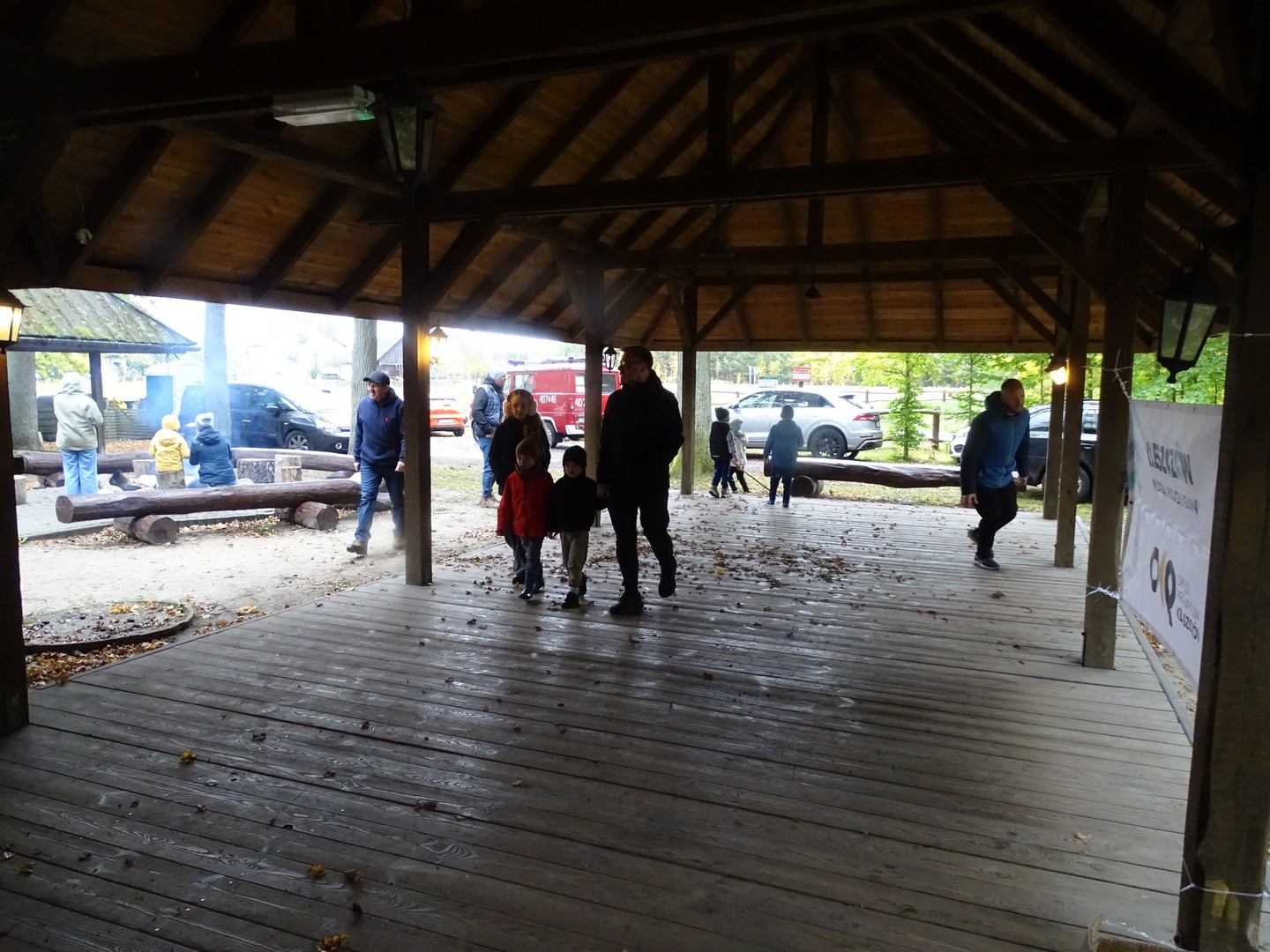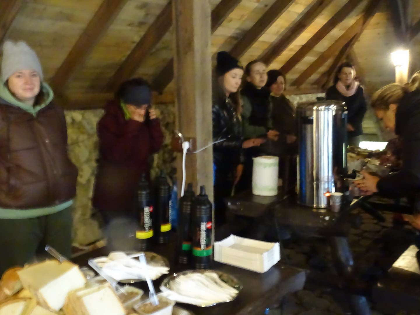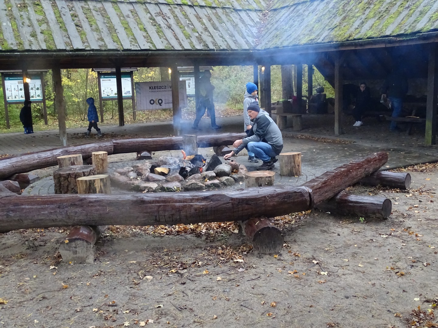 Po akcji sprzątania lasu zaproszono wszystkich gości do altany ekologicznej, gdzie można było posilić się kiełbaskami, kaszanką, wypić gorącą kawę, herbatą i zjeść ciasto.
