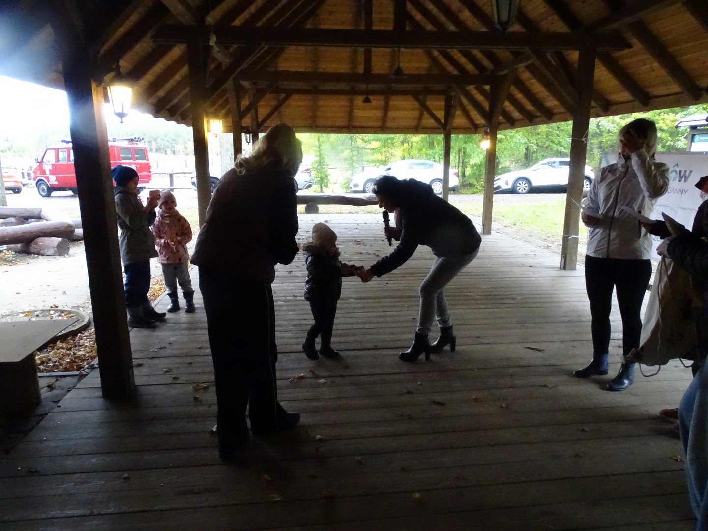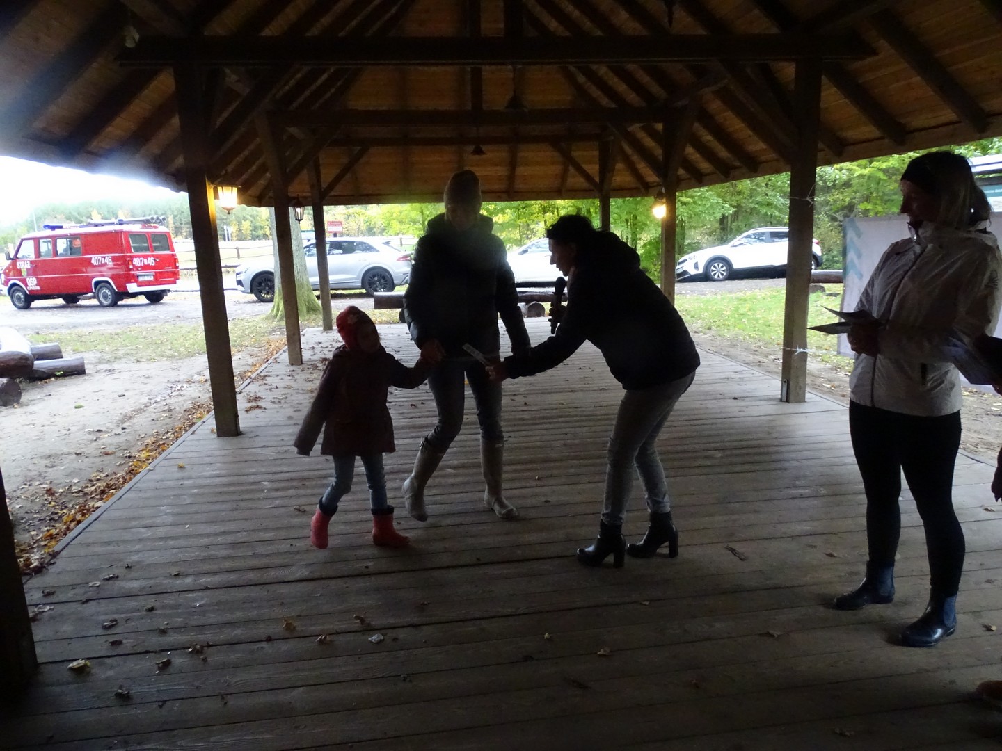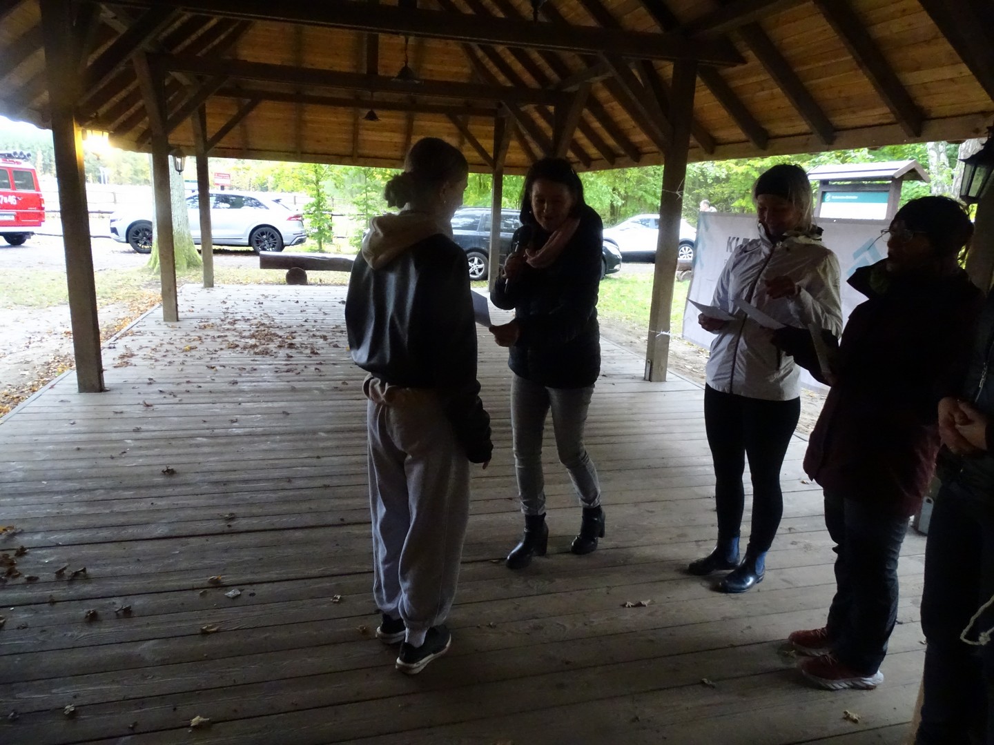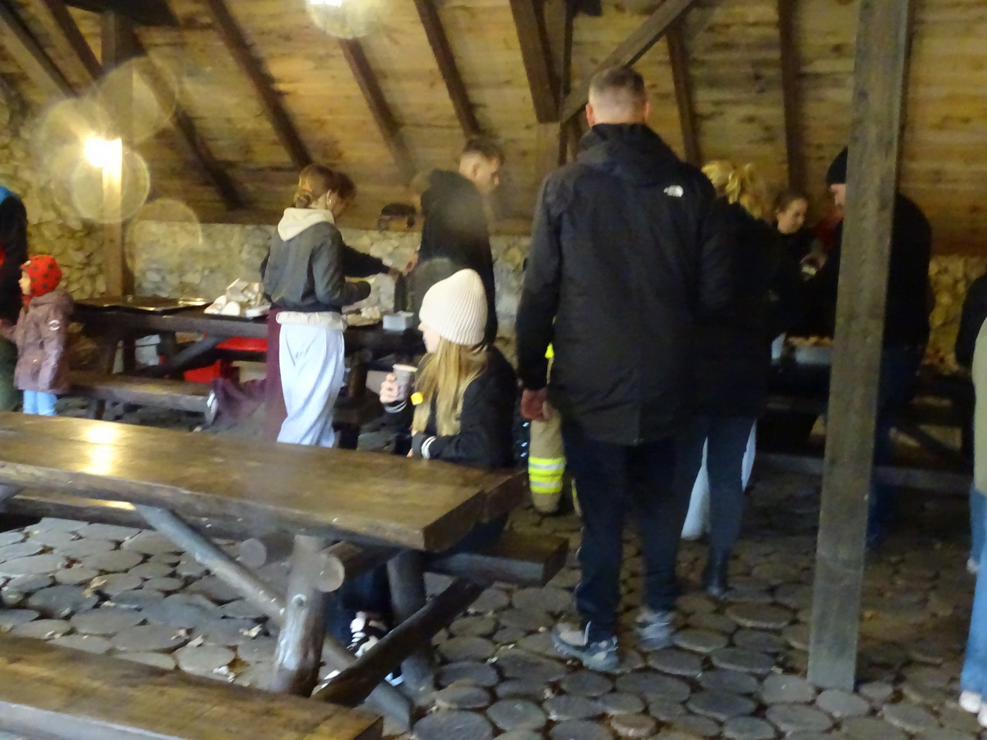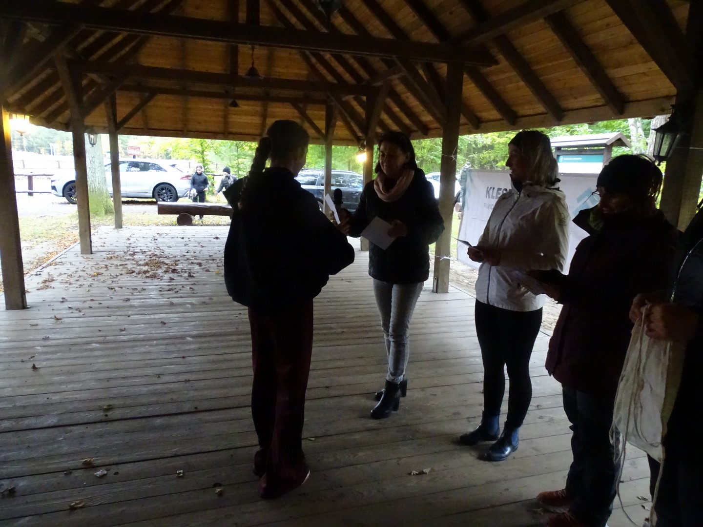 Po akcji sprzątania lasu zaproszono wszystkich gości do altany ekologicznej, gdzie można było posilić się kiełbaskami, kaszanką, wypić gorącą kawę, herbatą i zjeść ciasto.