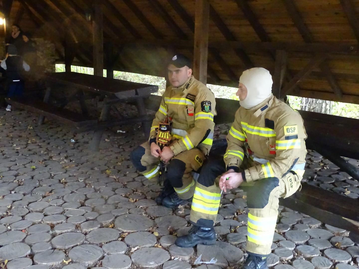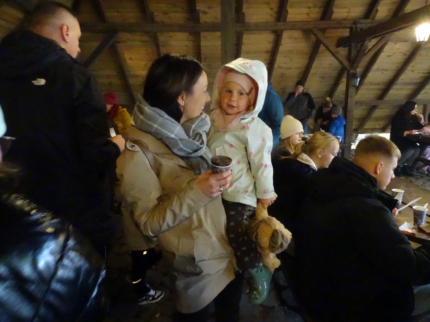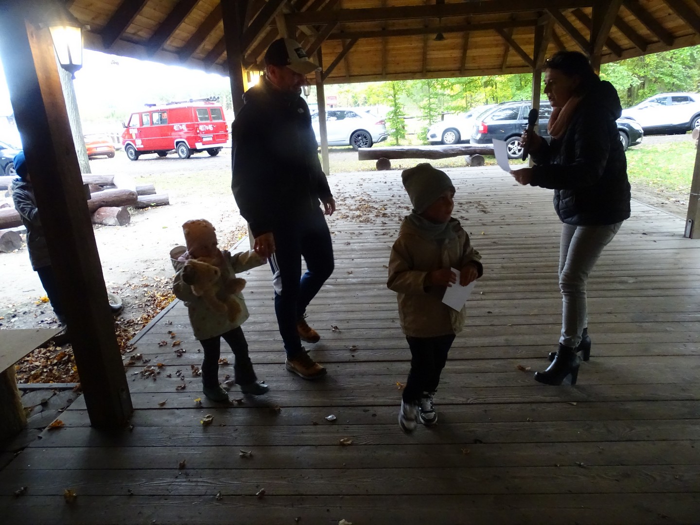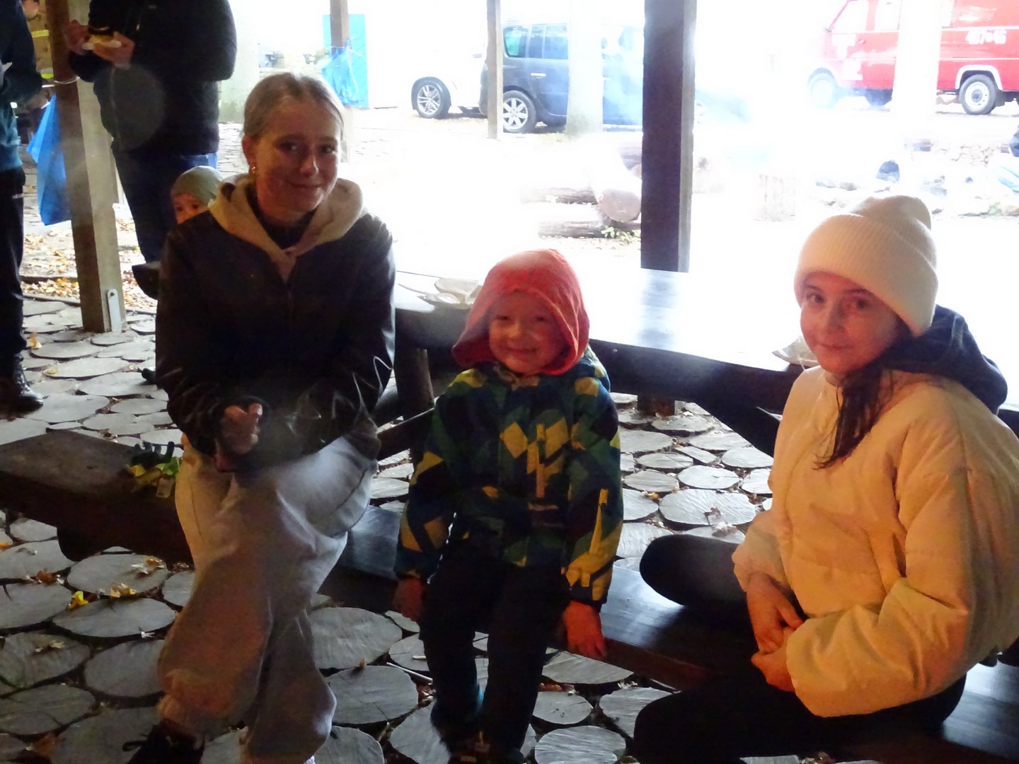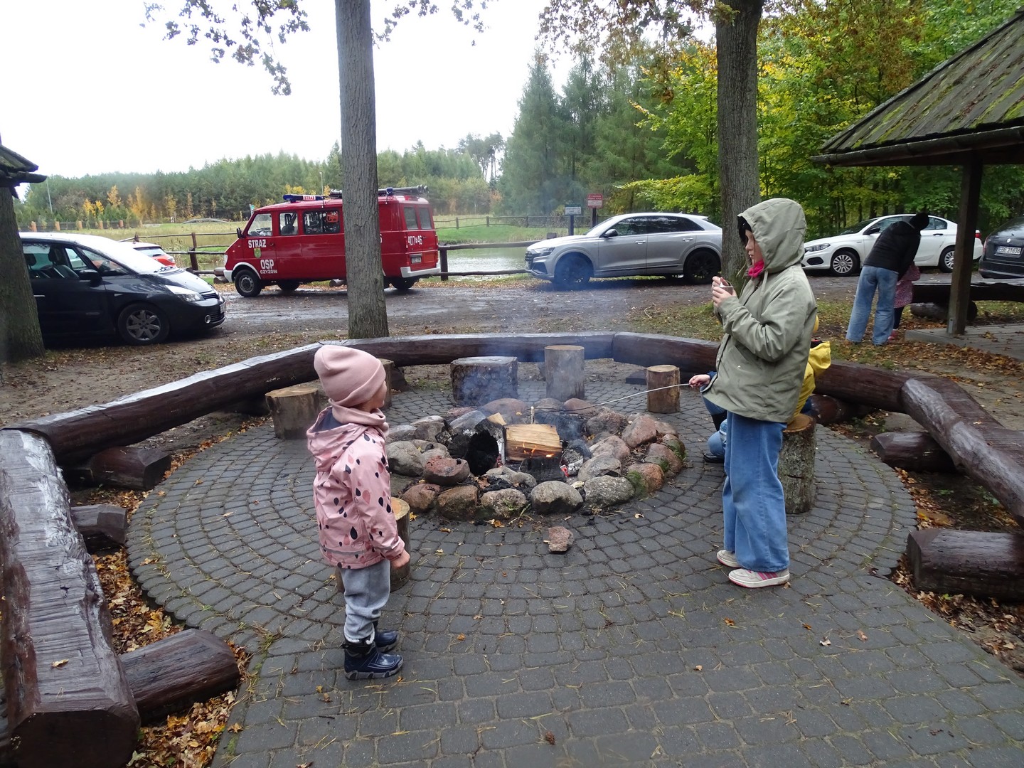 Po akcji sprzątania lasu zaproszono wszystkich gości do altany ekologicznej, gdzie można było posilić się kiełbaskami, kaszanką, wypić gorącą kawę, herbatą i zjeść ciasto.
