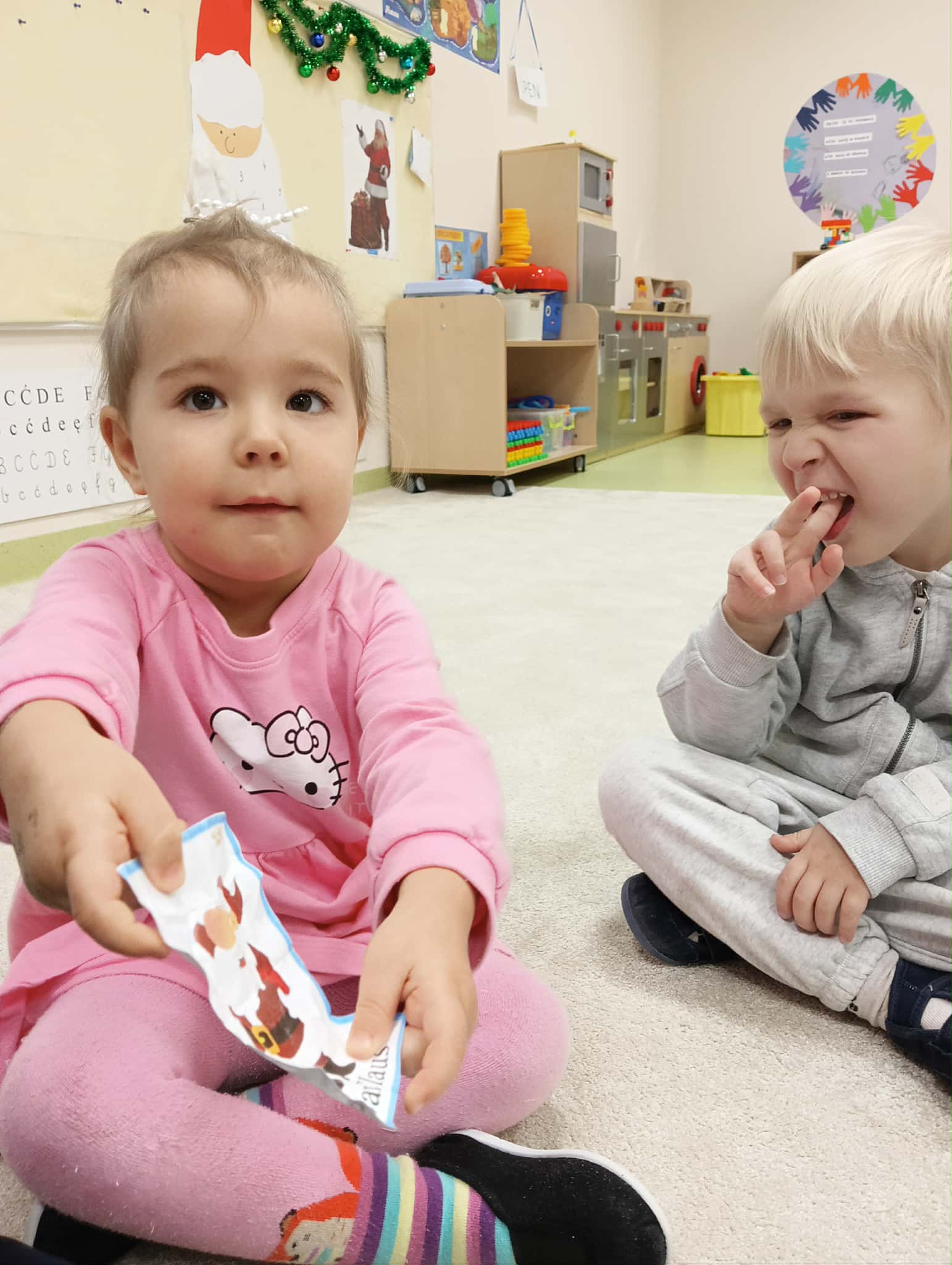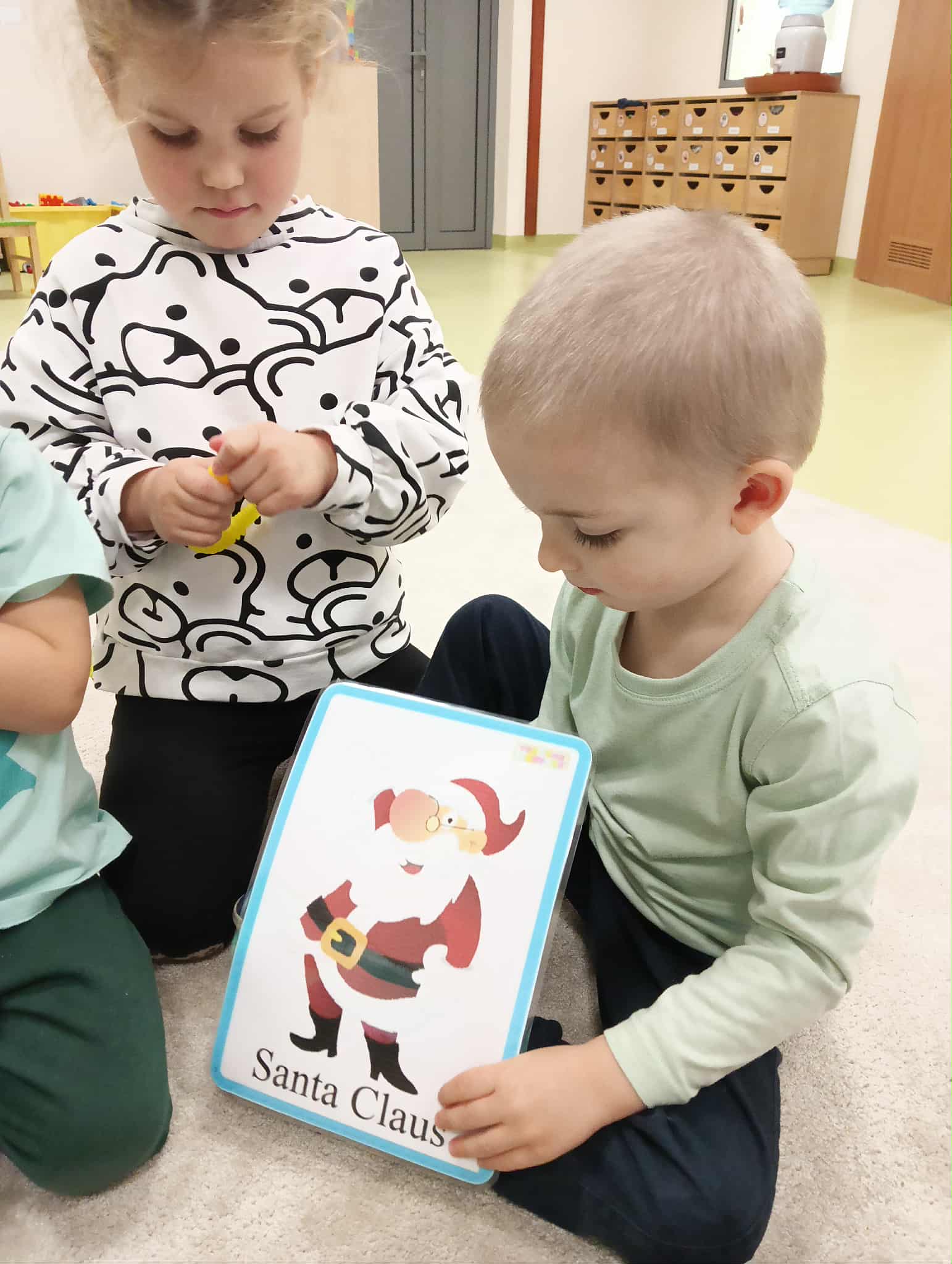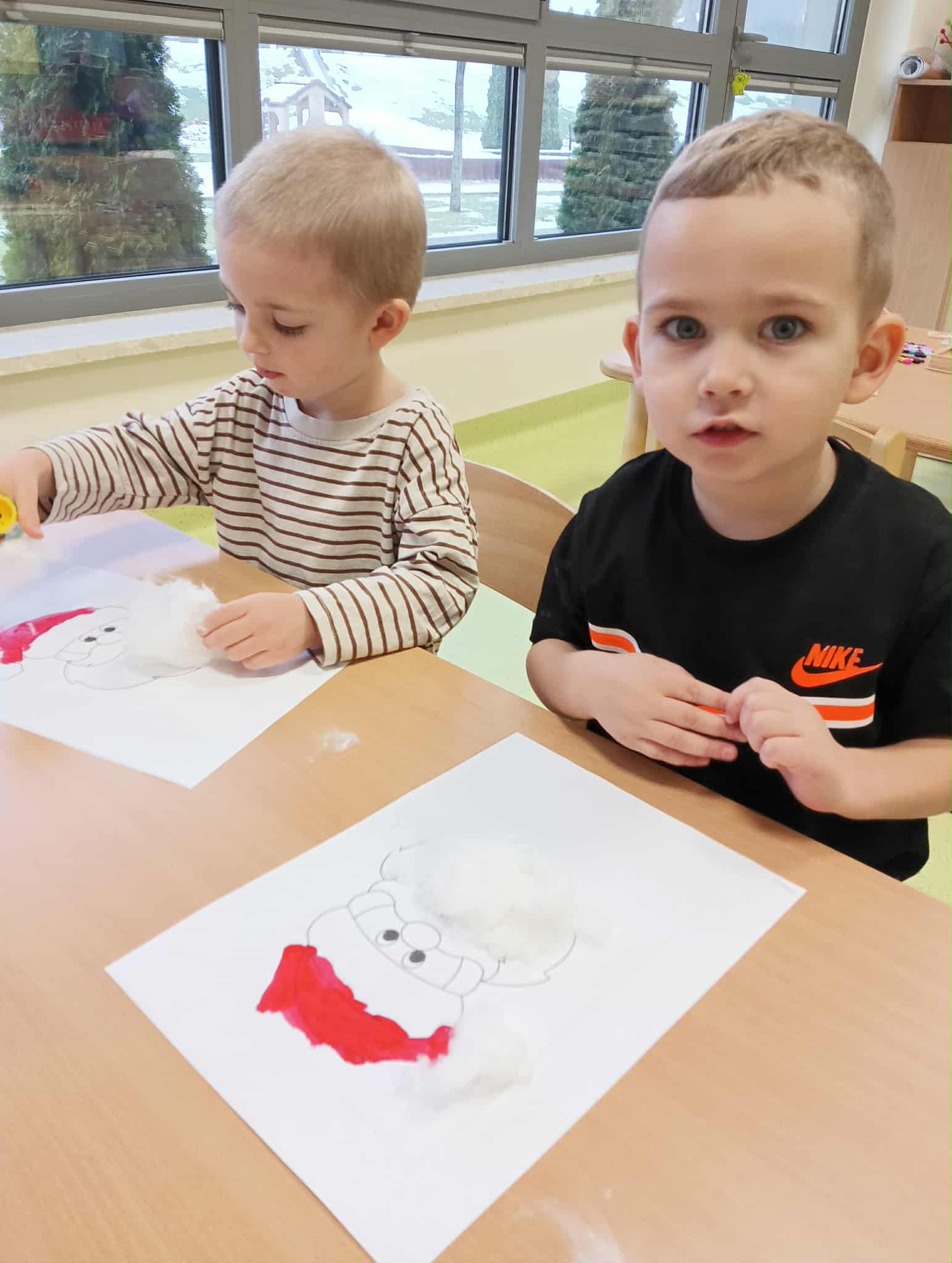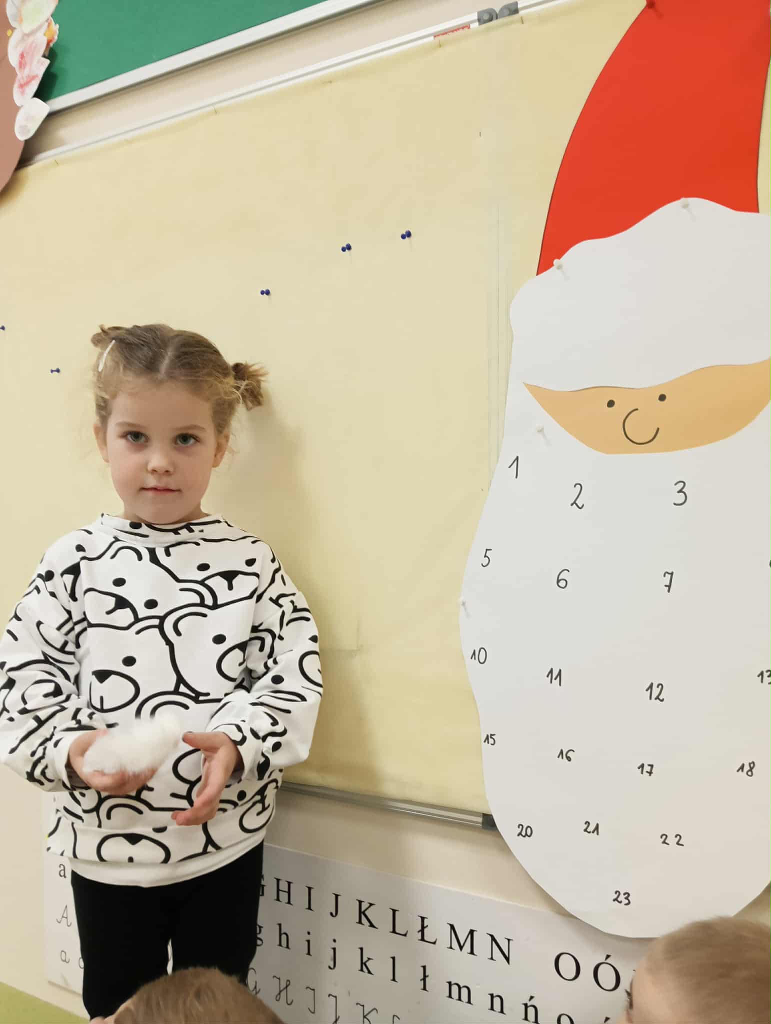 W naszym przedszkolu rozpoczęliśmy radosne odliczanie do Świąt Bożego Narodzenia za pomocą wyjątkowego kalendarza adwentowego – brody Świętego Mikołaja, która każdego dnia staje się coraz dłuższa. Dzieci z entuzjazmem dodają kolejne elementy, obserwując, jak Mikołajowa broda będzie rosła aż do Wigilii. Grudzień wypełniać będą nam także świąteczne aktywności: czytanie zimowych opowiadań, wspólne zabawy oraz codzienne śpiewanie piosenek, które wprowadzają nas w magiczny nastrój. Towarzyszą nam ulubione postacie – Mikołaj, renifery, bałwanki i elfy – dzięki którym atmosfera w sali staje się jeszcze bardziej wyjątkowa. Święta coraz bliżej, a my cieszymy się, że możemy przeżywać ten czas wspólnie, wypełniając go radością i kreatywną zabawą.