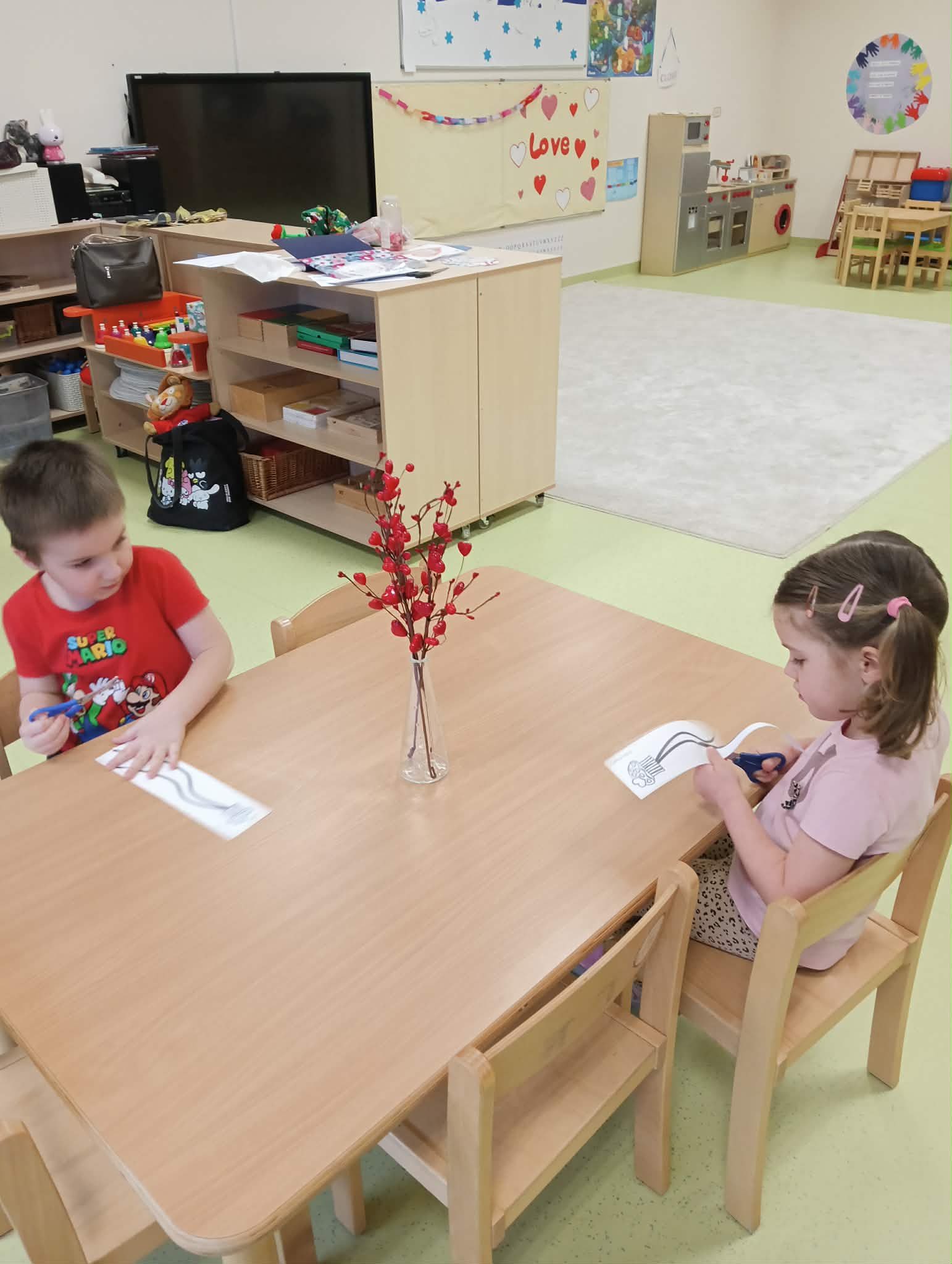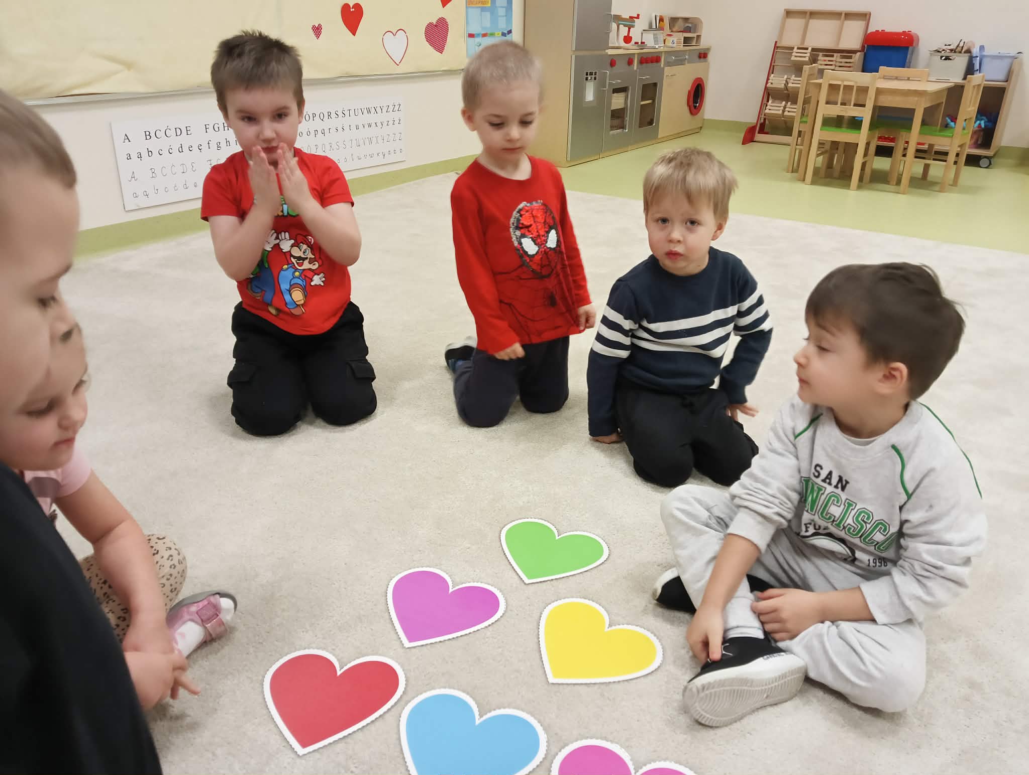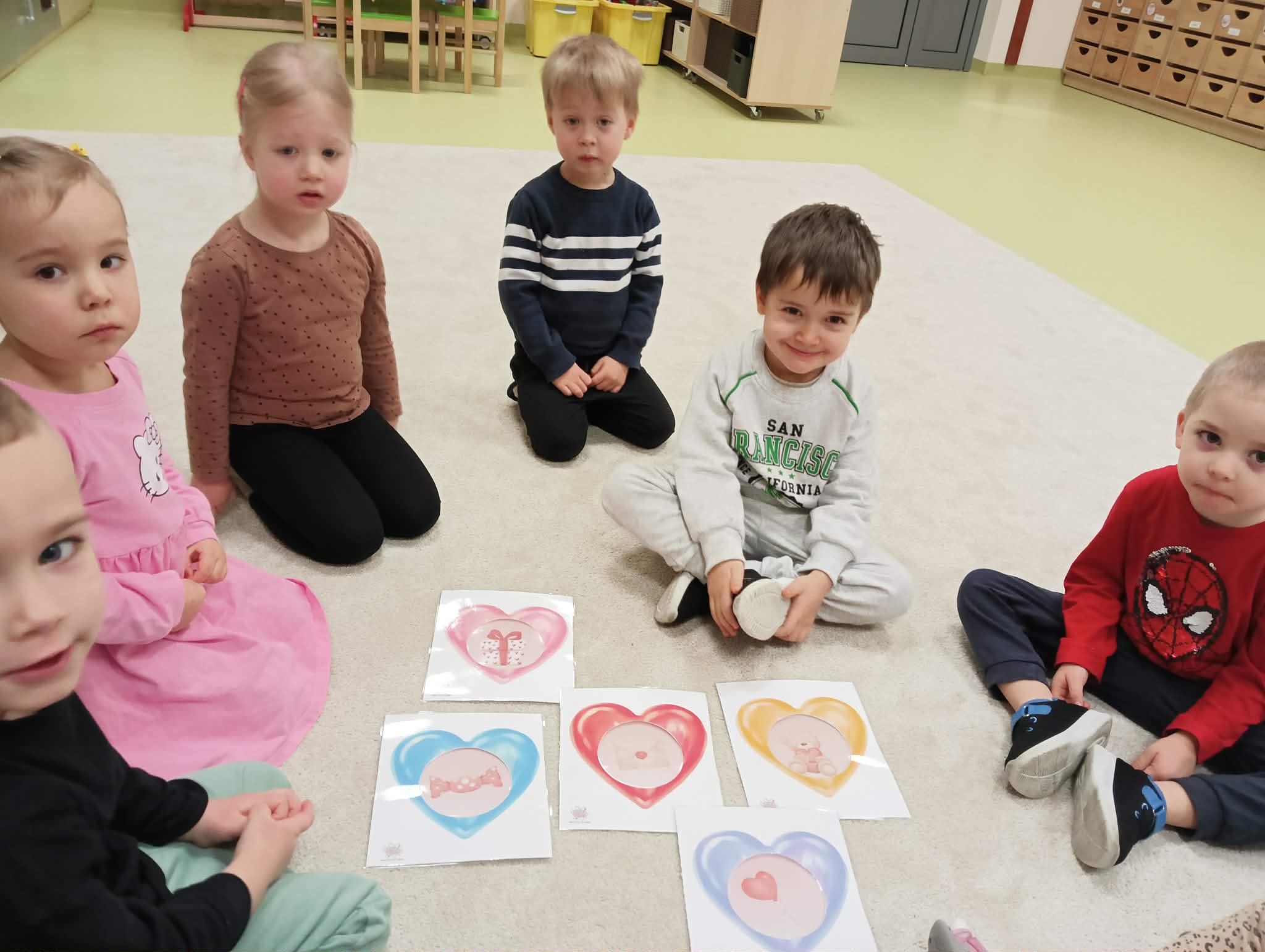 14 lutego świętowaliśmy w naszym przedszkolu radosne i pełne ciepła Walentynki. Dzieci z wielkim zaangażowaniem uczestniczyły w przygotowanych aktywnościach. Przedszkolaki brały udział w zabawie polegającej na poszukiwaniu w sali przedmiotów w kolorach walentynkowych serduszek. Z ogromnym entuzjazmem odnajdywały ukryte elementy i wspólnie nazywały ich kolory. Dużo radości sprawiła także zabawa w „magiczne okienka” – dzieci wskazywały, co się w nich znajduje, ćwicząc spostrzegawczość oraz wzbogacając słownictwo. Podczas zajęć plastycznych maluchy rozwijały sprawność manualną i uczyły się bezpiecznego posługiwania nożyczkami, przygotowując własne walentynkowe prace. Poznawały również nowe słowa związane z tym świętem. Nie zabrakło także zabaw ruchowych. W kole, przy dźwiękach radosnej muzyki, dzieci podawały sobie różę, ucząc się współpracy i czekania na swoją kolej. To był dzień pełen uśmiechu, serdeczności i wspólnej zabawy. Walentynki stały się doskonałą okazją do rozmów o przyjaźni, okazywaniu sympatii oraz budowaniu pozytywnych relacji w naszej grupie.
