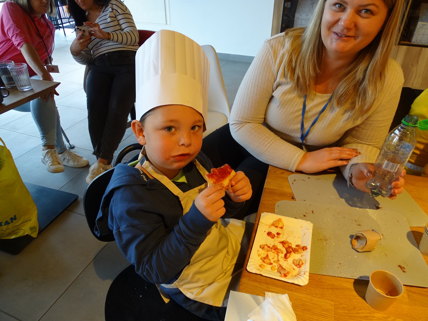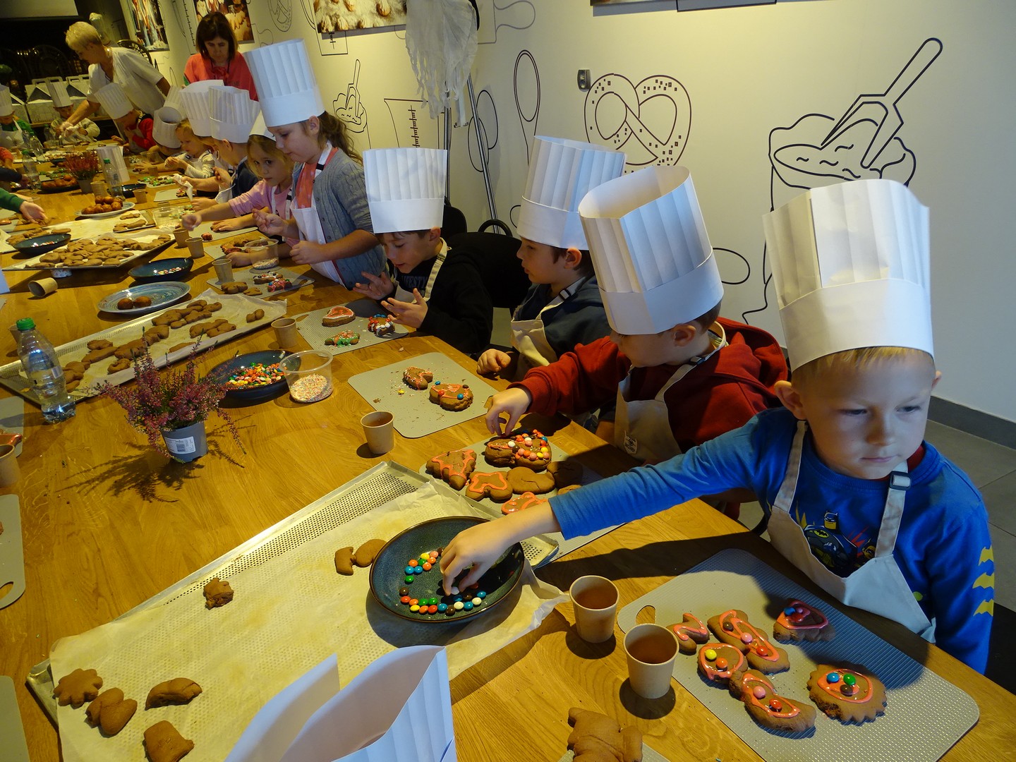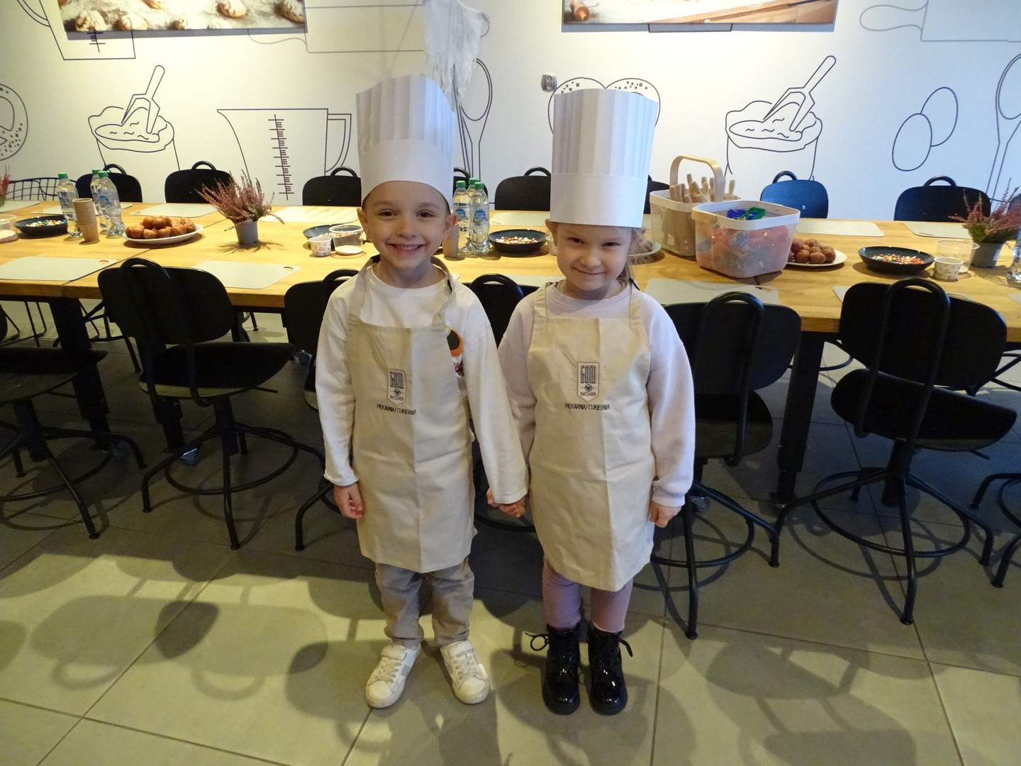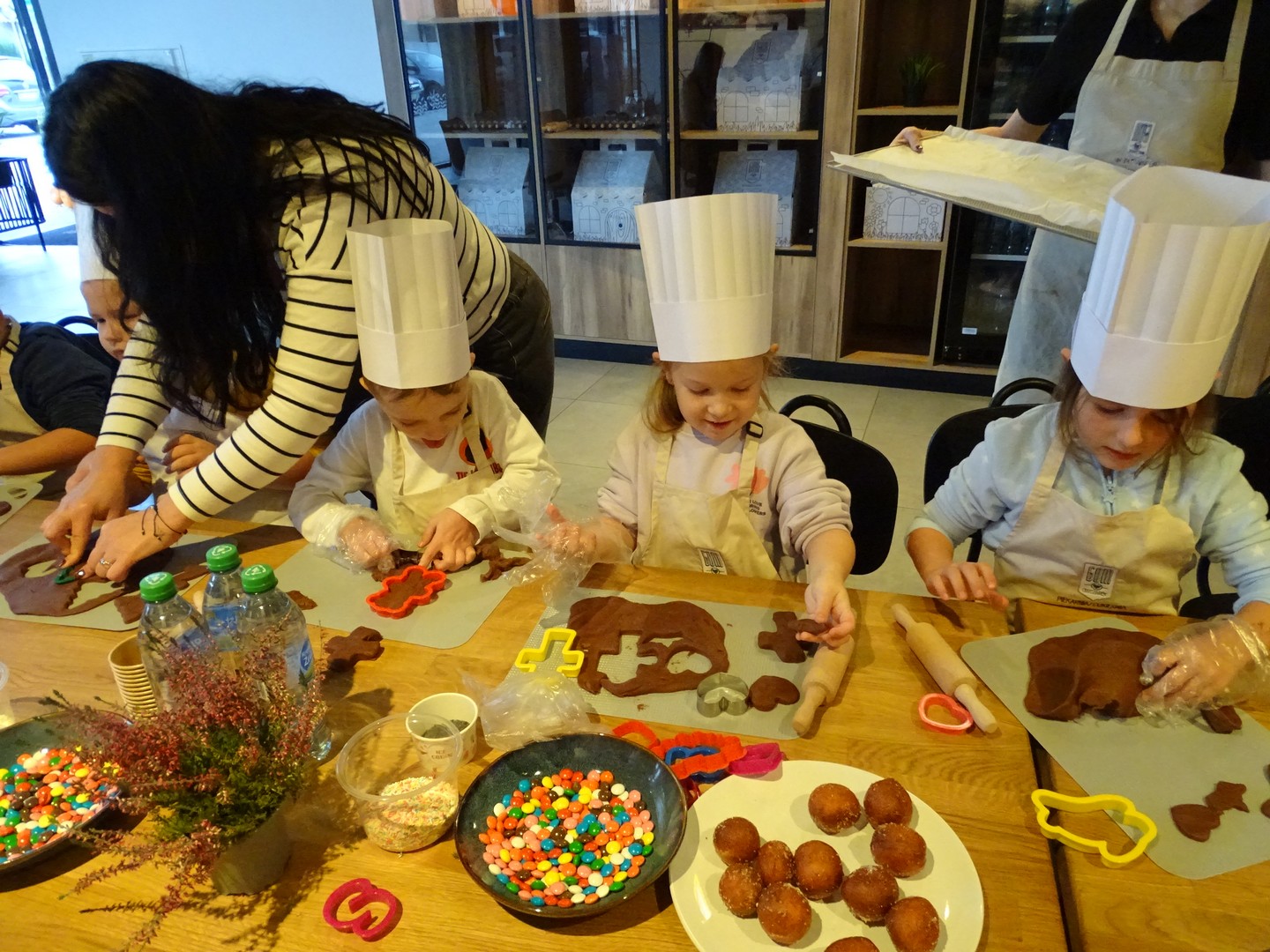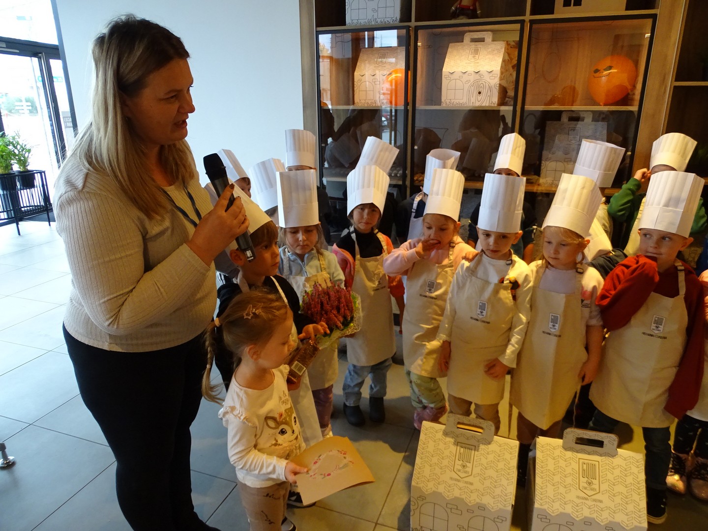 Z okazji Dnia Chleba dzieci z grup „Sówki” i „Smerfy” wybrały się na wyjątkową wycieczkę do Piekarni GOM w Kamieńsku. Zostaliśmy tam bardzo serdecznie przyjęci, a na naszych małych podróżników czekały liczne niespodzianki. Na początek dzieci spróbowały pysznego poczęstunku – świeżutkich pączuszków oraz włoskiej pizzy wypiekanej na miejscu. Następnie przedszkolaki przystąpiły do kulinarnych warsztatów. Dzieci wałkowały ciasto, wykrawały pierniczki i przygotowywały je do pieczenia. Panie z piekarni pokazały im piec oraz opowiedziały o całym procesie wypieku. Podczas gdy pierniczki rumieniły się w piecu, dzieci obejrzały krótką bajeczkę o tym, jak powstaje chleb. Później każde dziecko ozdobiło swoją własną bułeczkę, delikatnie posypując ją makiem. Na zakończenie, już po wyjęciu pierniczków z pieca, przedszkolaki fantastycznie udekorowały je lukrem i kolorowymi posypkami. Na koniec dzieci pięknie podziękowały za wspaniałą atmosferę i cudownie spędzony czas. Każdy uczestnik zabrał ze sobą do specjalnego papierowego domku własnoręcznie przygotowaną bułeczkę, pierniczki, pączka, a także kredki i kolorowankę. To był naprawdę wyjątkowy, pełen wrażeń dzień.