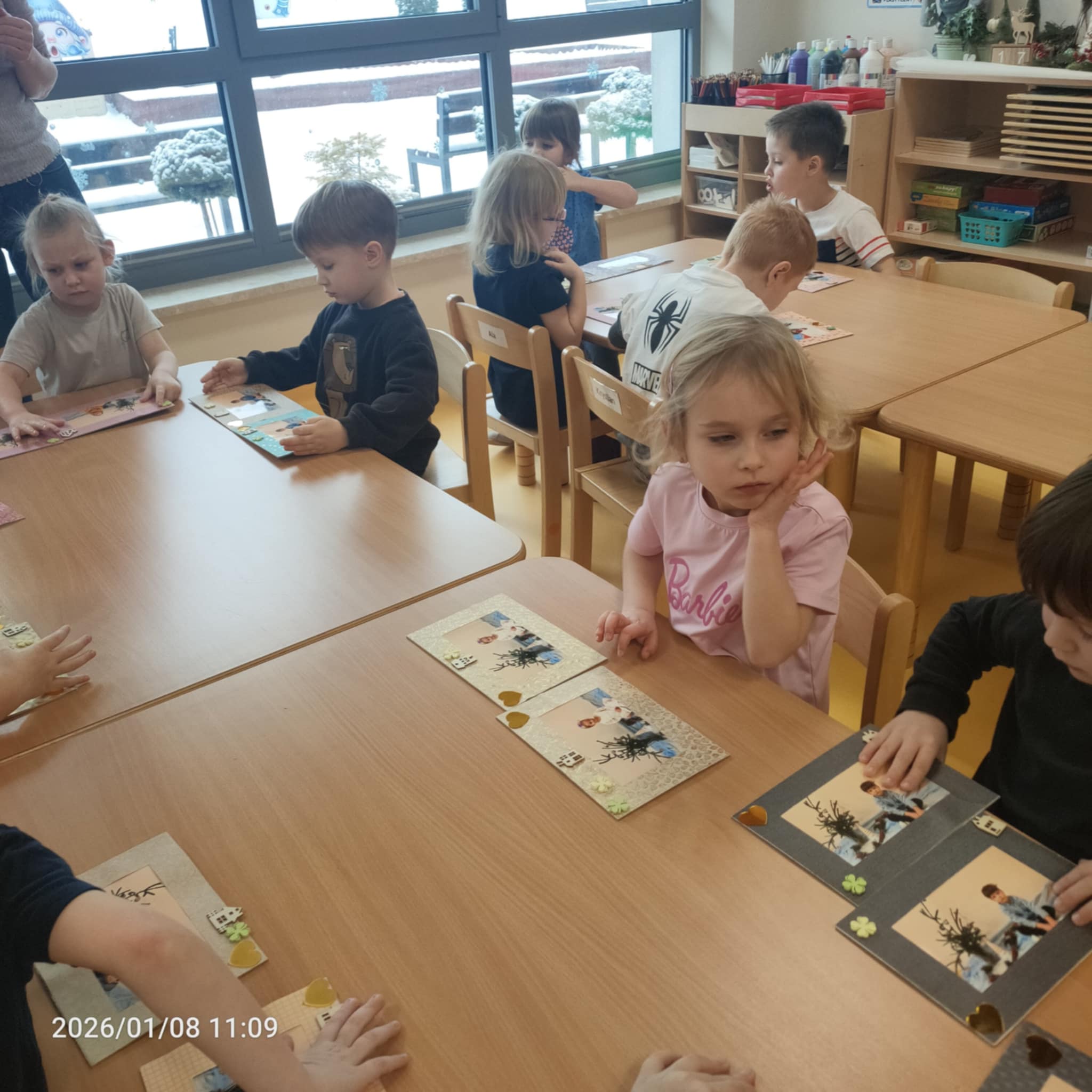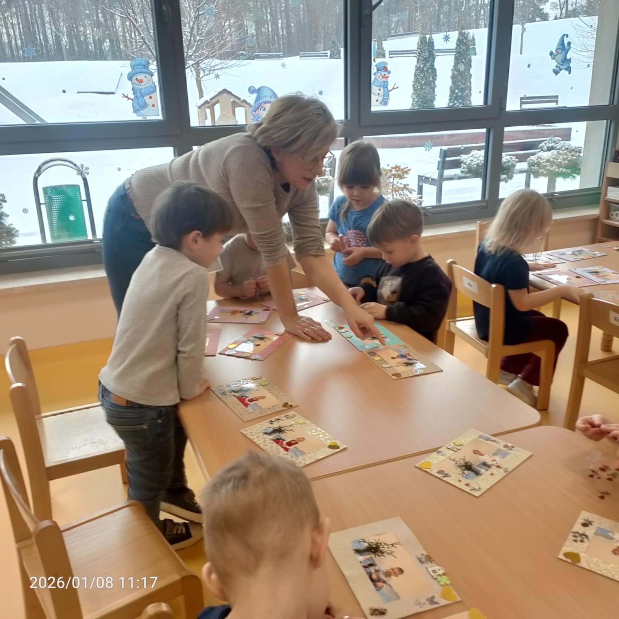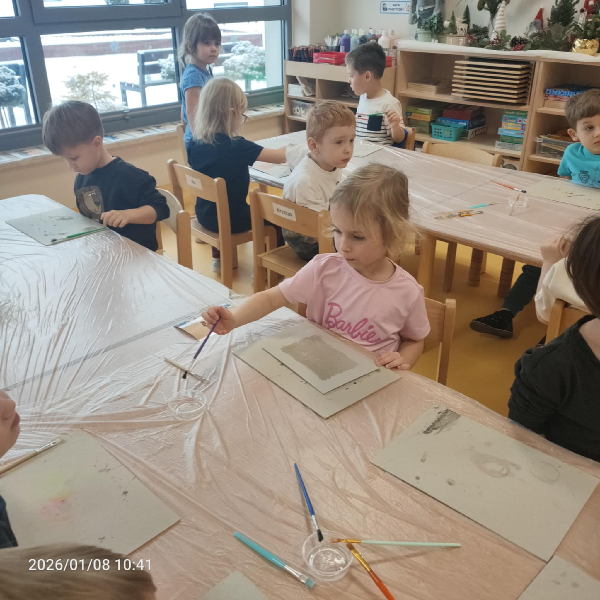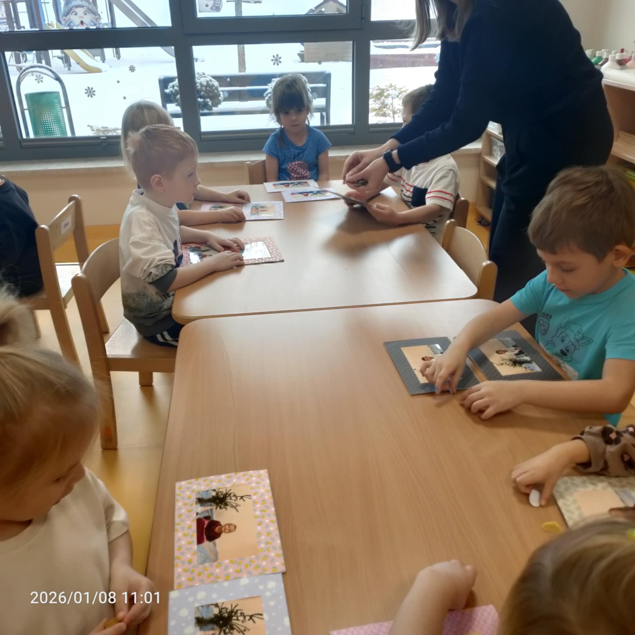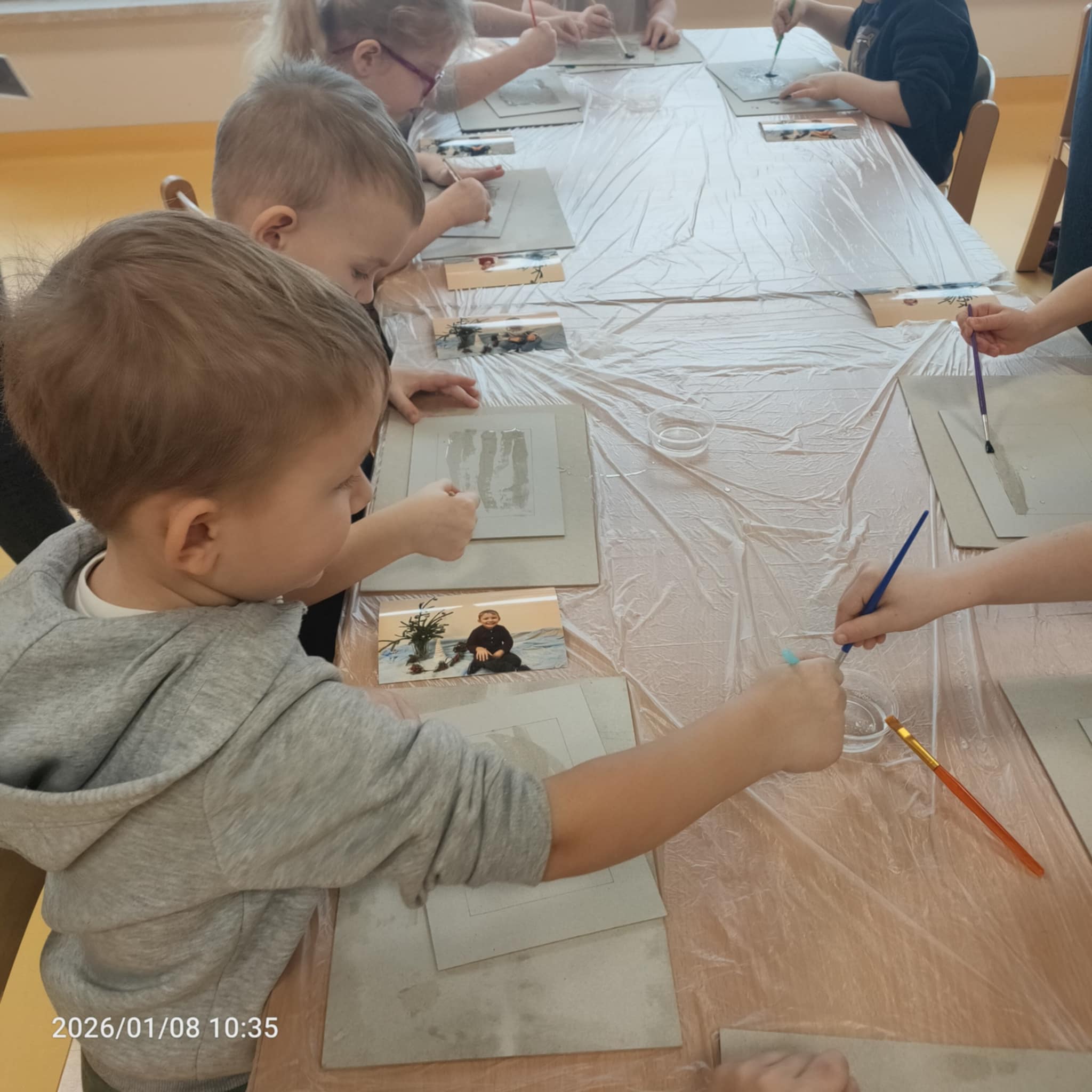 W czwartek, 8 stycznia 2026 roku, grupa „Jeżyki” miała okazję uczestniczyć w wyjątkowych warsztatach z panią Pleciugą. Dzieci z wielkim zapałem samodzielnie tworzyły ozdobne ramki na zdjęcia, które później stały się pięknym prezentem dla ich ukochanych Babć i Dziadków. Wszystkie prace powstały z ogromnym zaangażowaniem i prezentowały się przepięknie. To był dzień pełen kreatywności i radości.
