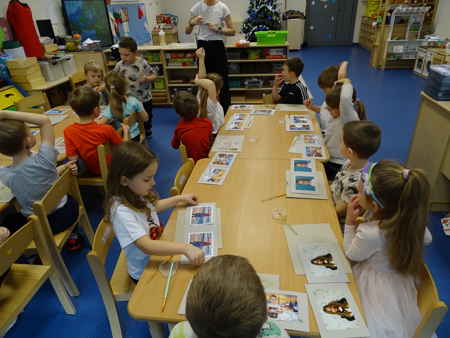 W piątek, 19.12.2025 r., w grupie „Sówki” odbyły się wyjątkowe warsztaty z panią Pleciugą. Dzieci samodzielnie wykonywały ozdobne ramki na zdjęcia, które stały się pięknym upominkiem dla ukochanych Babć i Dziadków. Wszystkie prace były wykonywane z ogromnym zaangażowaniem i wyszły przepięknie. Mamy nadzieję, że sprawią wiele radości obdarowanym. Był to bardzo kreatywny i radosny dzień.