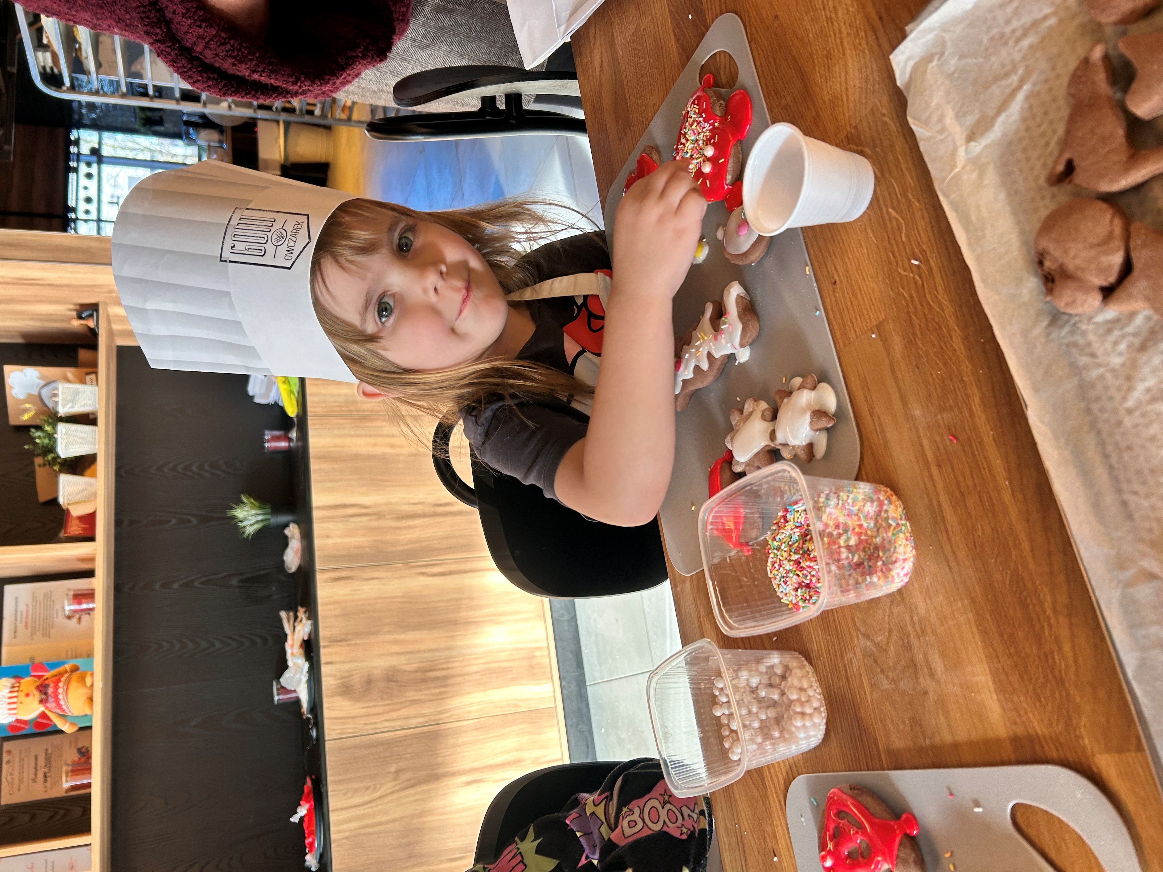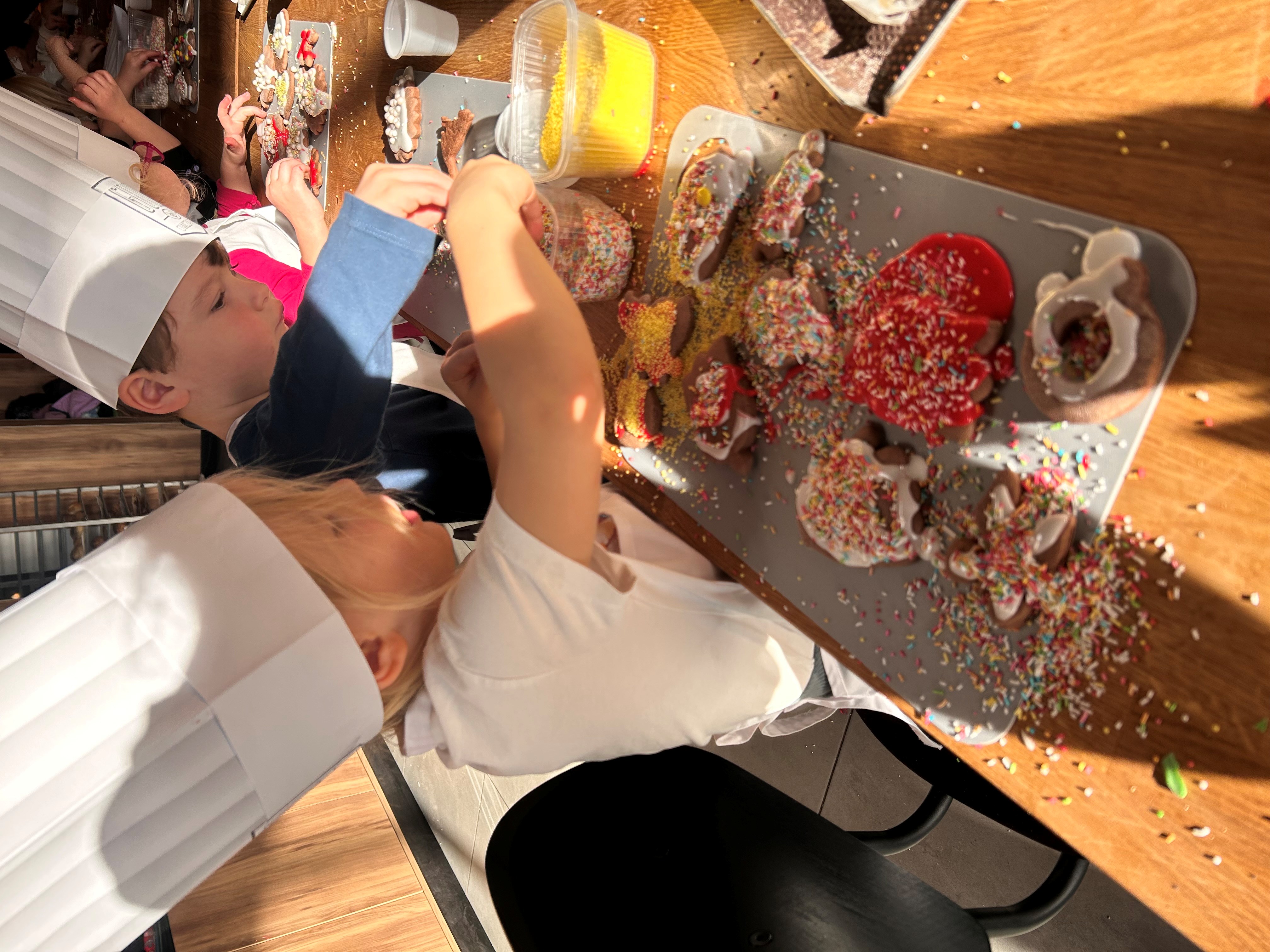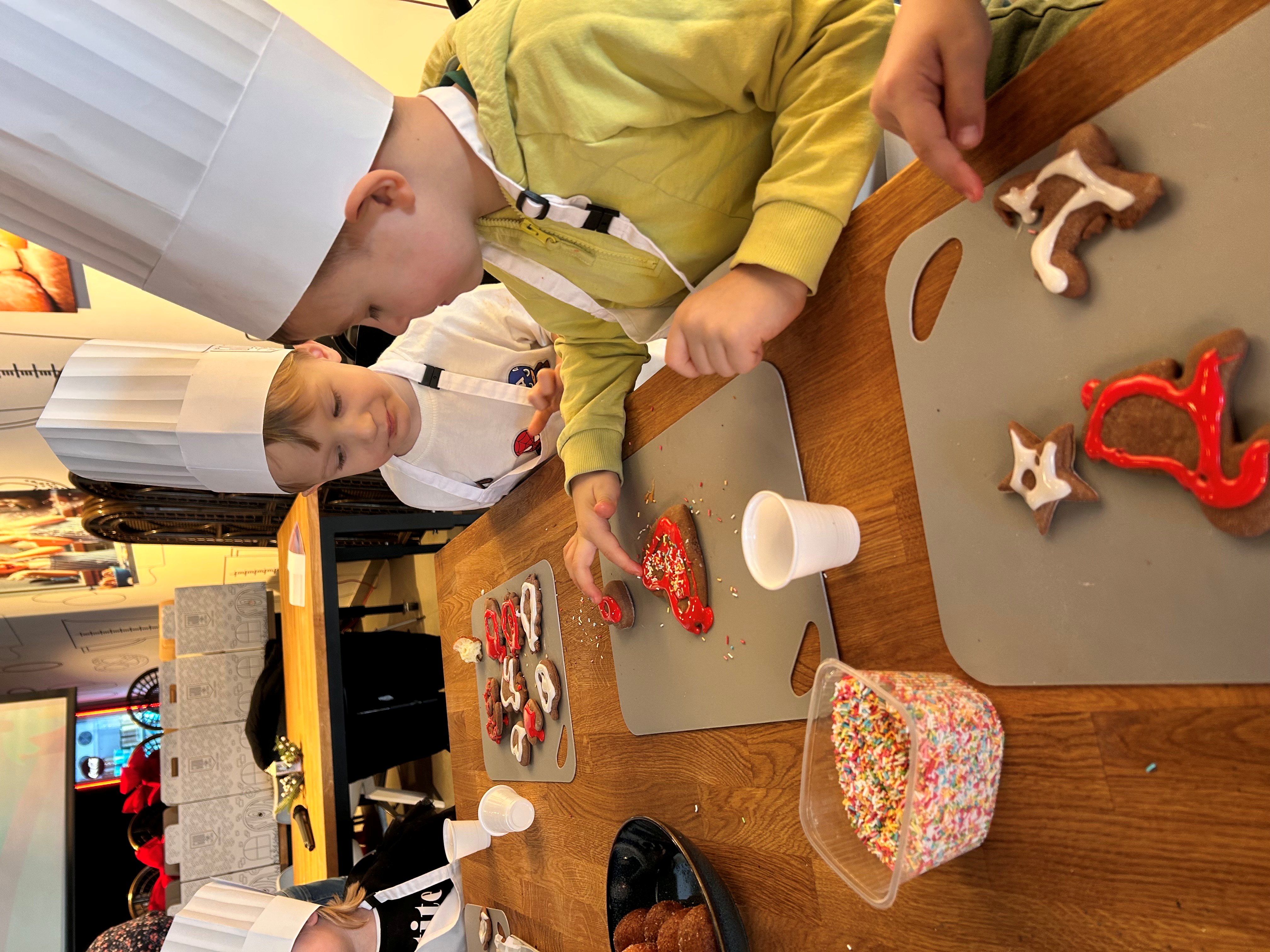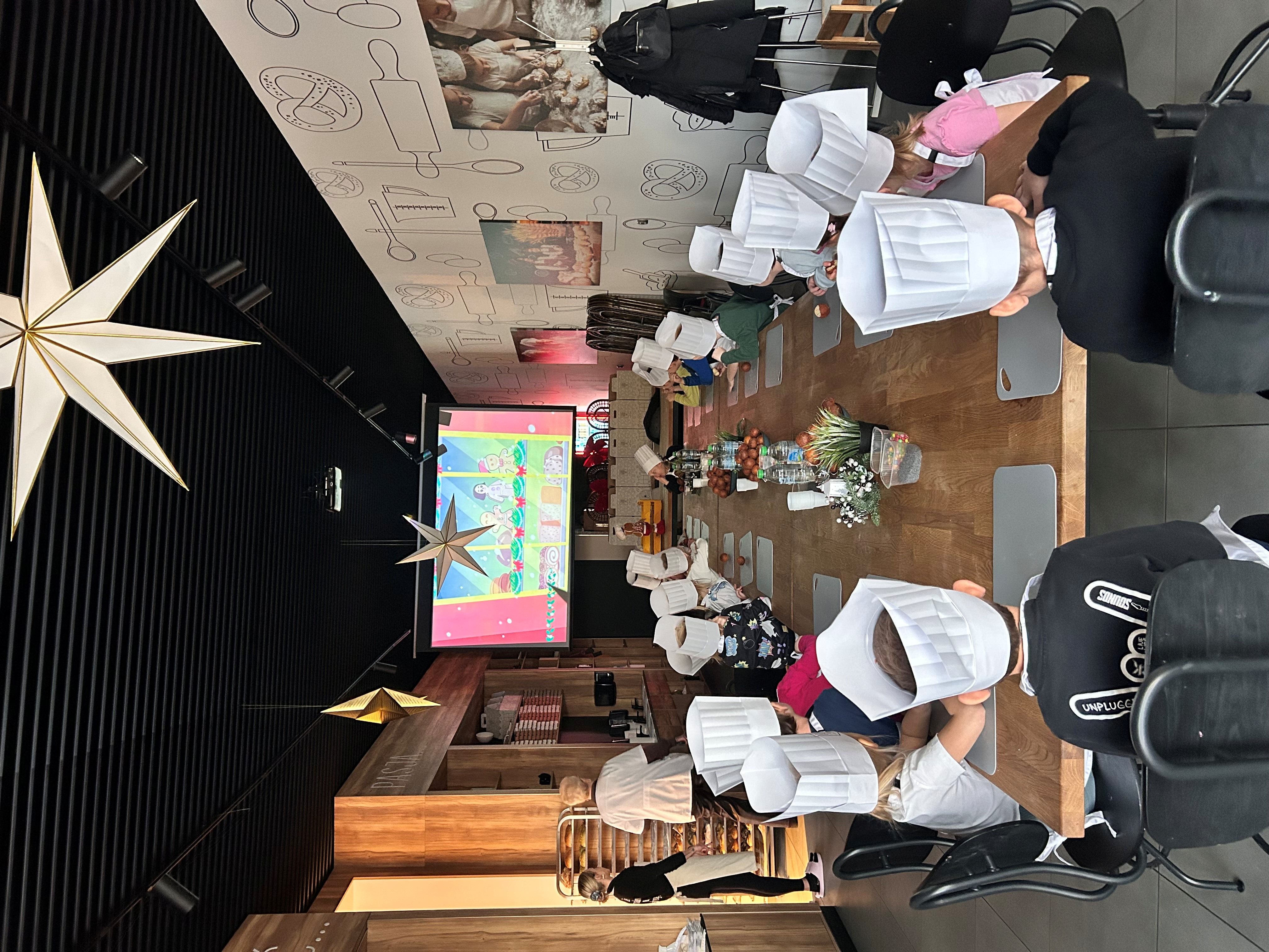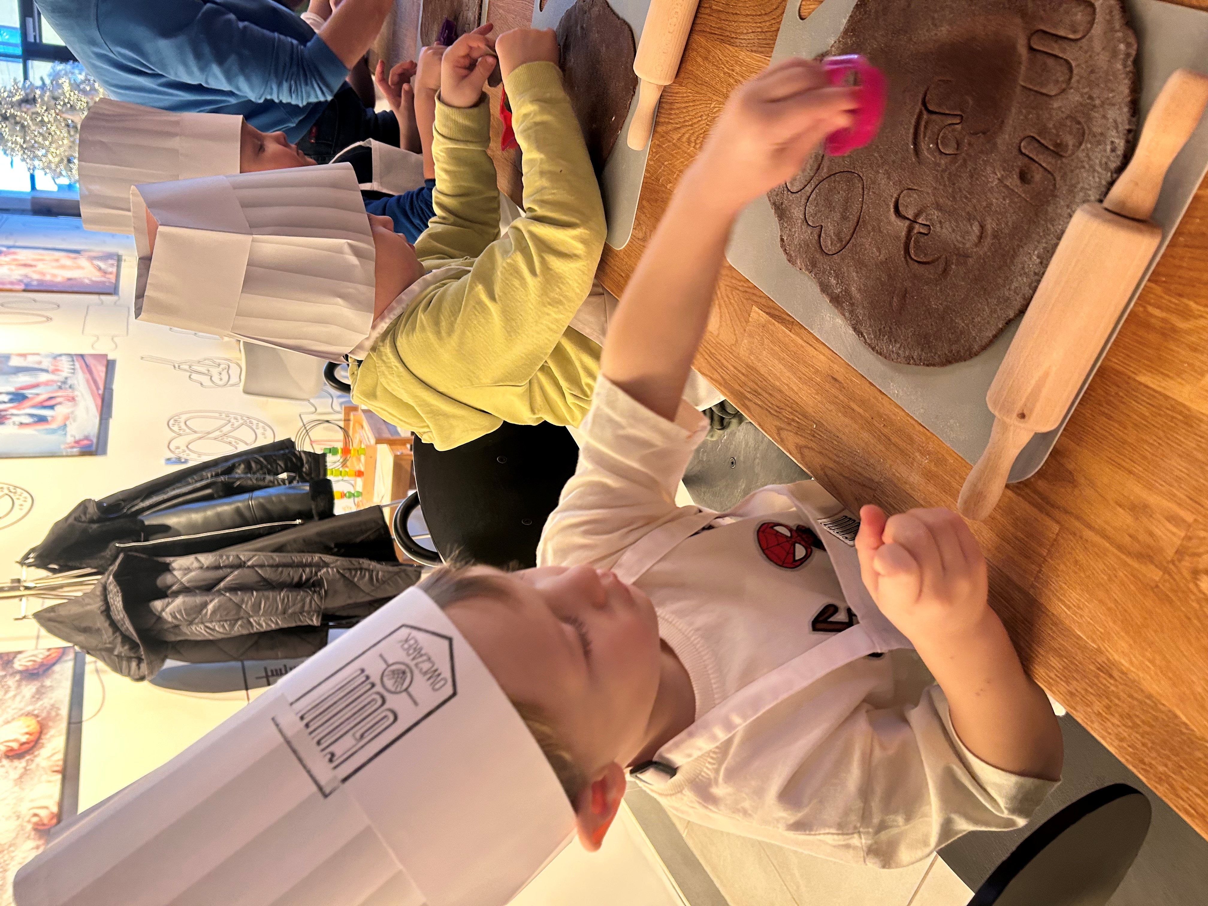 Wycieczka do piekarni sprawiła dzieciom mnóstwo radości. Przedszkolaki szybko odkryły, że wałkowania ciasta to nie lada wyczyn ! Dzieci dzielnie wałkowały, ugniatały a następnie wycinały pierniczki w przeróżnych kształtach. Potem przyszła pora na zdobienie - brokatu, lukru było więcej na stołach , buziach i ubraniach niż na pierniczkach, ale za to zabawa była świetna. Nie zabrakło również wypieku kajzerek. Gdy w piekarni unosił się zapach pieczenia bułeczek i pierników przyszedł czas na poczęstunek. Na stołach pojawiły się przepyszne pączki oraz pachnąca pizza ! Przedszkolaki wróciły do domu z pełnymi brzuszkami, wspaniałymi prezentami i ogromnymi uśmiechami.