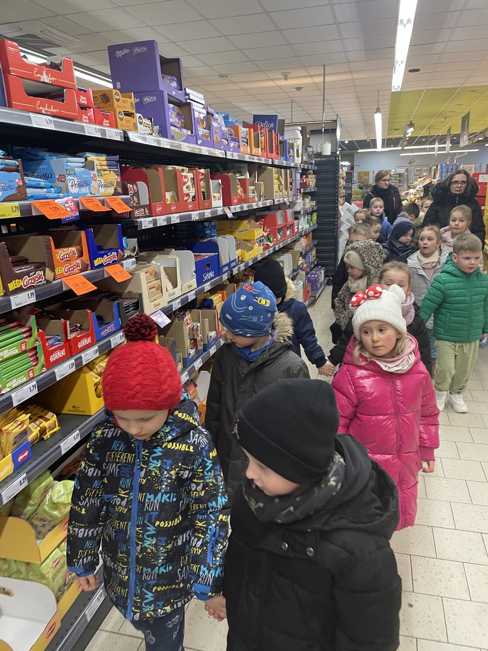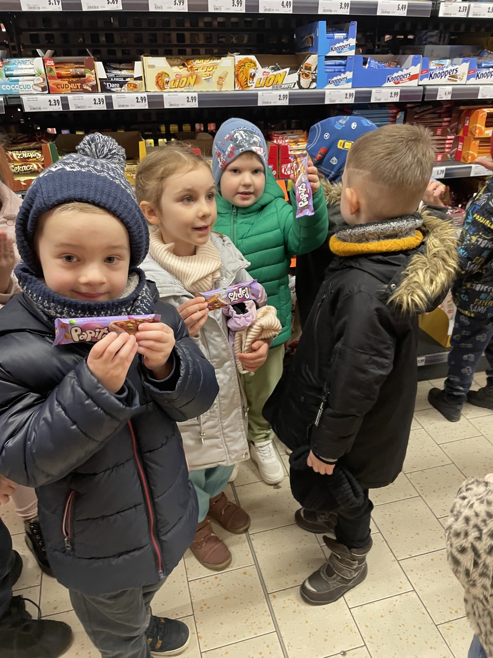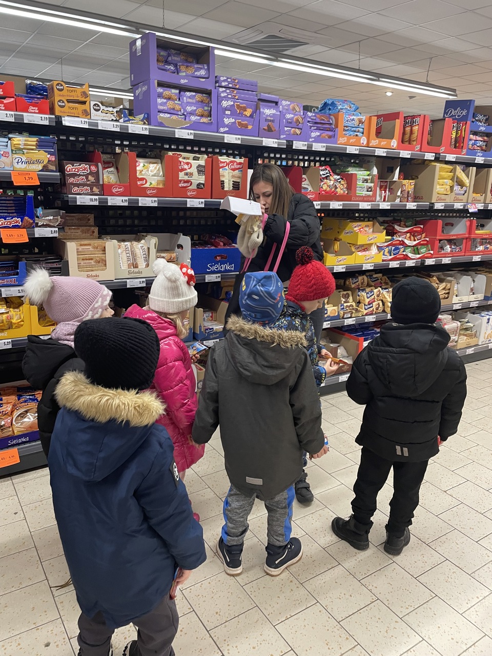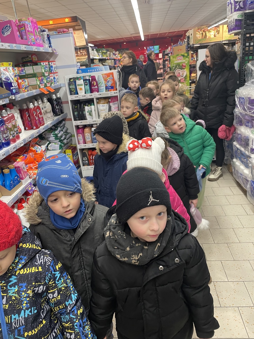 24 lutego 2026 roku grupa „Słoneczka” wybrała się na ciekawą wycieczkę edukacyjną do pobliskiego sklepu Polo Market. Podczas wizyty dzieci miały wyjątkową okazję, aby z bliska przyjrzeć się pracy sprzedawcy i poznać tajniki tego zawodu. Największą atrakcją była możliwość samodzielnego dokonania drobnych zakupów. Przedszkolaki podchodziły do kasy, ucząc się przy tym kulturalnego zachowania w miejscu publicznym. Ta praktyczna lekcja przedsiębiorczości sprawiła dzieciom mnóstwo radości.