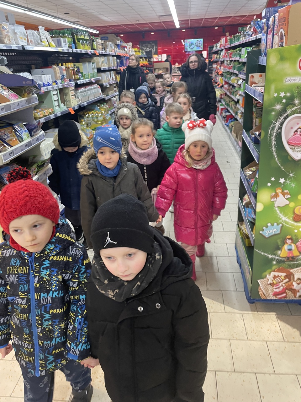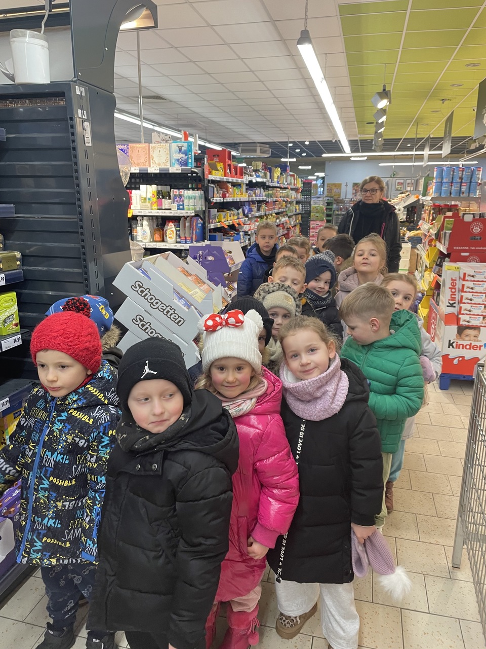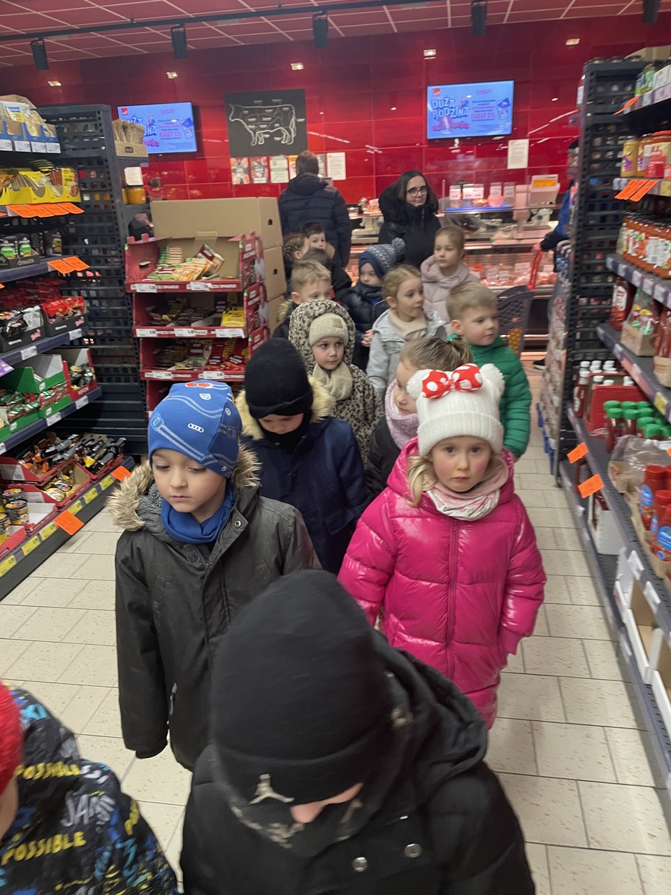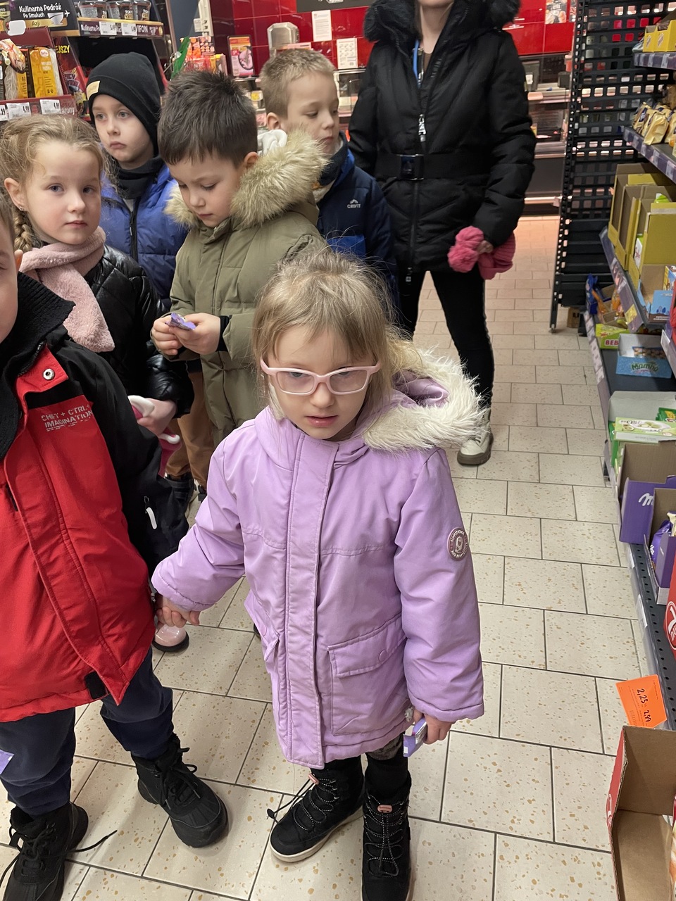24 lutego 2026 roku grupa „Słoneczka” wybrała się na ciekawą wycieczkę edukacyjną do pobliskiego sklepu Polo Market. Podczas wizyty dzieci miały wyjątkową okazję, aby z bliska przyjrzeć się pracy sprzedawcy i poznać tajniki tego zawodu. Największą atrakcją była możliwość samodzielnego dokonania drobnych zakupów. Przedszkolaki podchodziły do kasy, ucząc się przy tym kulturalnego zachowania w miejscu publicznym. Ta praktyczna lekcja przedsiębiorczości sprawiła dzieciom mnóstwo radości.