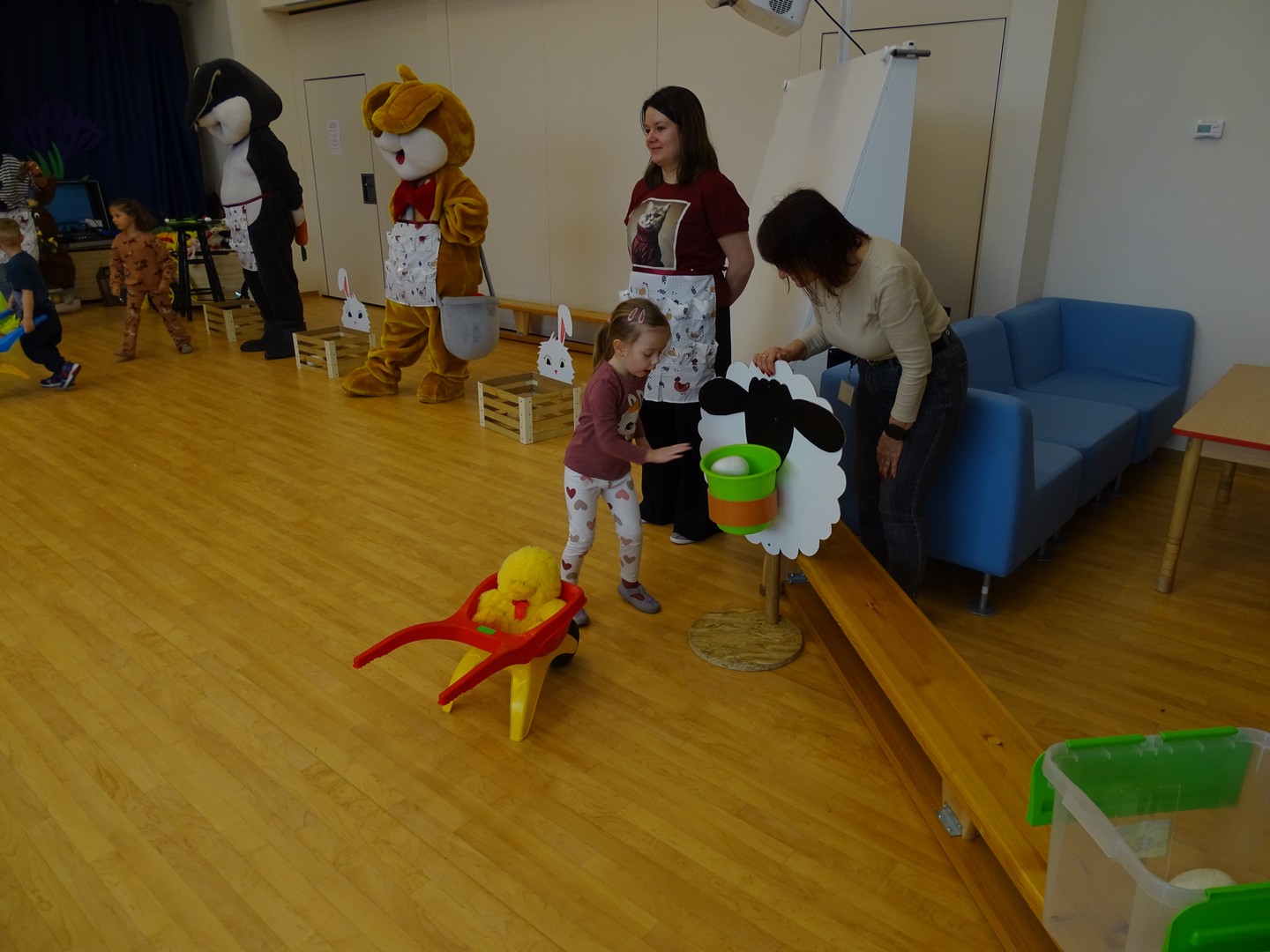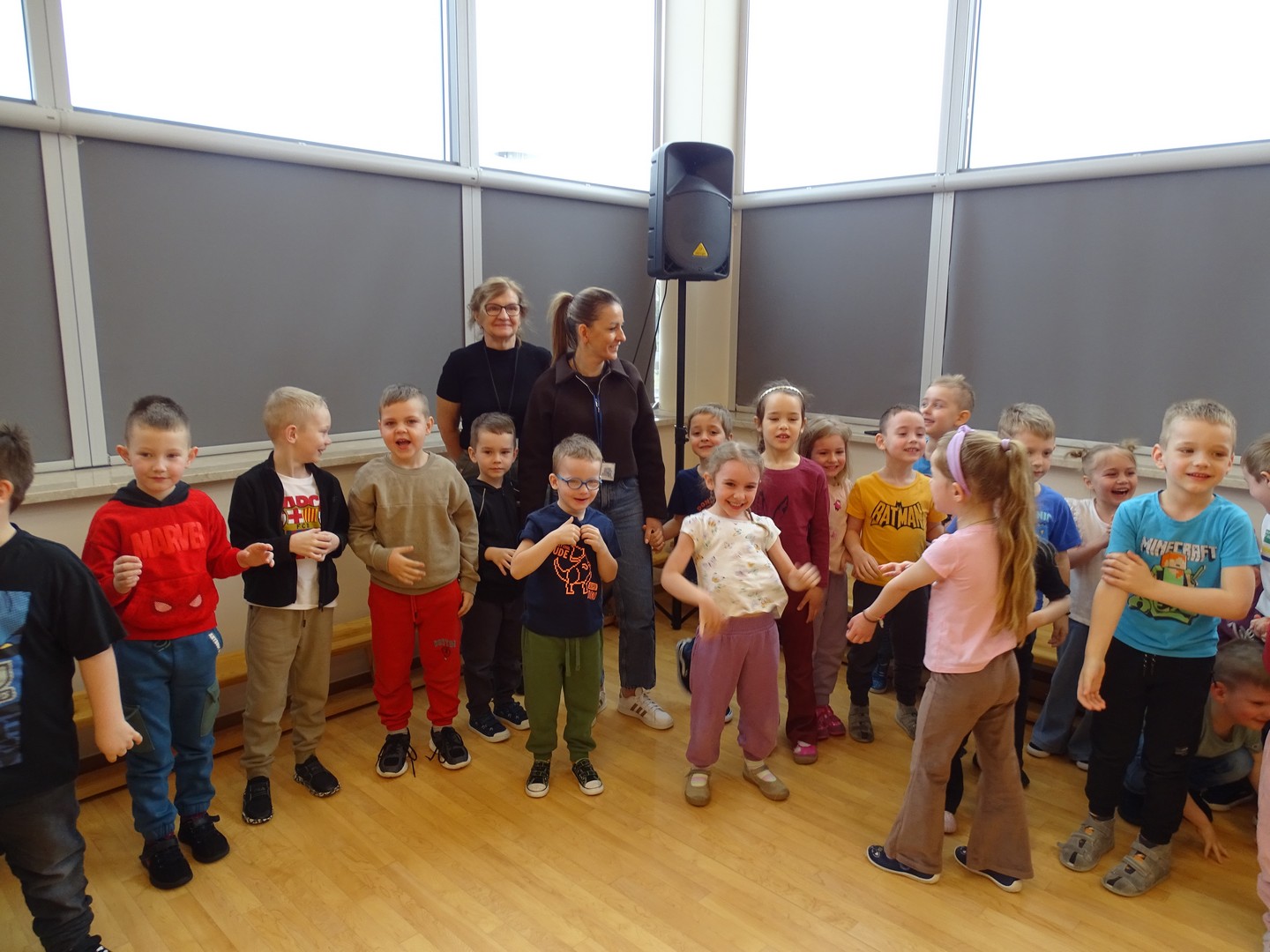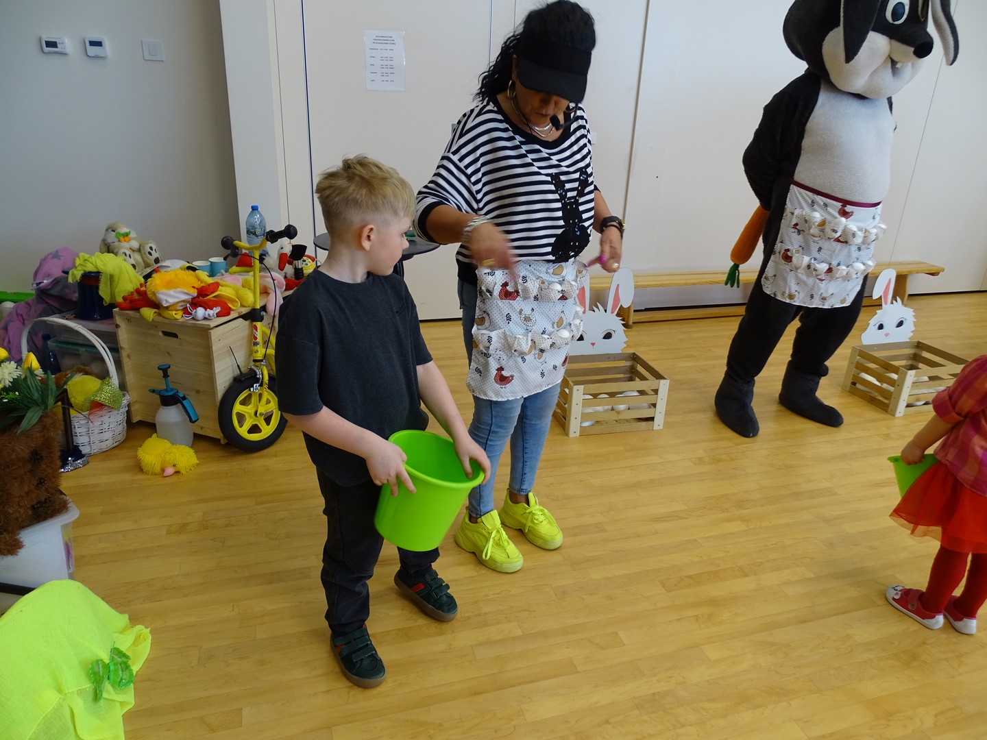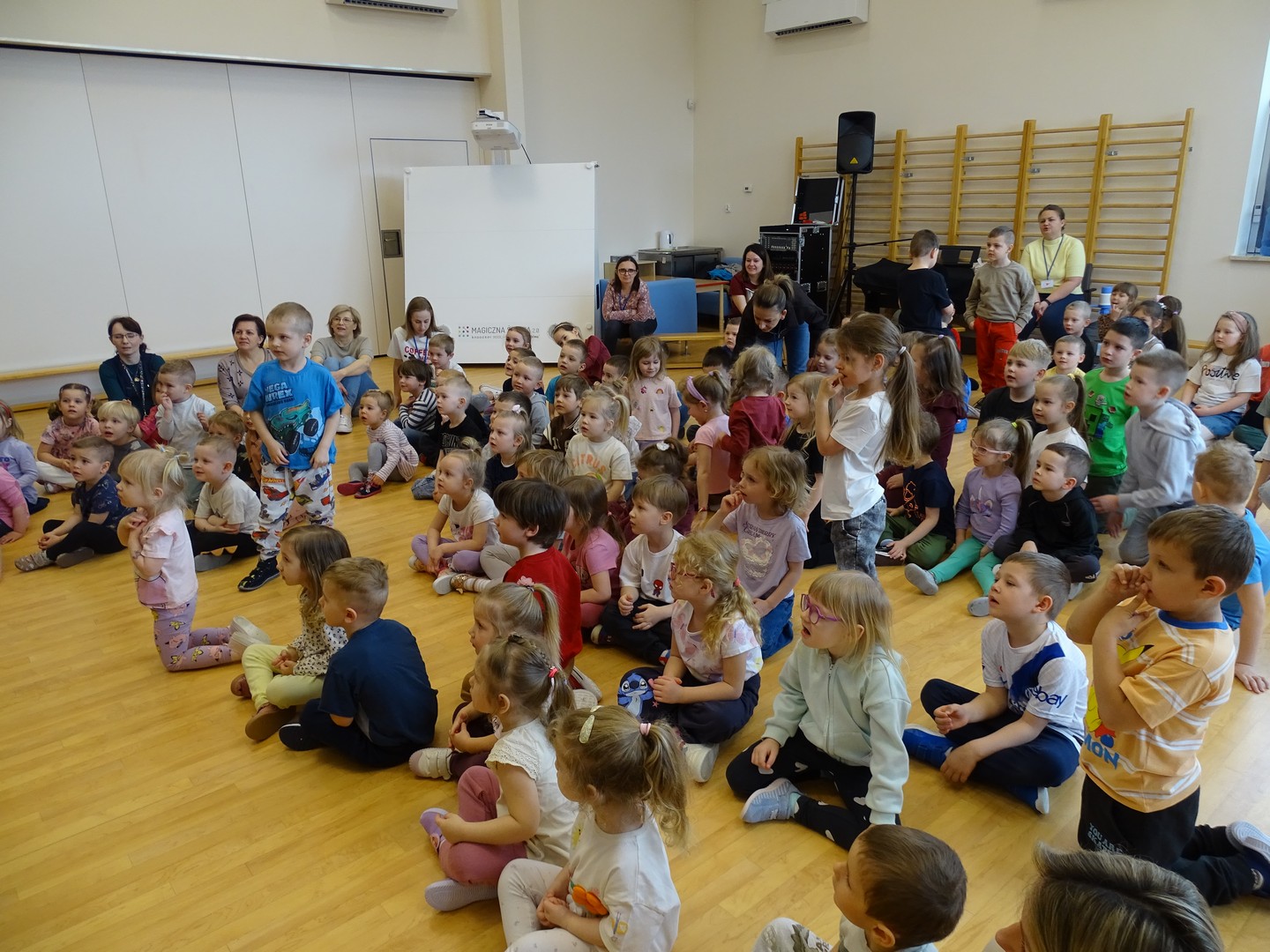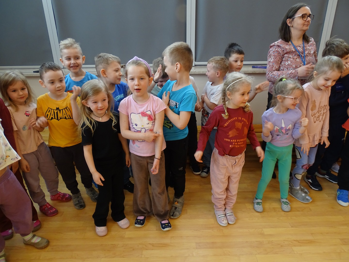 31 marca 2026r. w naszym przedszkolu odbyły się zabawy z zajączkiem prowadzone przez animatorów Rytmix. Była to interaktywna aktywność muzyczno-ruchowa, idealna na Wielkanoc, łącząca śpiew, taniec i liczenie. Dzieci naśladowały skoki zajączka, szukały ukrytych pisanek i marchewek oraz rytmicznie poruszały się do muzyki.