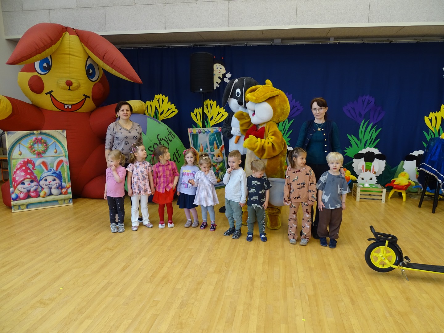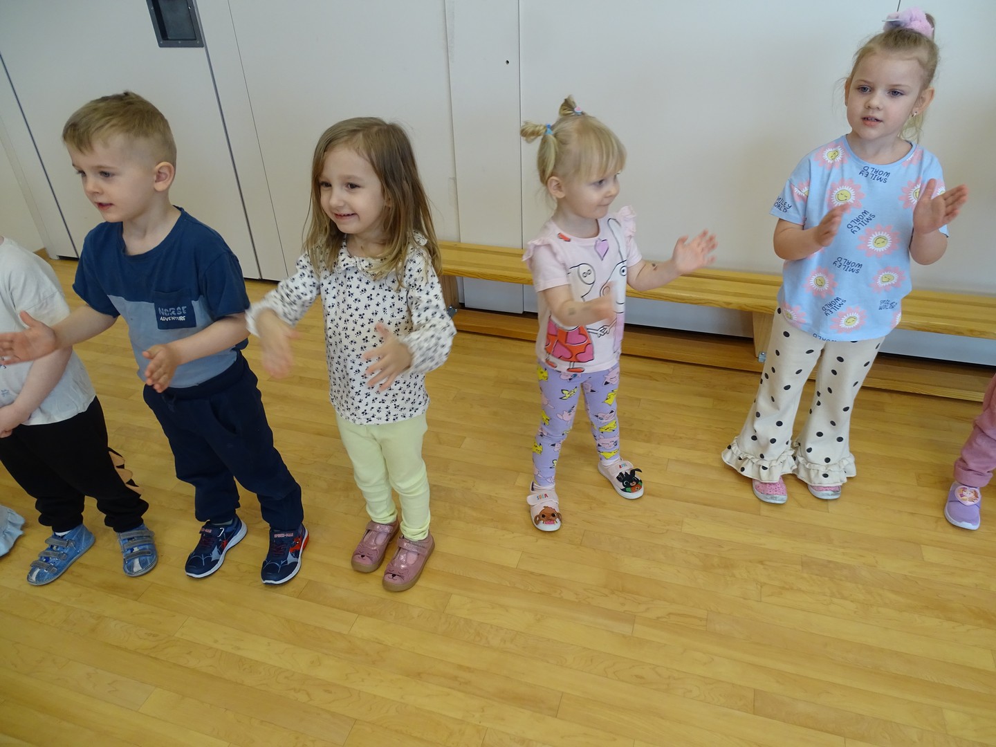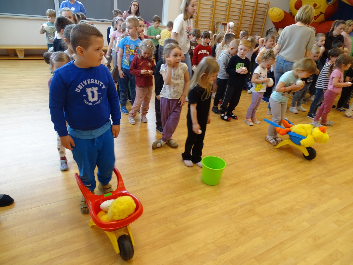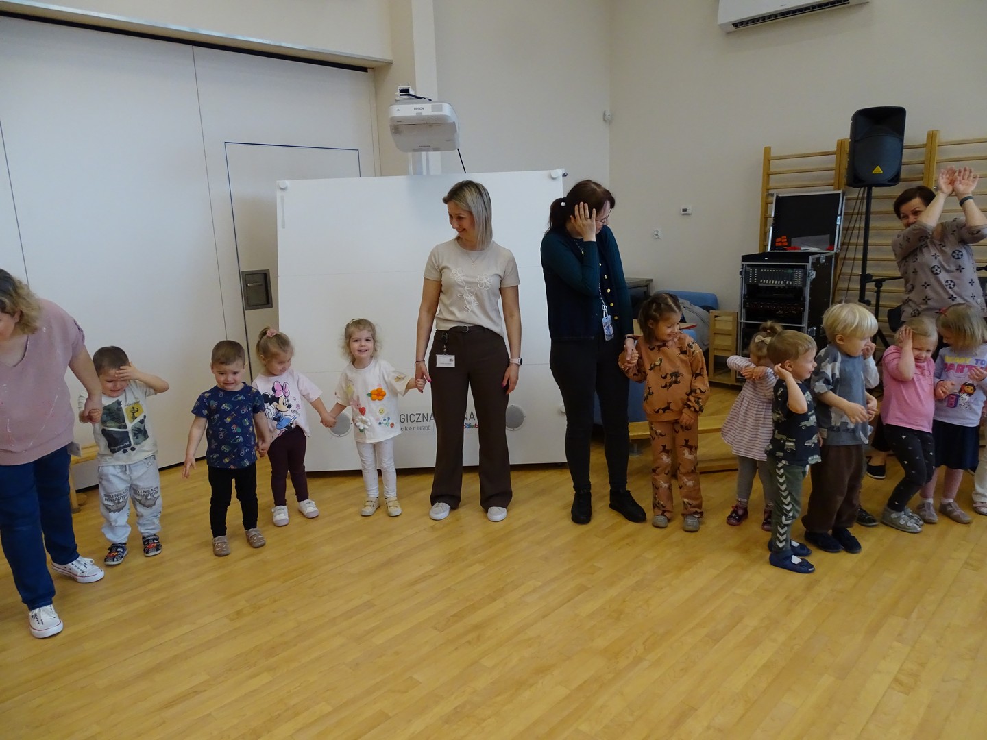 31 marca 2026r. w naszym przedszkolu odbyły się zabawy z zajączkiem prowadzone przez animatorów Rytmix. Była to interaktywna aktywność muzyczno-ruchowa, idealna na Wielkanoc, łącząca śpiew, taniec i liczenie. Dzieci naśladowały skoki zajączka, szukały ukrytych pisanek i marchewek oraz rytmicznie poruszały się do muzyki.
