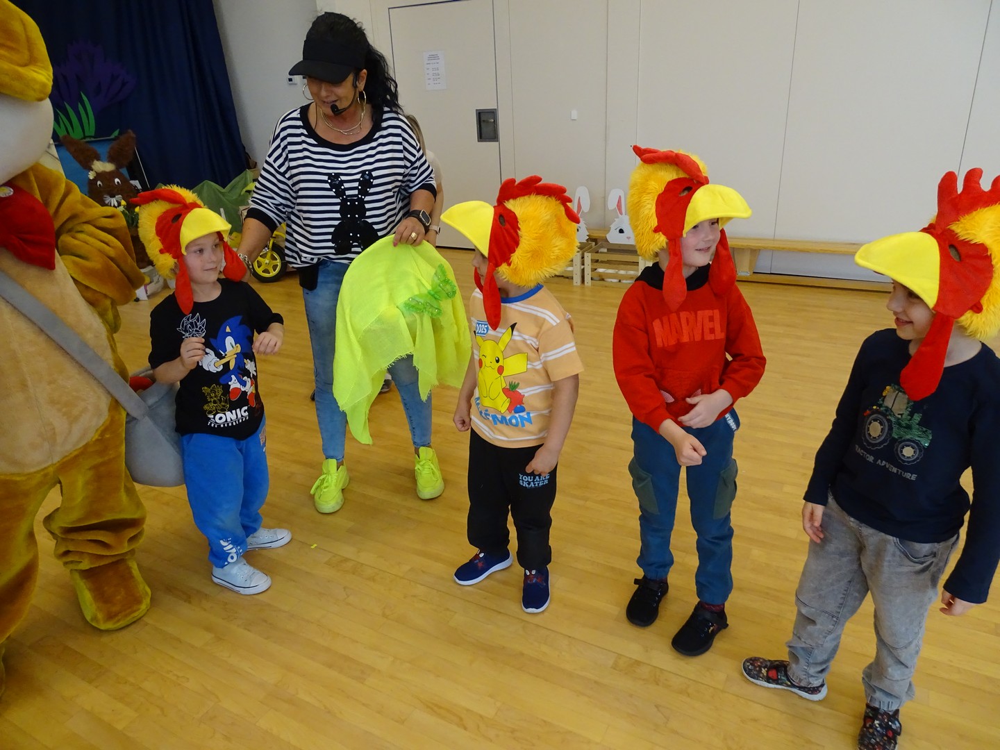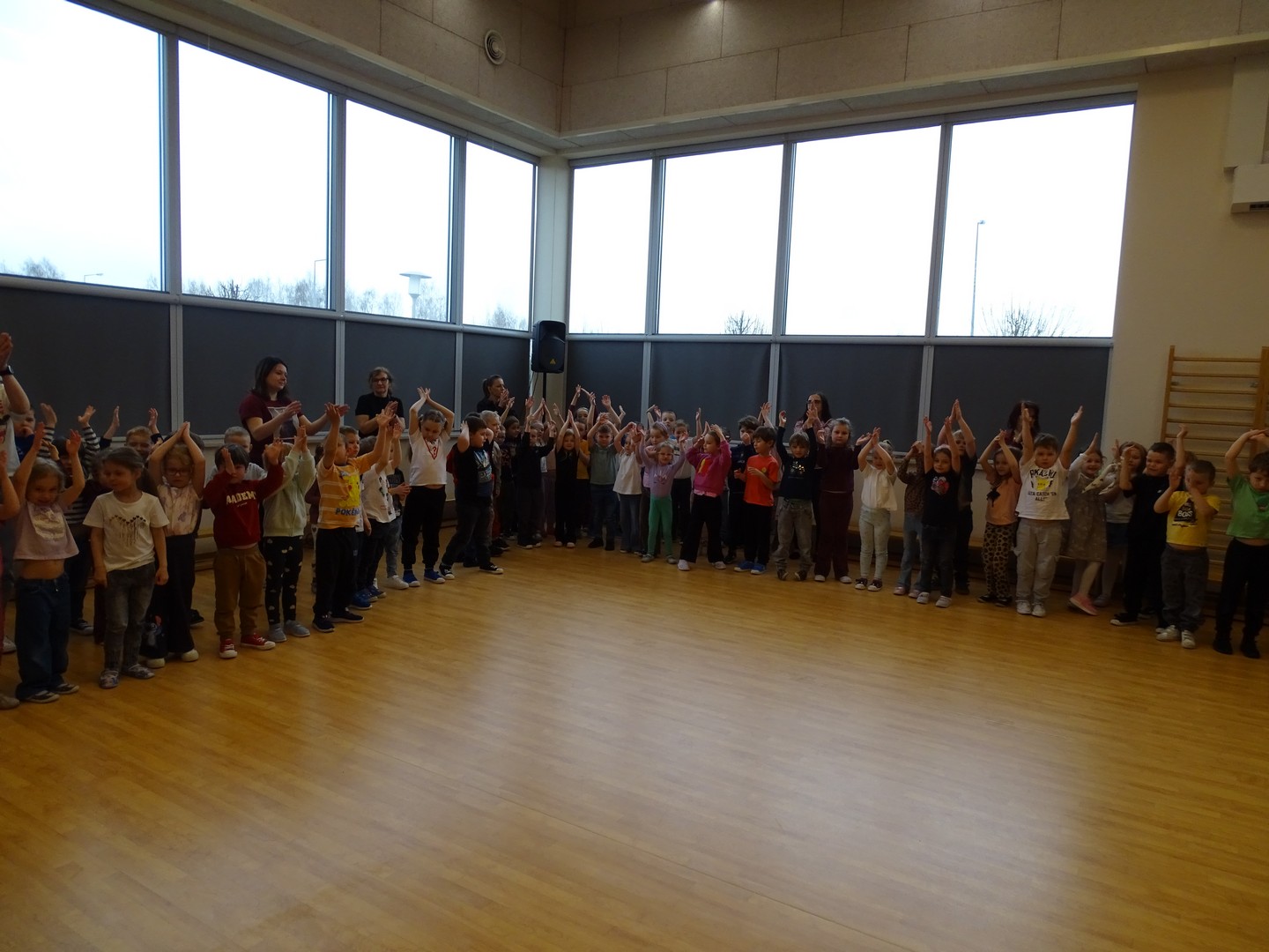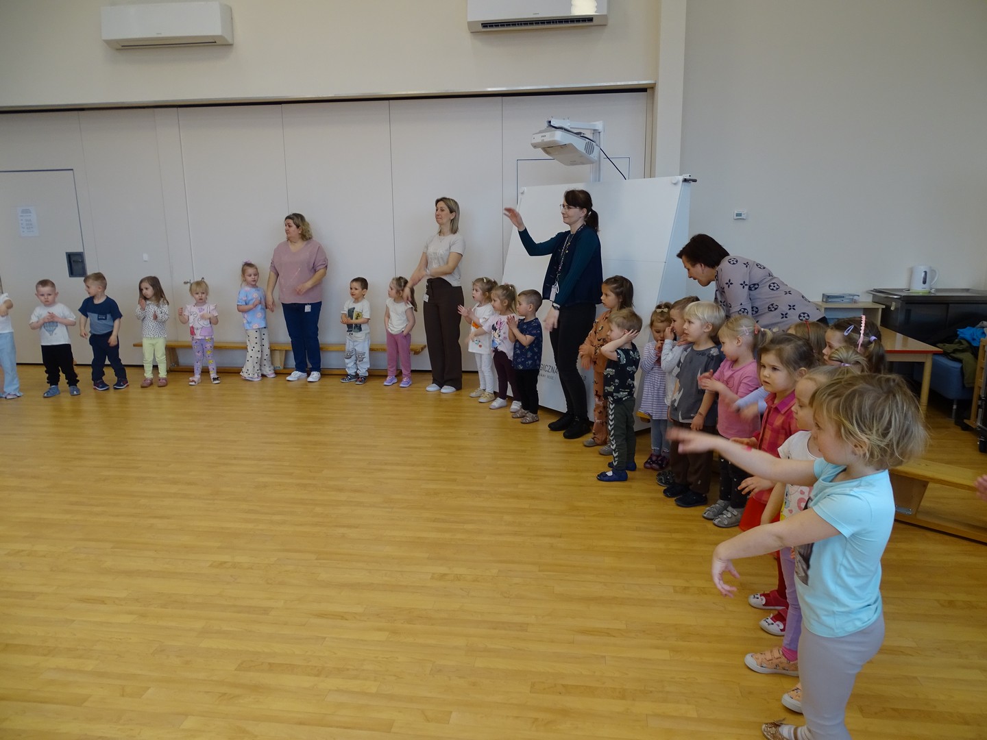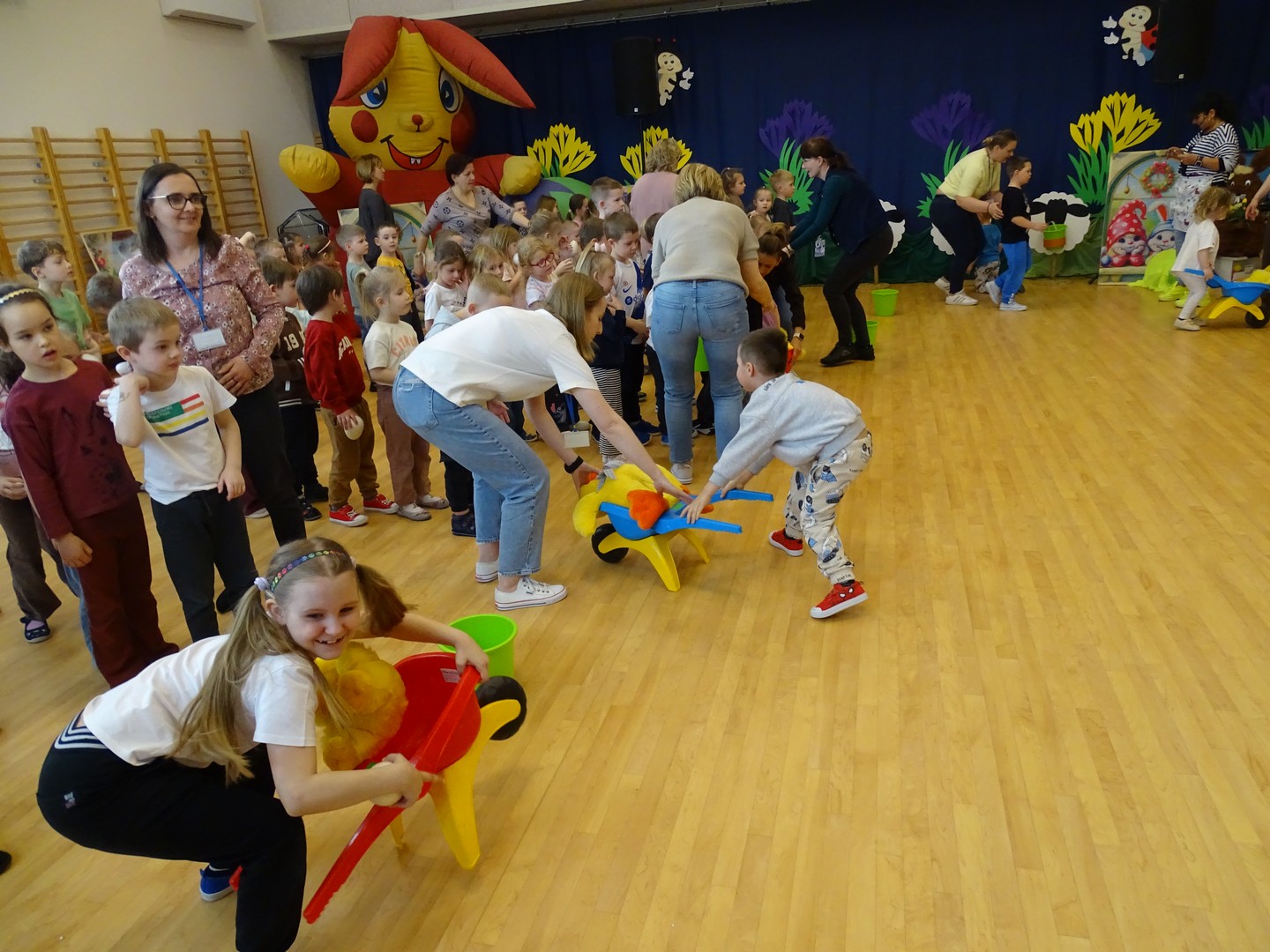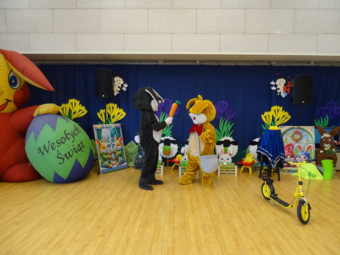 31 marca 2026r. w naszym przedszkolu odbyły się zabawy z zajączkiem prowadzone przez animatorów Rytmix. Była to interaktywna aktywność muzyczno-ruchowa, idealna na Wielkanoc, łącząca śpiew, taniec i liczenie. Dzieci naśladowały skoki zajączka, szukały ukrytych pisanek i marchewek oraz rytmicznie poruszały się do muzyki.