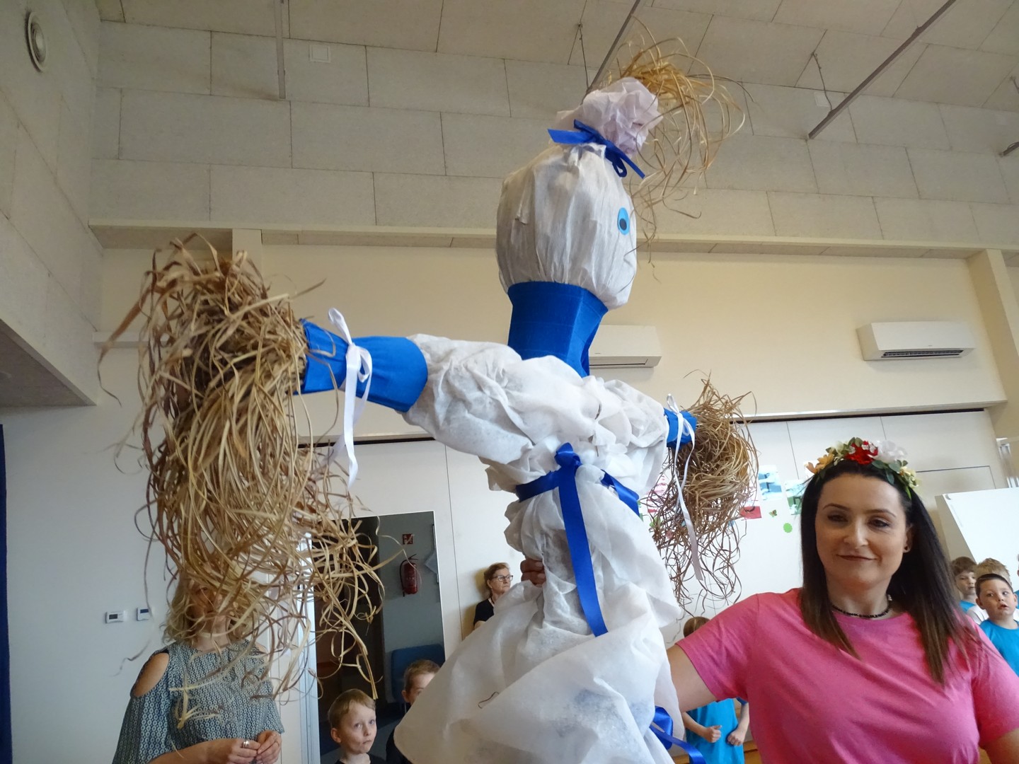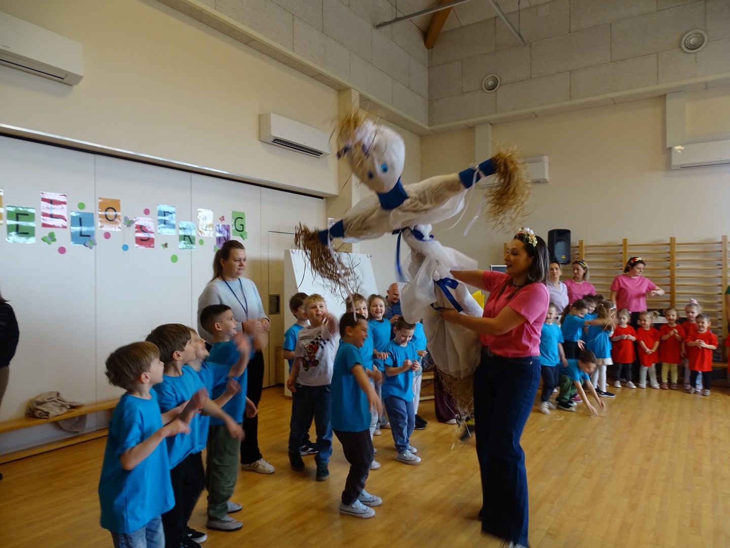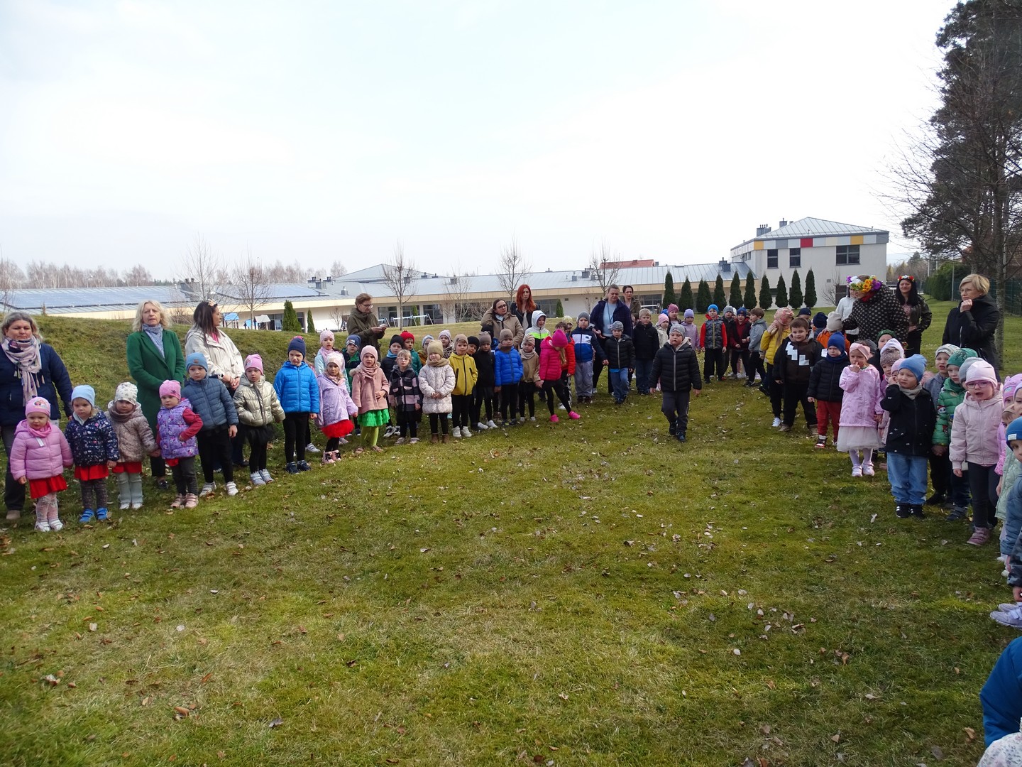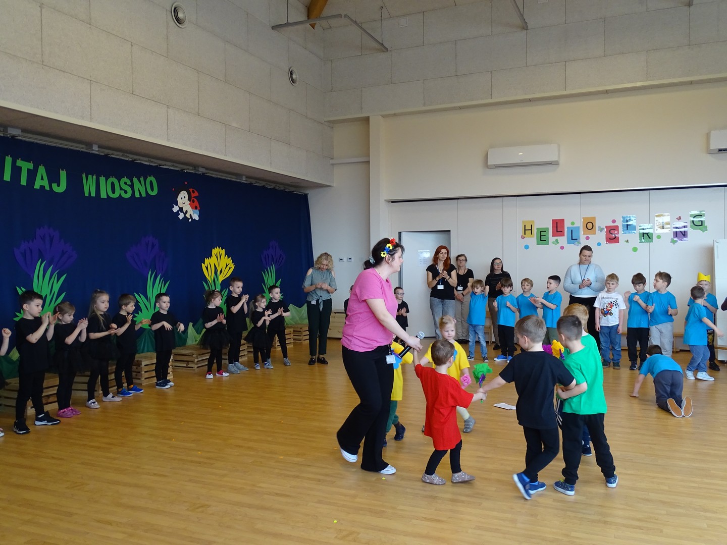 Zgodnie z tą tradycją przedszkolaki jak co roku, pożegnały zimę i przywitały wiosnę. Powitanie wiosny to dla każdego przedszkolaka wyczekiwane wydarzenie. Ogromne emocje wśród dzieci wzbudziły już same przygotowania, które rozpoczęliśmy dużo wcześniej niż kalendarzowe nadejście wiosny. Podczas licznych spacerów, szukaliśmy oznak nowej pory roku, poznaliśmy również piosenki o tematyce wiosennej. Wreszcie 20.03.2026r. przyszedł oficjalny czas pożegnania zimy i powitania wiosny. Wszyscy pojawili się na sali gimnastycznej ubrani w wiosenne kolory. Były tańce, śpiewy i mnóstwo zabawy. Tego dnia podziwialiśmy wiosenny występ dzieci z grupy 5-latków w języku angielskim. Aby tradycji stało się zadość, Marzanna została uroczyście pożegnana, przedszkolaki odprowadziły ją na taczce do garażu. I tak kolorowy, ale już wiosenny, uśmiechnięty pochód mógł wrócić do przedszkola z gaikiem.