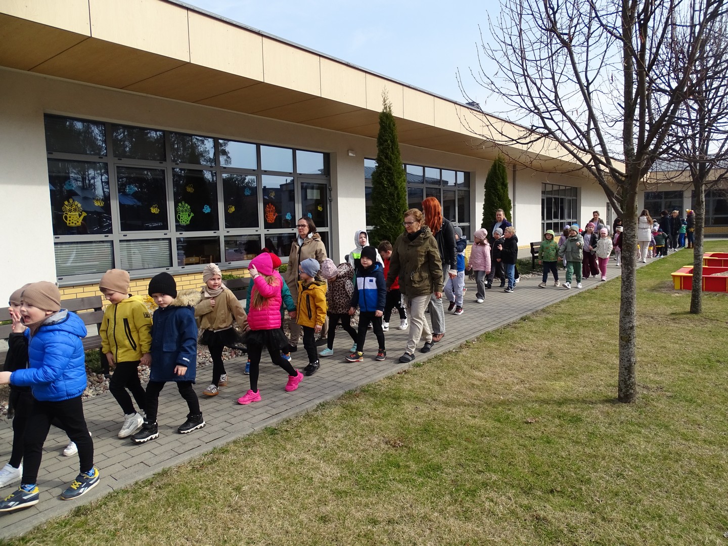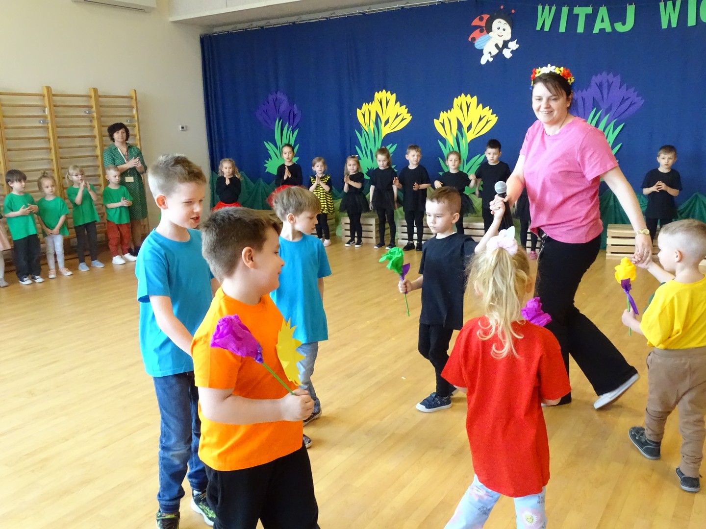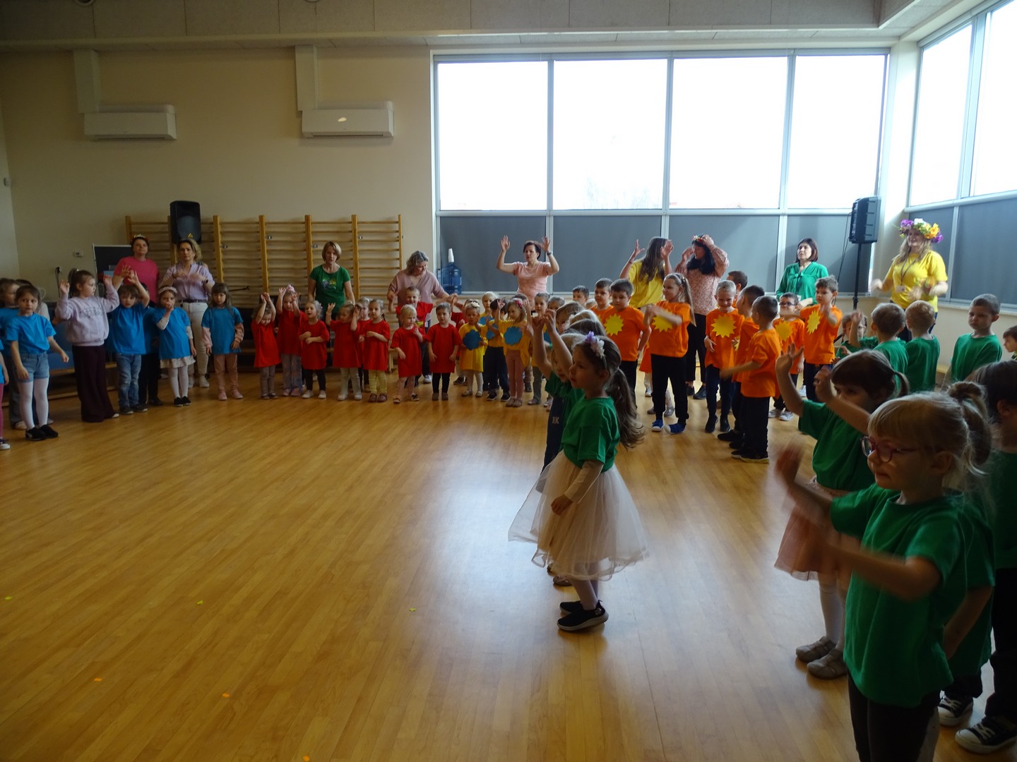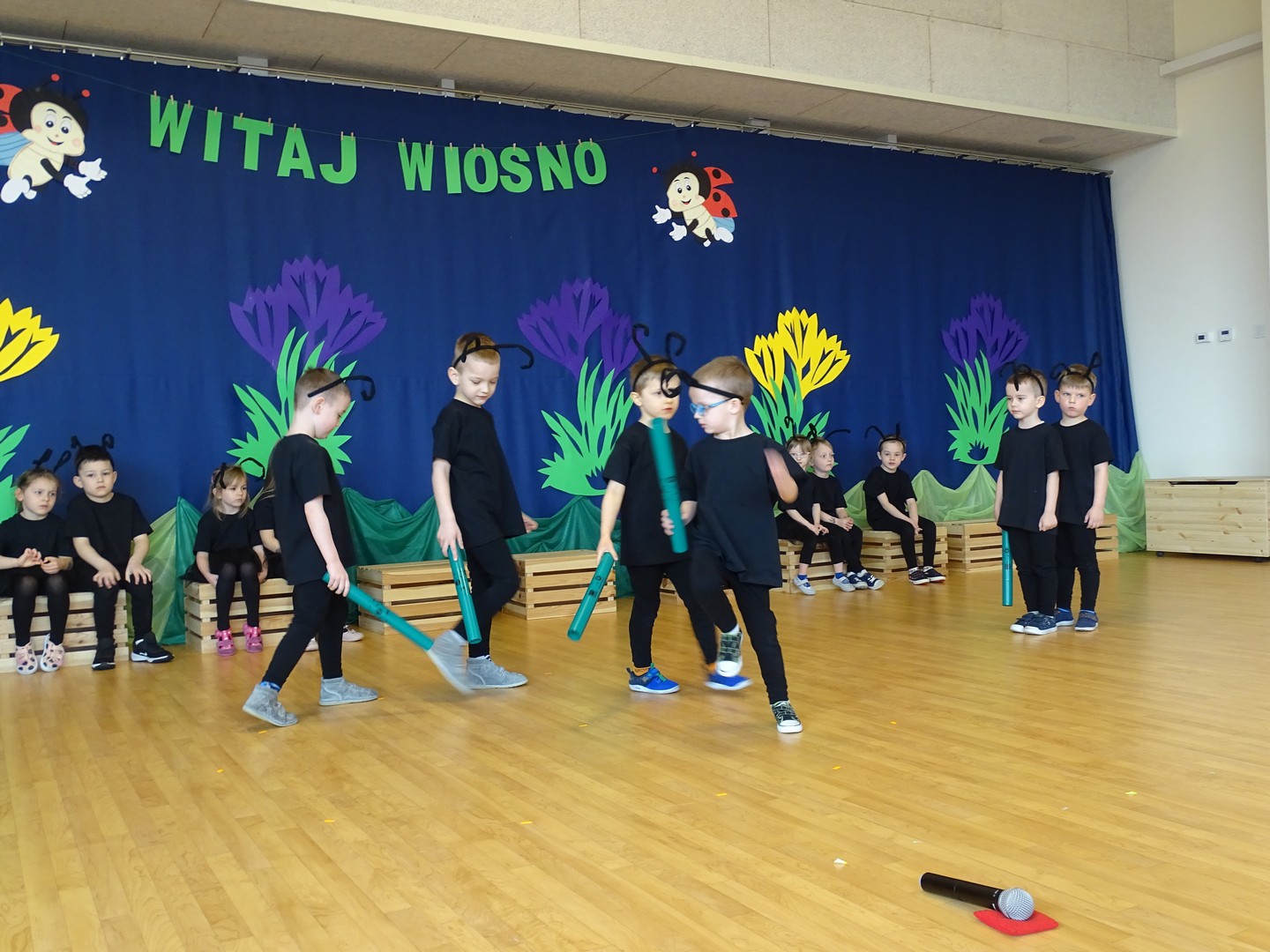 Zgodnie z tą tradycją przedszkolaki jak co roku, pożegnały zimę i przywitały wiosnę. Powitanie wiosny to dla każdego przedszkolaka wyczekiwane wydarzenie. Ogromne emocje wśród dzieci wzbudziły już same przygotowania, które rozpoczęliśmy dużo wcześniej niż kalendarzowe nadejście wiosny. Podczas licznych spacerów, szukaliśmy oznak nowej pory roku, poznaliśmy również piosenki o tematyce wiosennej. Wreszcie 20.03.2026r. przyszedł oficjalny czas pożegnania zimy i powitania wiosny. Wszyscy pojawili się na sali gimnastycznej ubrani w wiosenne kolory. Były tańce, śpiewy i mnóstwo zabawy. Tego dnia podziwialiśmy wiosenny występ dzieci z grupy 5-latków w języku angielskim. Aby tradycji stało się zadość, Marzanna została uroczyście pożegnana, przedszkolaki odprowadziły ją na taczce do garażu. I tak kolorowy, ale już wiosenny, uśmiechnięty pochód mógł wrócić do przedszkola z gaikiem.