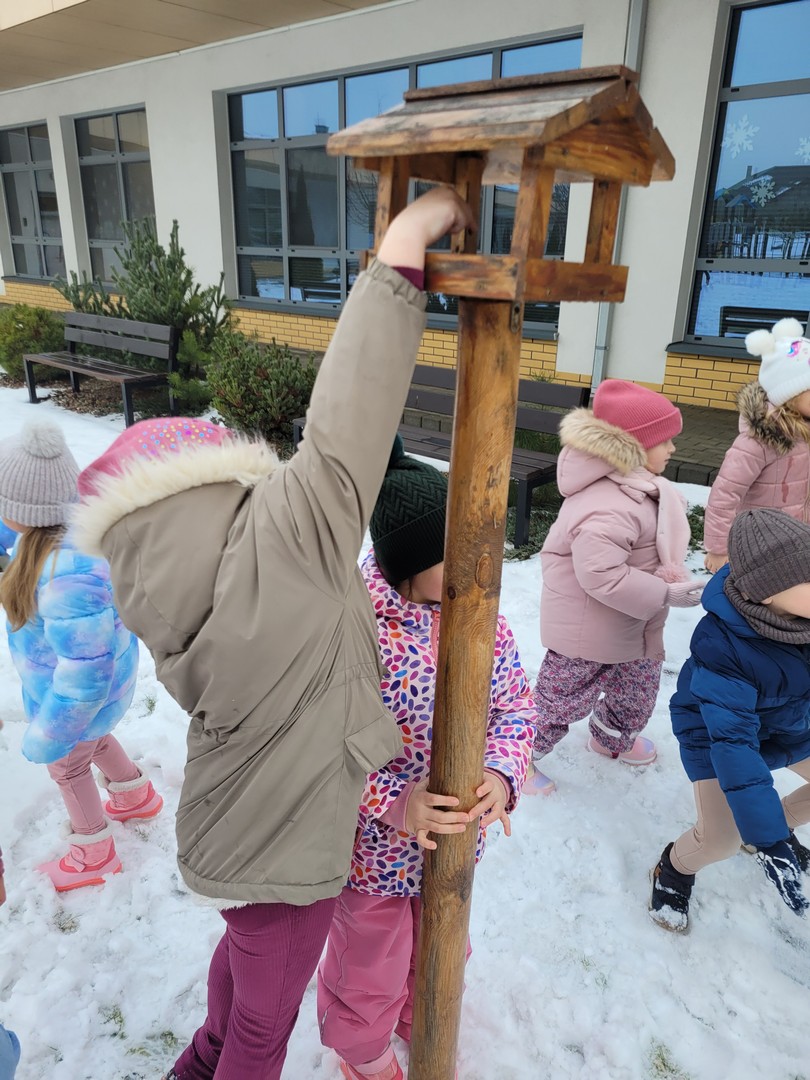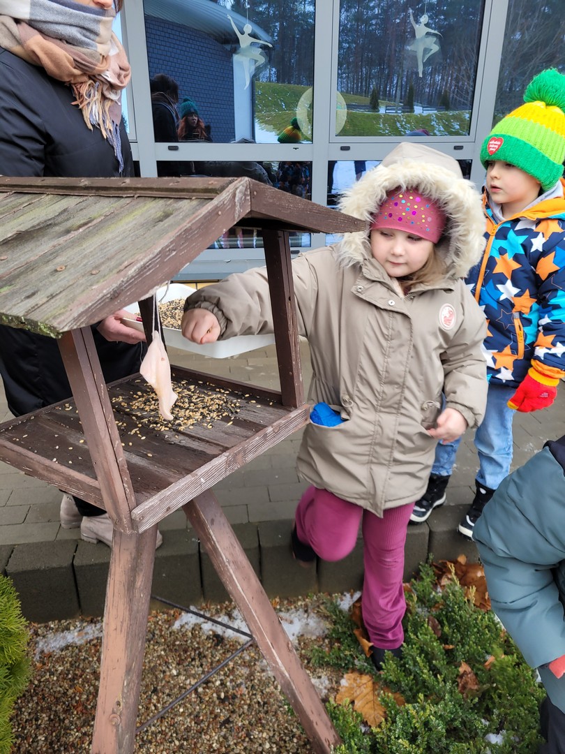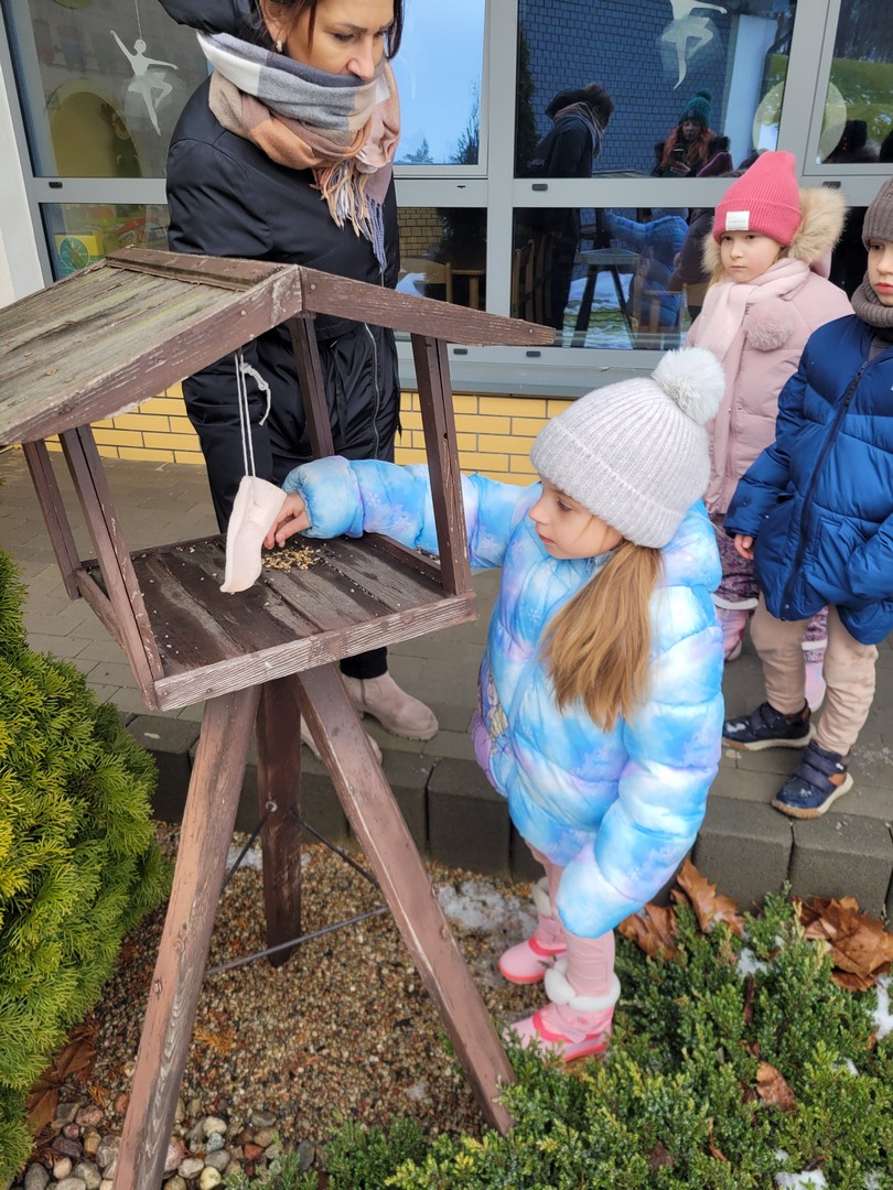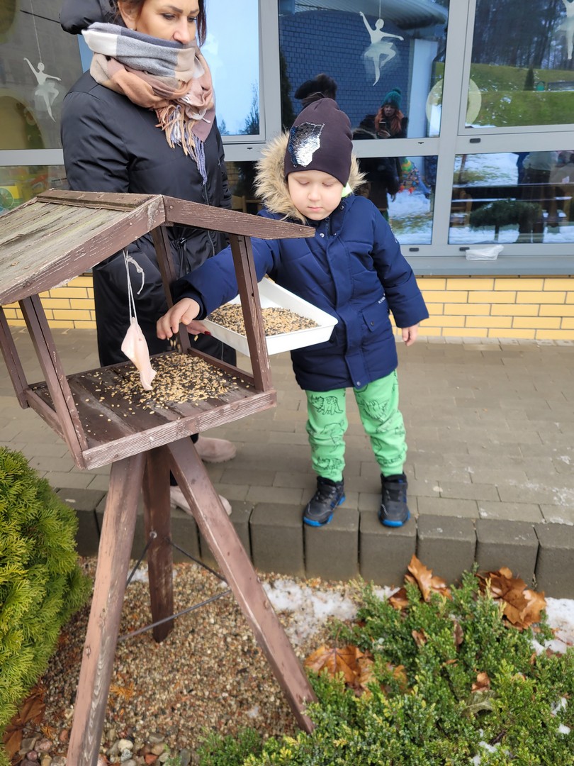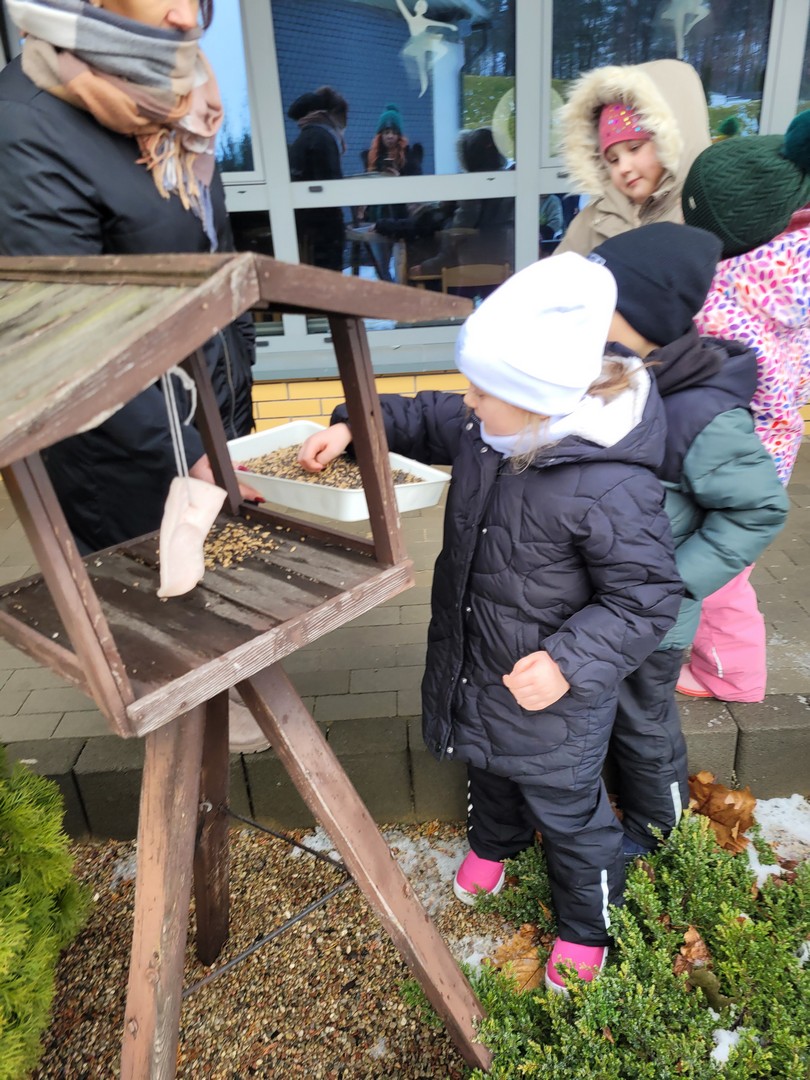 Zimowa wizyta na placu zabaw - dokarmiamy ptaszki